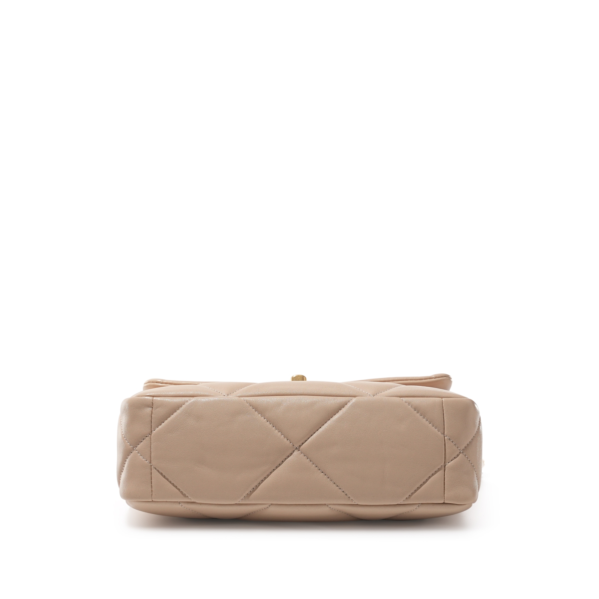 Chanel Beige Quilted Lambskin Chanel 19 Flap Brushed Gold and Ruthenium Hardware