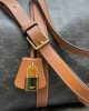 - Straps: Adjustable and Removable Leather Shoulder Strap with Shoulder Pad. 17 inches (43 cm) Drop; Leather Handles. 6 inches (16 cm) Drop