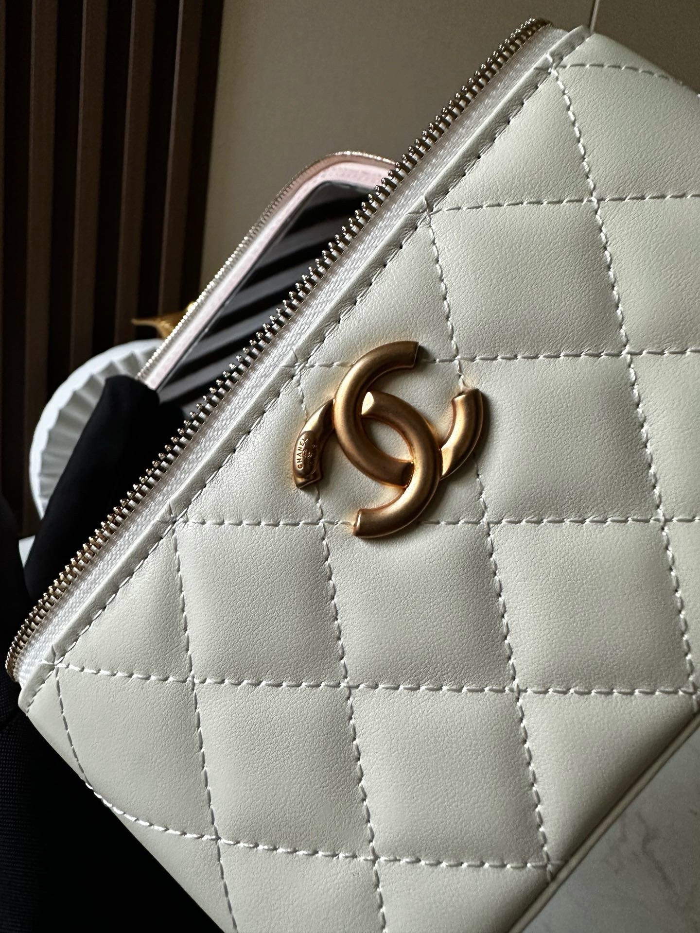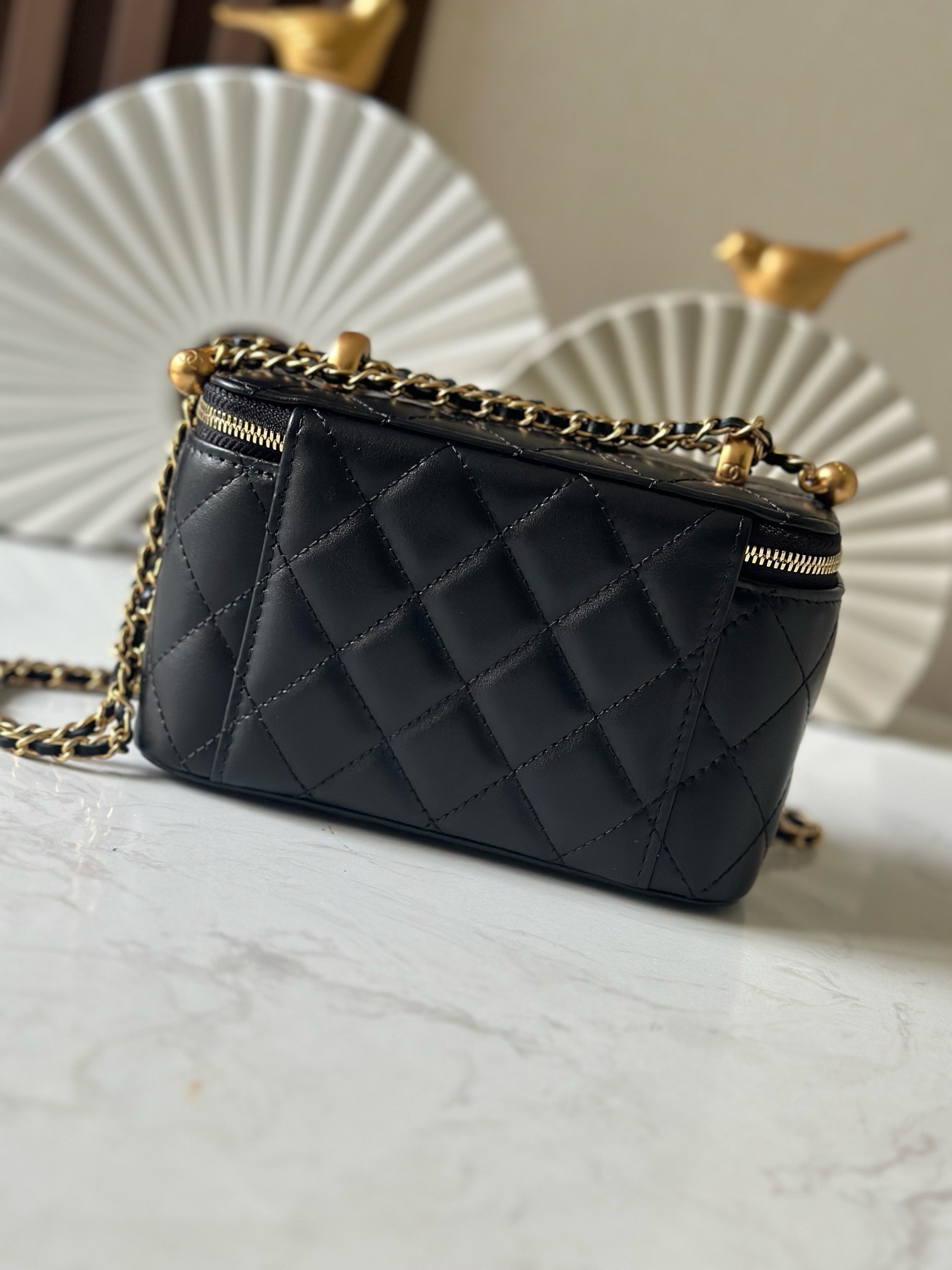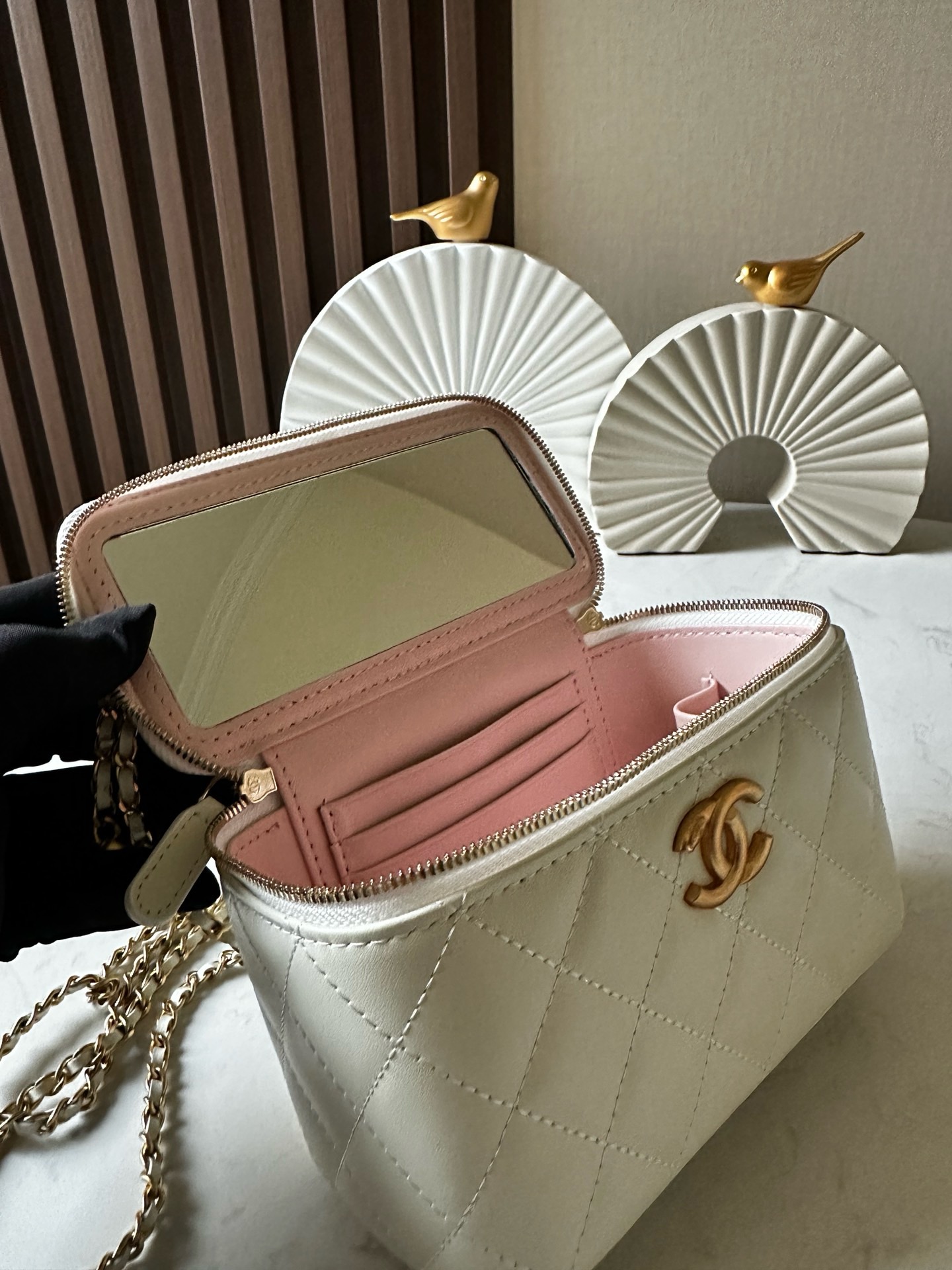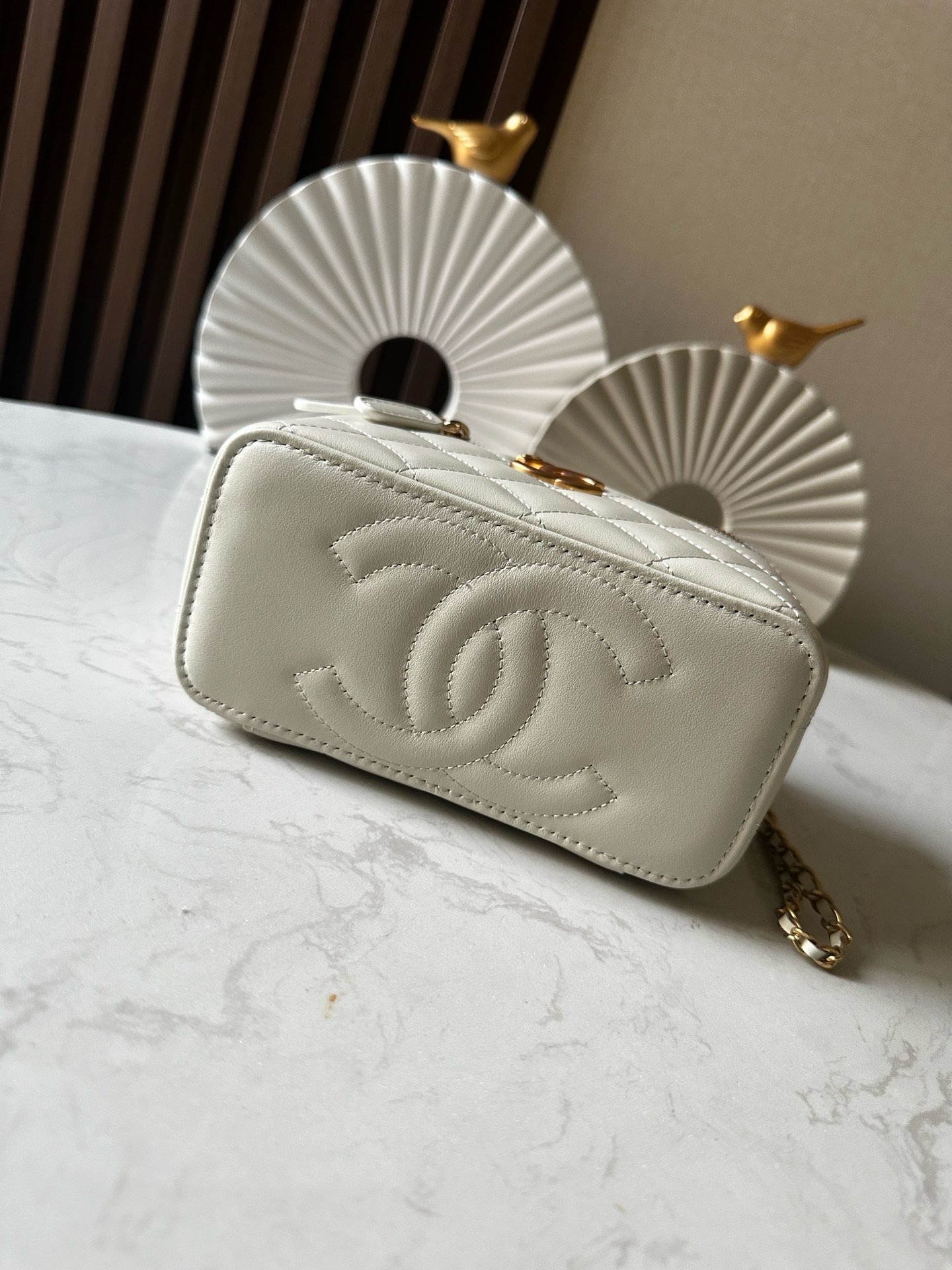 CHANEL 24C Double Golden Ball Box Chanel's new double gold balls this season is really good I fell in love with this bag at first sight, classic black gold, two gold beads, and the chain can be adjusted in length. Sa, if you have goods, you can quickly make this bag. I prefer to carry a crossbody in your hand and one shoulder, which can also have capacity and adjustability. Model number: 66039 White Size: 17cm