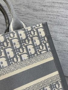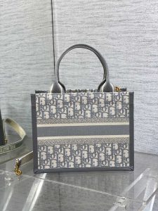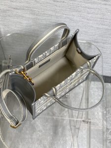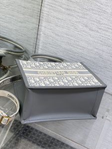 Maria Grazia Chiuri’s hallmark Dior Book Tote offers an original take on elegance. The refined style showcases the iconic gray Dior Oblique embroidery and tonal calfskin. Designed to keep all the daily essentials organized, the interior is equipped with a zip pocket and slip pockets. Featuring an adjustable and removable shoulder strap, the practical small tote exemplifies Dior’s savoir-faire and can be carried by hand or worn over the shoulder.