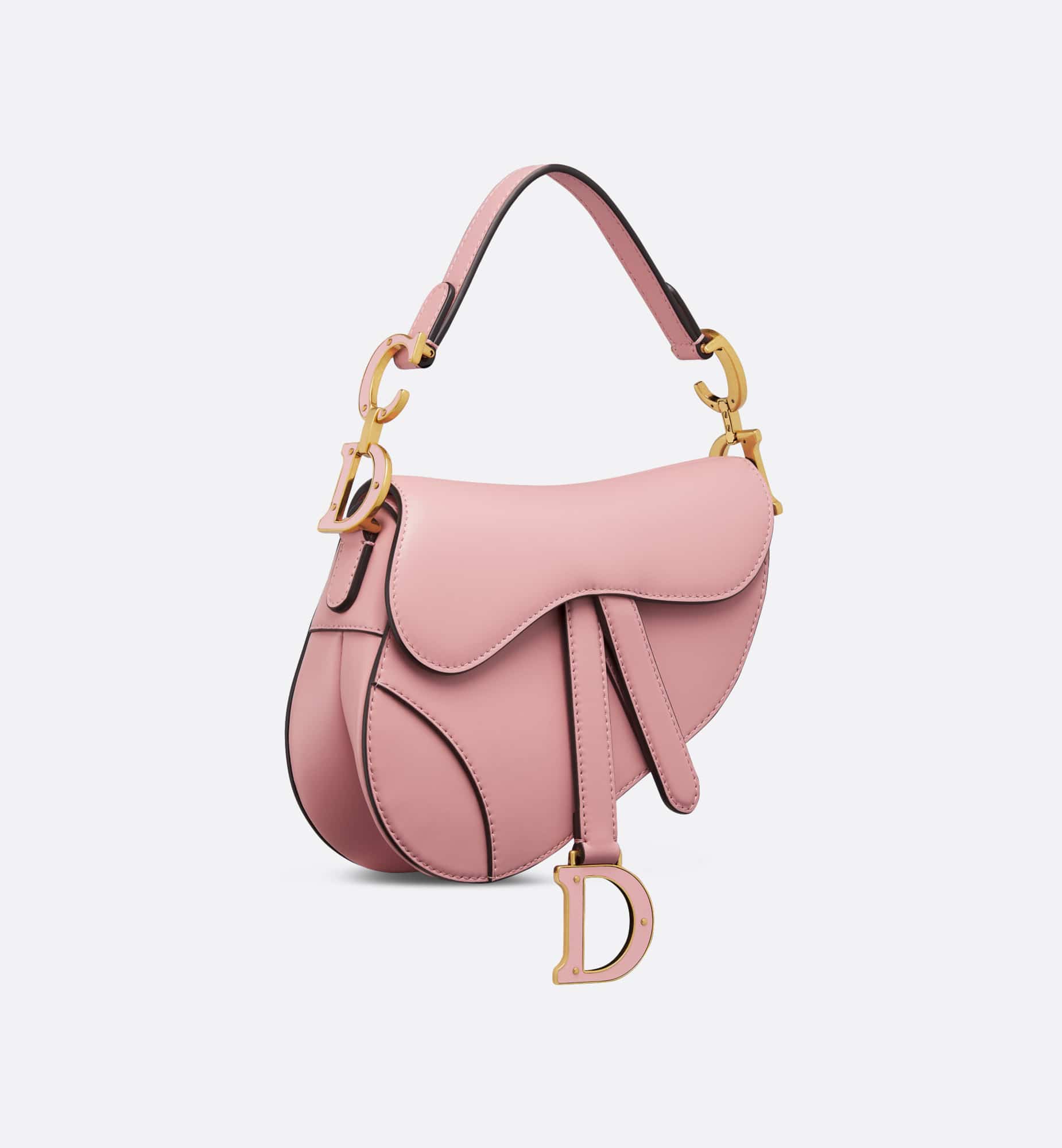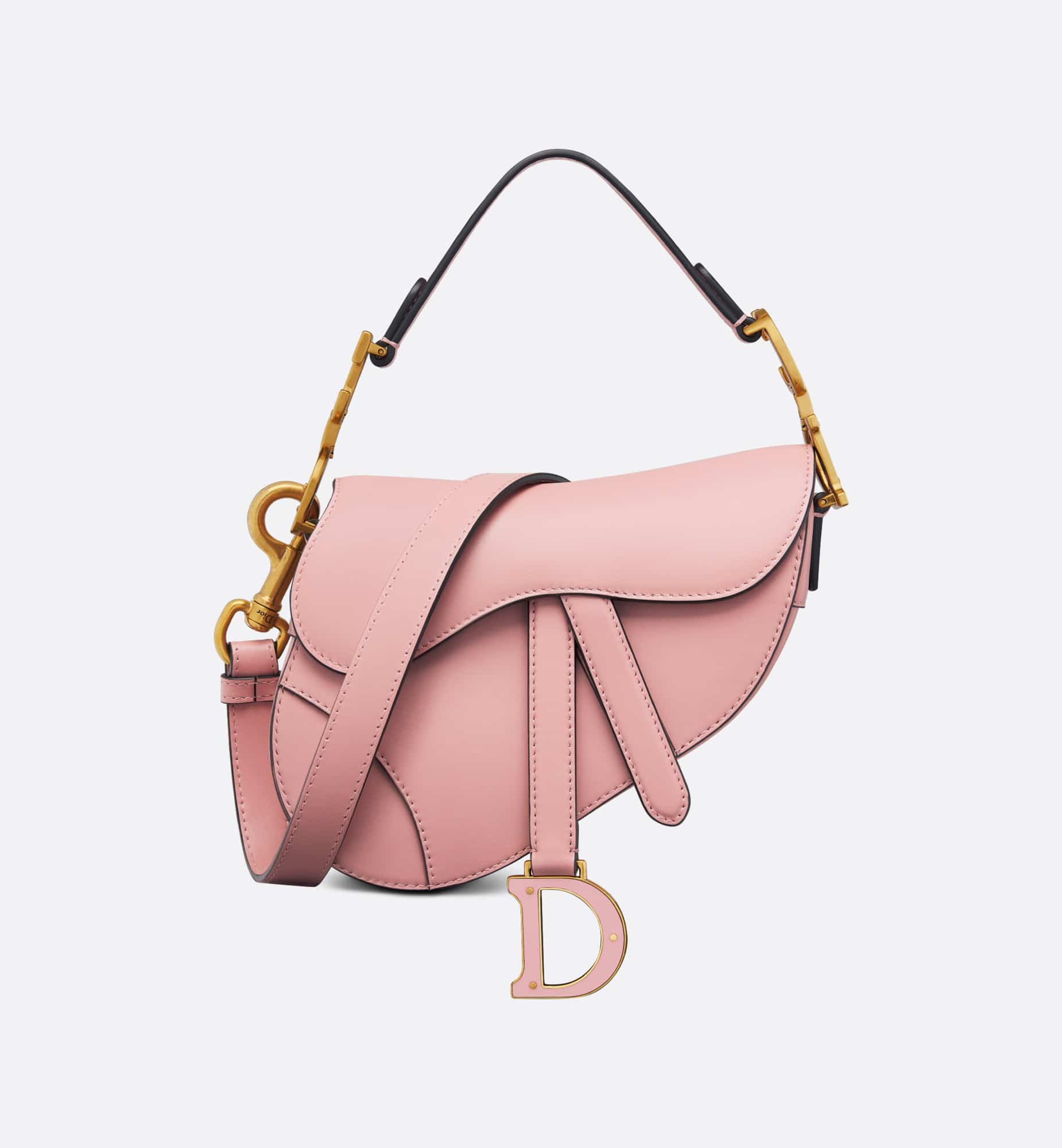 Maria Grazia Chiuri brings a fresh update to the iconic Saddle bag. Crafted in antique pink smooth calfskin with an ultra-soft touch, the legendary design features a Saddle flap with a D stirrup strap and magnetic pull, as well as an antique gold-finish metal CD signature on either side of the strap. Equipped with a thin, adjustable and removable strap, the miniature Saddle bag may be carried by hand, worn over the shoulder or crossbody.