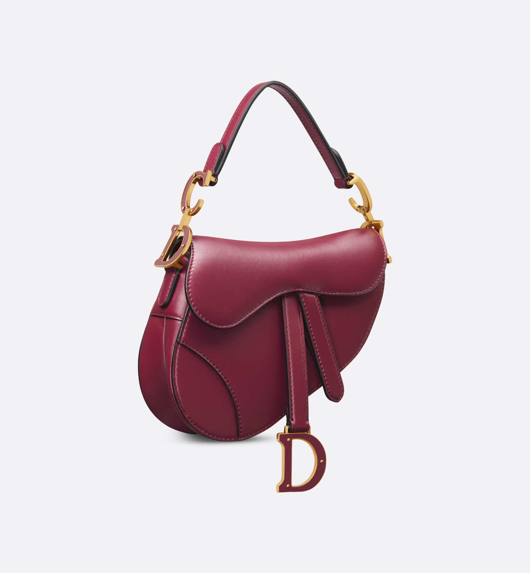 Maria Grazia Chiuri brings a fresh update to the iconic Saddle bag. Crafted in deep fuchsia smooth calfskin with an ultra-soft touch, the legendary design features a Saddle flap with a D stirrup strap and magnetic pull, as well as an antique gold-finish metal CD signature on either side of the strap. Equipped with a thin, adjustable and removable strap, the miniature Saddle bag may be carried by hand, worn over the shoulder or crossbody.