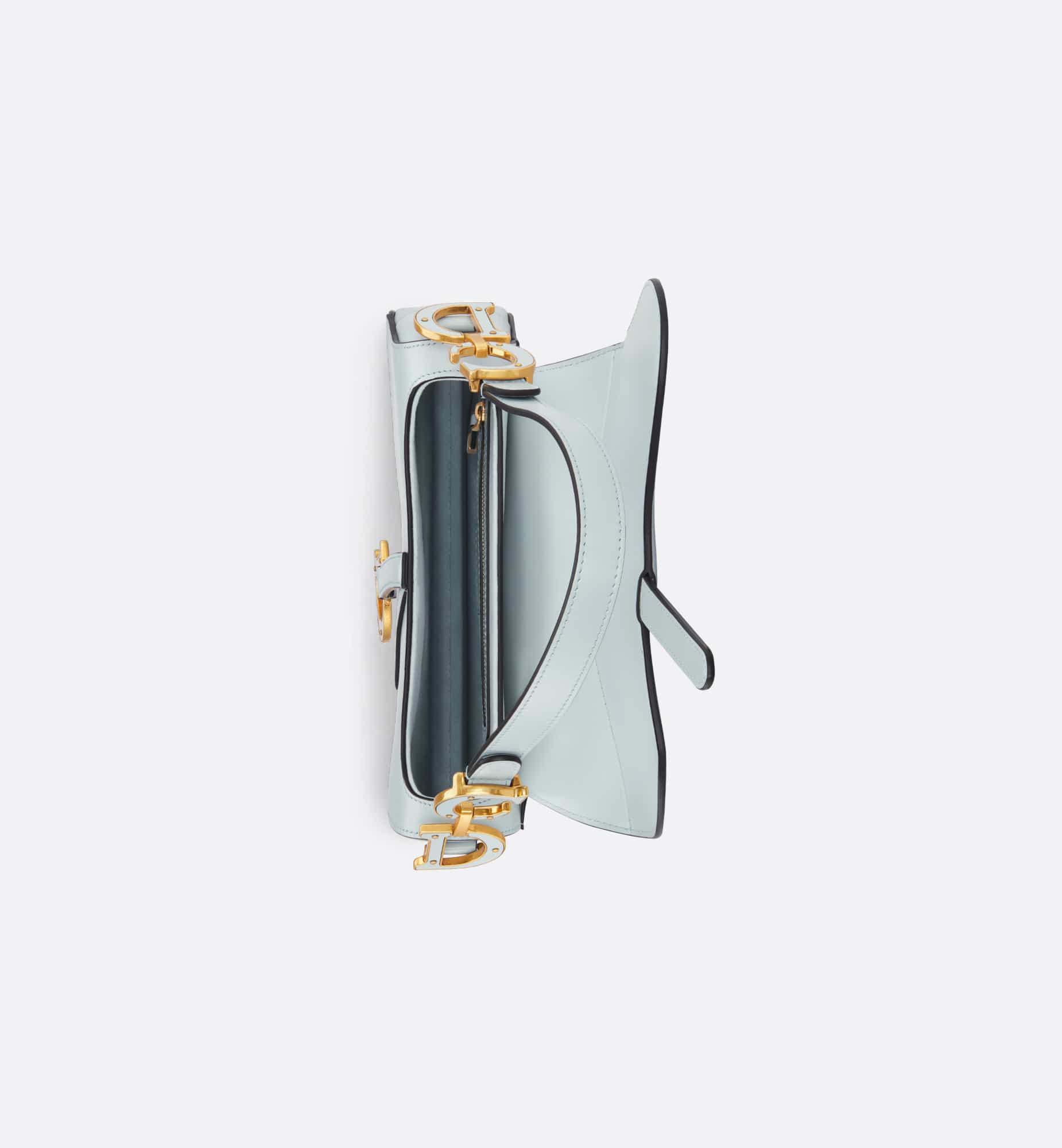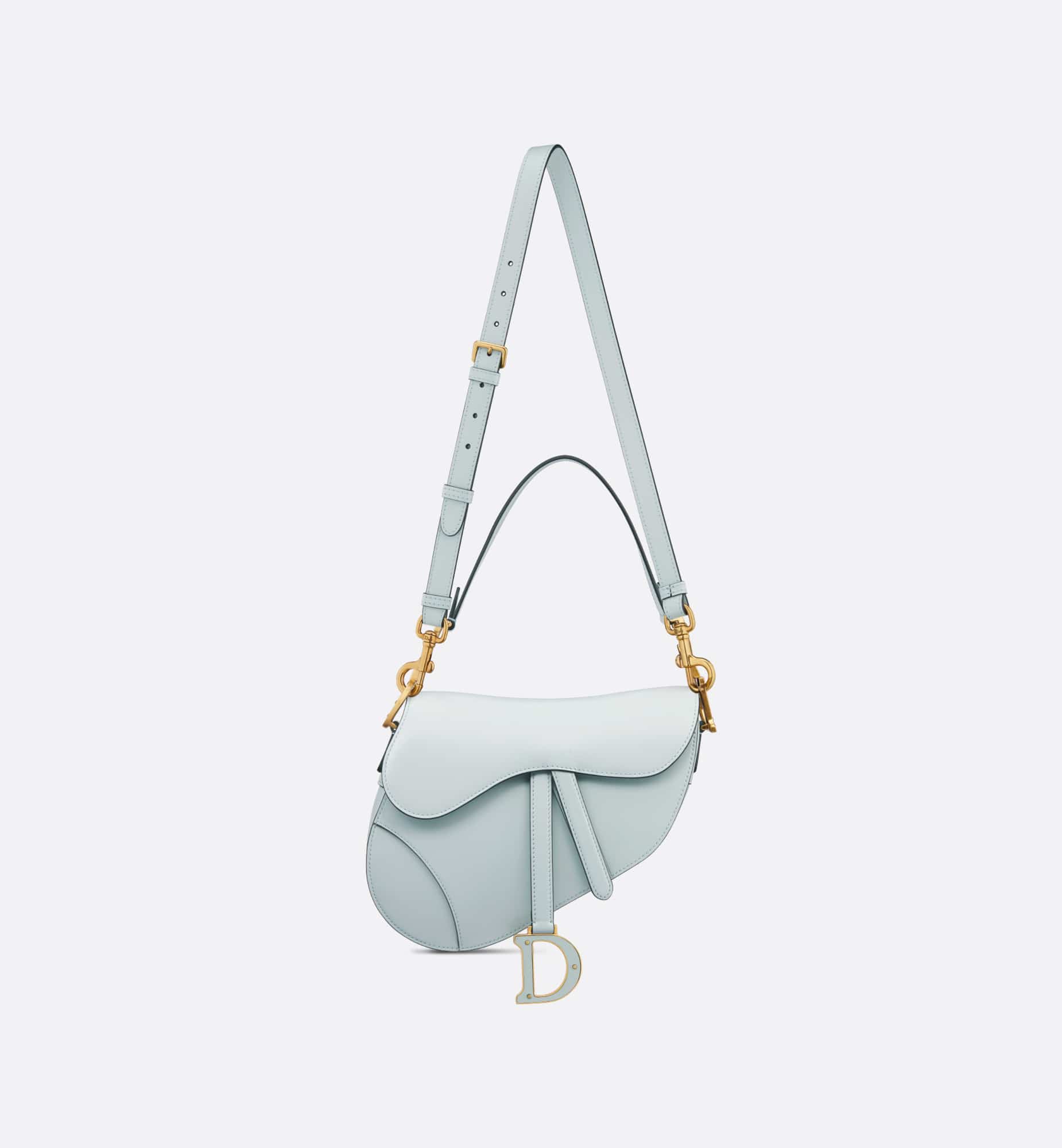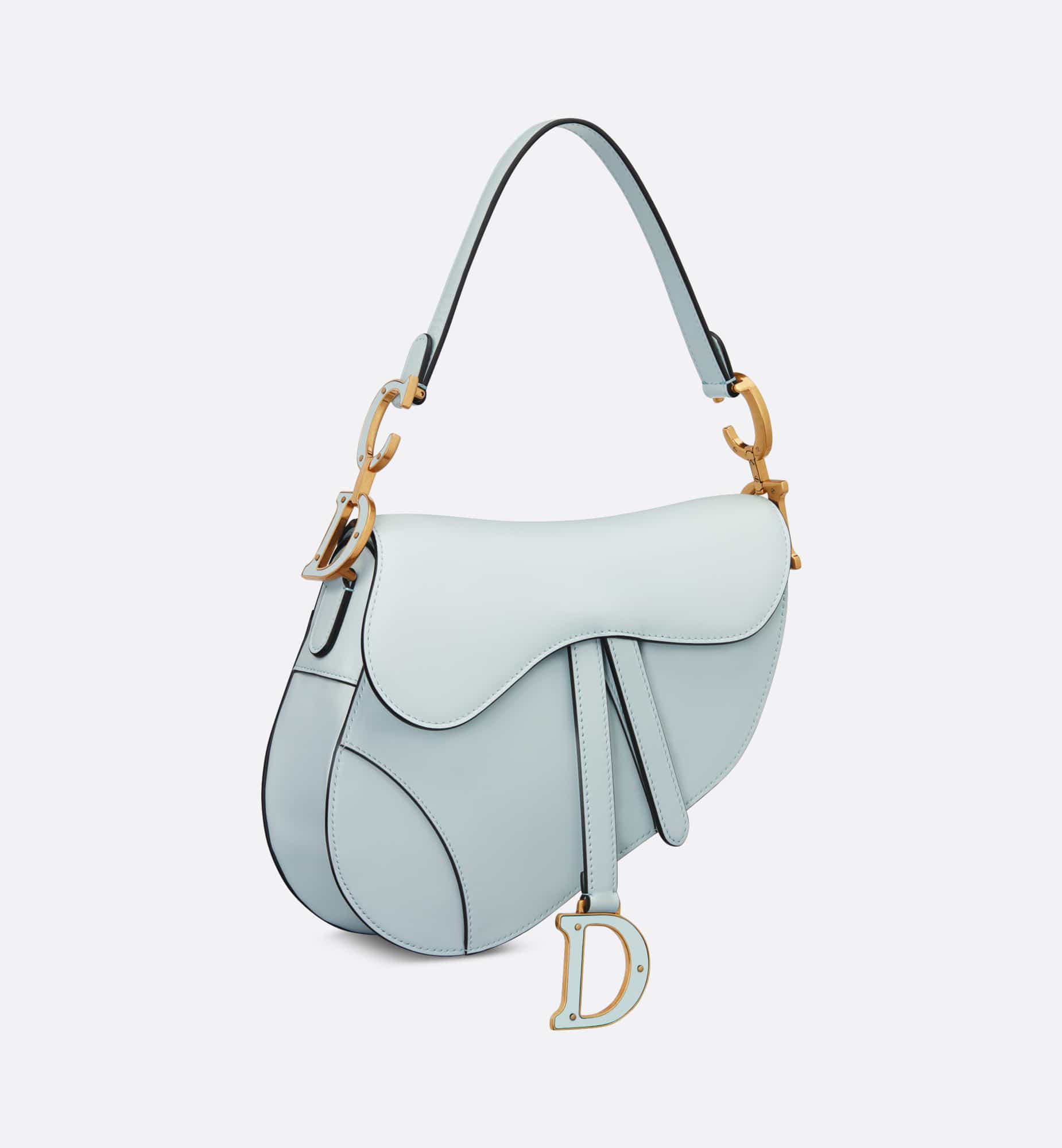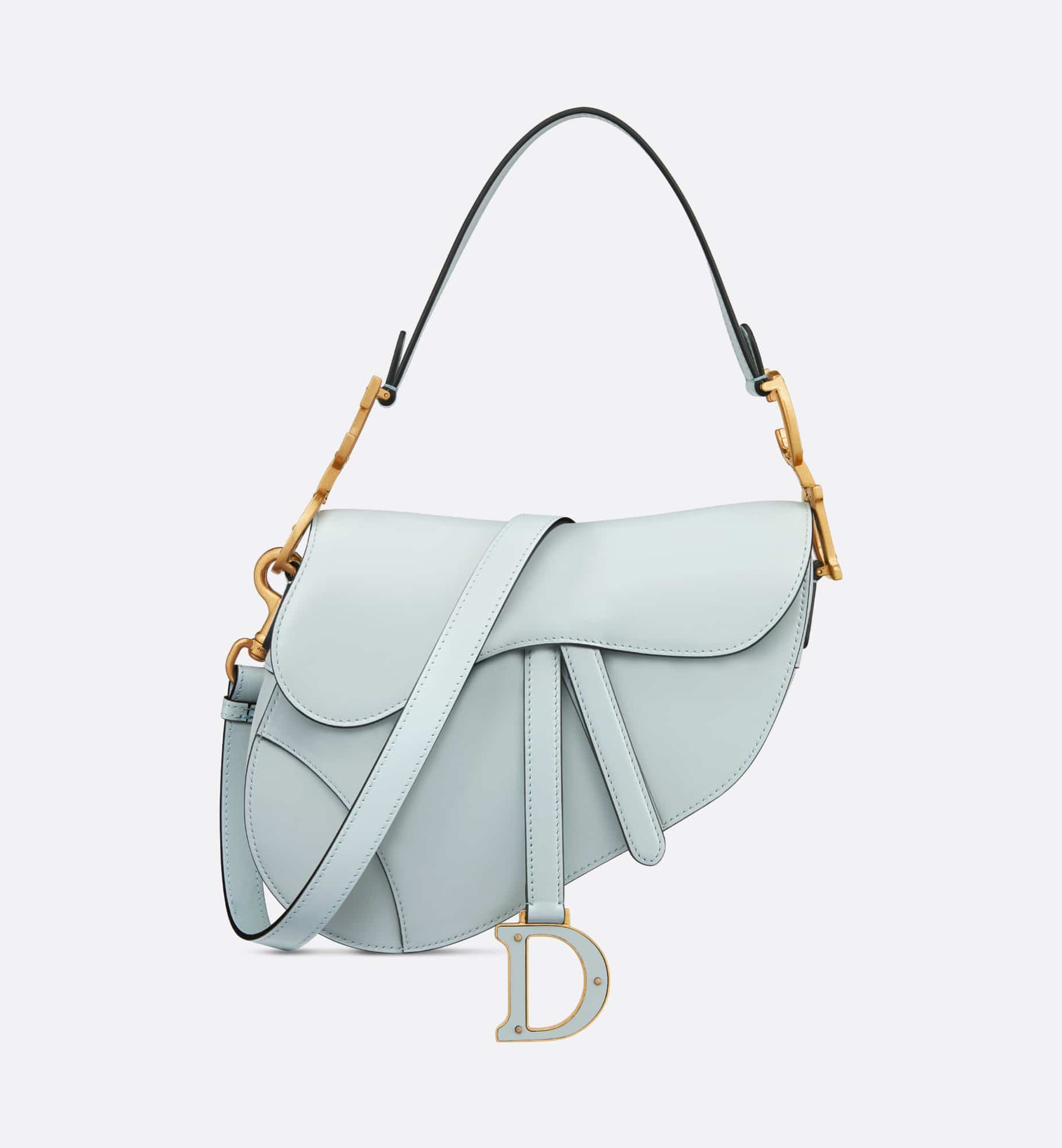 Maria Grazia Chiuri brings a fresh update to the iconic Saddle bag. Crafted in placid blue ultra-smooth calfskin, the legendary design features a Saddle flap with a D stirrup strap and magnetic pull as well as an antique gold-finish metal and tonal leather CD signature on either side of the handle. Equipped with a thin, adjustable and removable strap, the Saddle bag may be carried by hand, worn over the shoulder or crossbody.