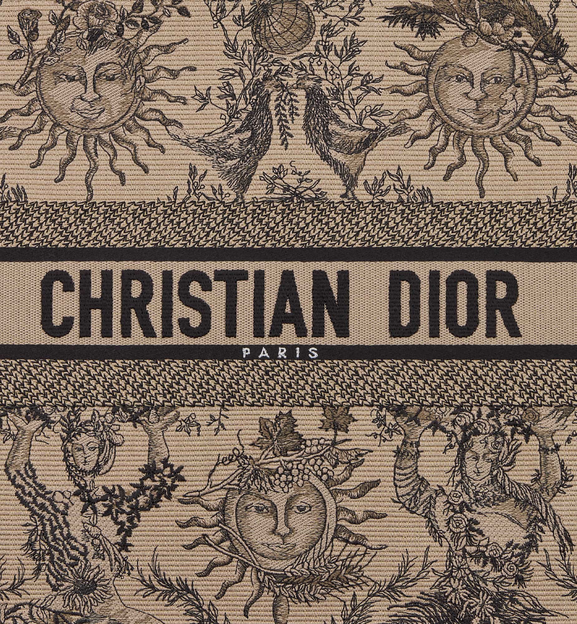 Introduced by Maria Grazia Chiuri, Creative Director of Christian Dior, the Dior Book Tote has become a staple of the Dior aesthetic. Designed to hold all the daily essentials, the style is fully embroidered with the season’s signature Toile de Jouy Soleil motif in beige and black, offering a new take on the iconic House motif with suns and crescent moons layered into a floral design representing the four seasons. Exemplifying House savoir-faire, the large tote is adorned with the Christian Dior Paris signature on the front, and may be carried by hand or worn over the shoulder.