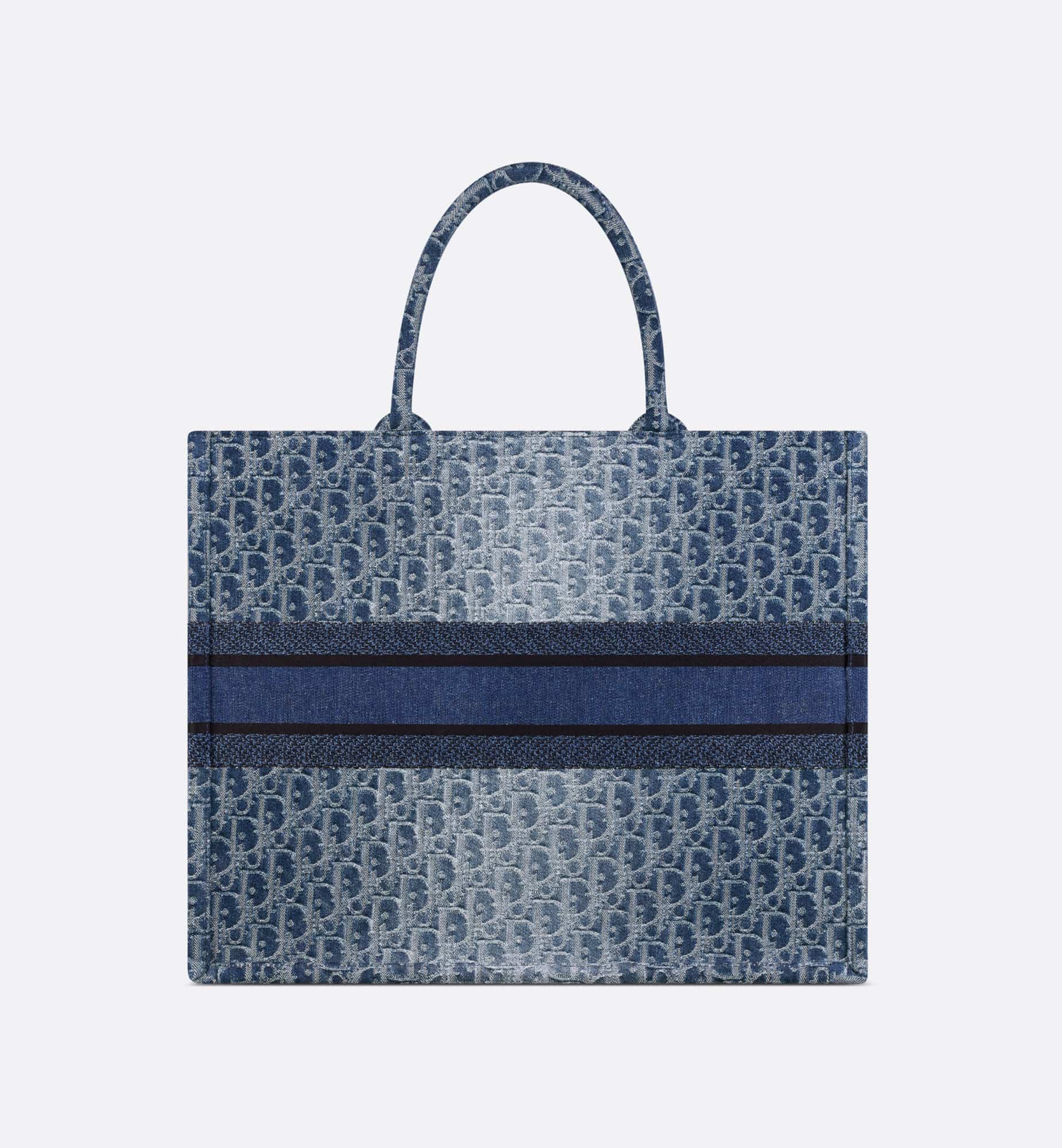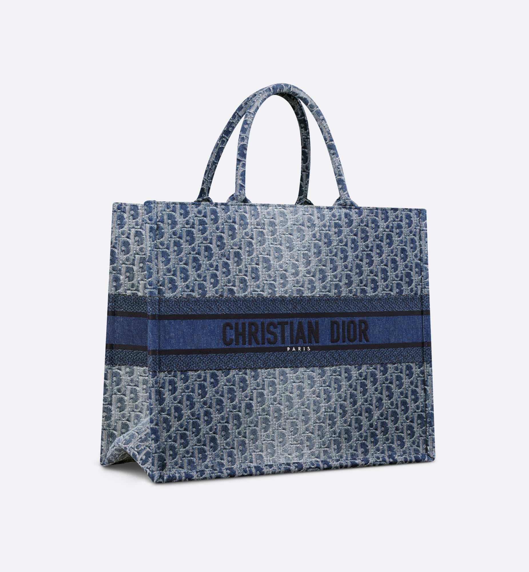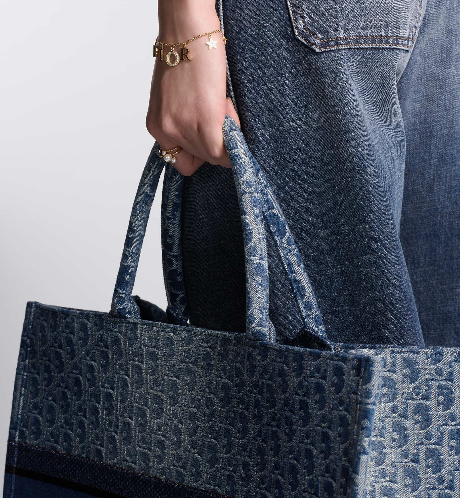 Introduced by Maria Grazia Chiuri, Creative Director of Christian Dior, the Dior Book Tote has become a staple of the Dior aesthetic. Designed to hold all the daily essentials, it is constructed in blue Denim Dior Oblique jacquard, offering a new take on the iconic House motif with the modern appeal of an irregular stonewashed effect. Adorned with a contrasting Christian Dior Paris signature on the front, the large tote exemplifies the House’s savoir-faire and may be carried by hand.