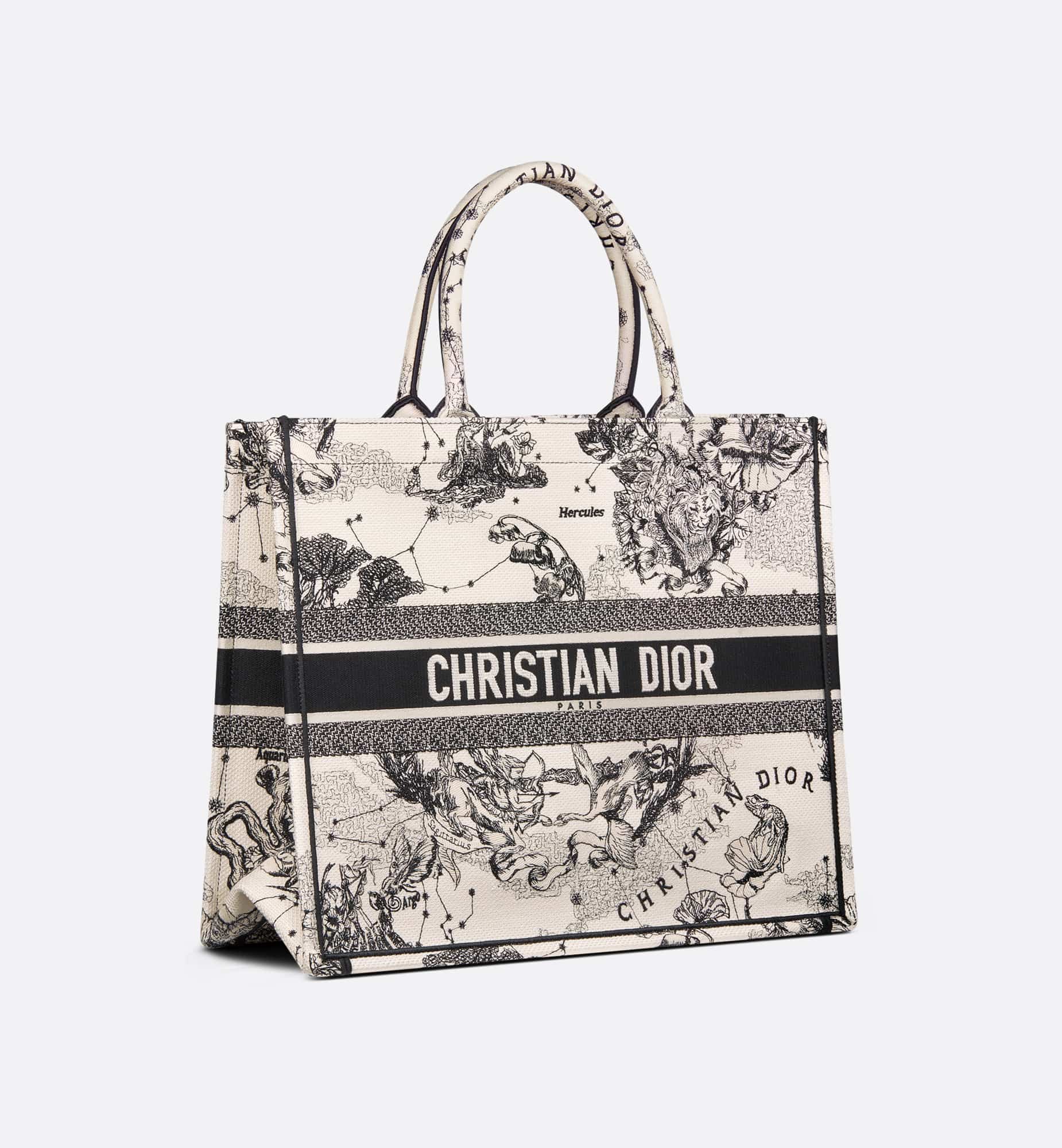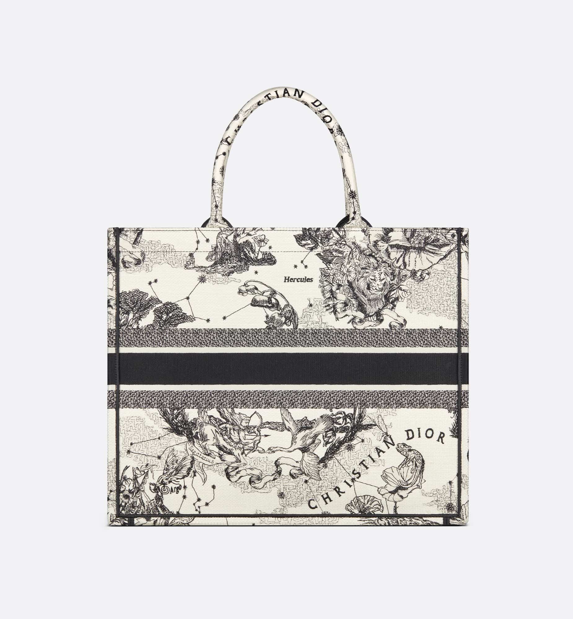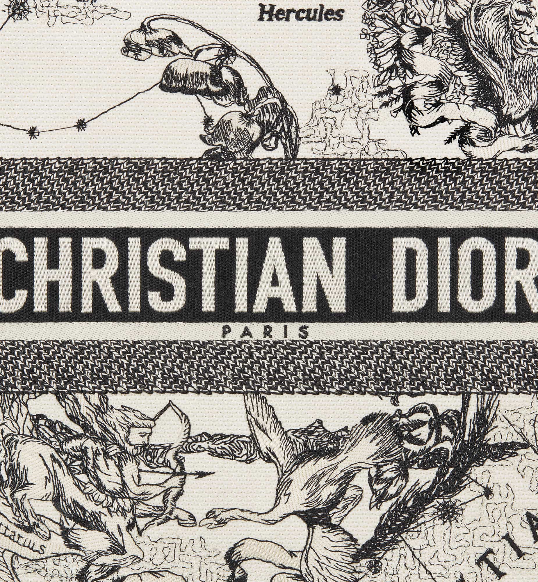 Introduced by Maria Grazia Chiuri, Creative Director of Christian Dior, the Dior Book Tote has become a staple of the Dior aesthetic. Designed to hold all the daily essentials, the latte and black style is fully embroidered with the Toile de Jouy Zodiac motif, a variation of the iconic pattern that incorporates Mr. Dior’s passion for astrology. Adorned with the Christian Dior Paris signature on the front, the large tote exemplifies the House’s signature savoir-faire and may be carried by hand or worn over the shoulder.