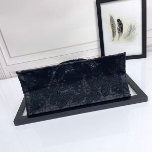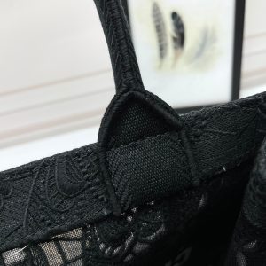 Introduced by Maria Grazia Chiuri, Creative Director of Christian Dior, the Dior Book Tote has become a staple of the Dior aesthetic. Designed to hold all the daily essentials, the style is fully embroidered with black Macramé offering a new take on the iconic House motif with the season’s signature Toile de Jouy Soleil, layering suns and crescent moons into a floral design representing the four seasons. Exemplifying House savoir-faire, the medium tote is adorned with the Christian Dior Paris signature on the front, and may be carried by hand or worn over the shoulder.