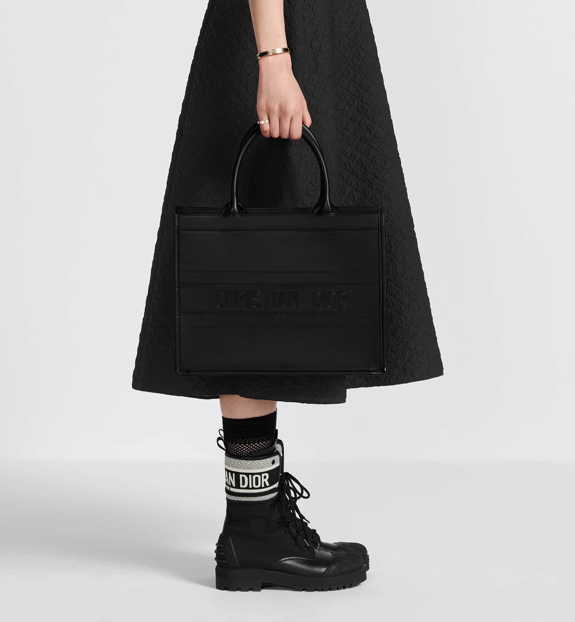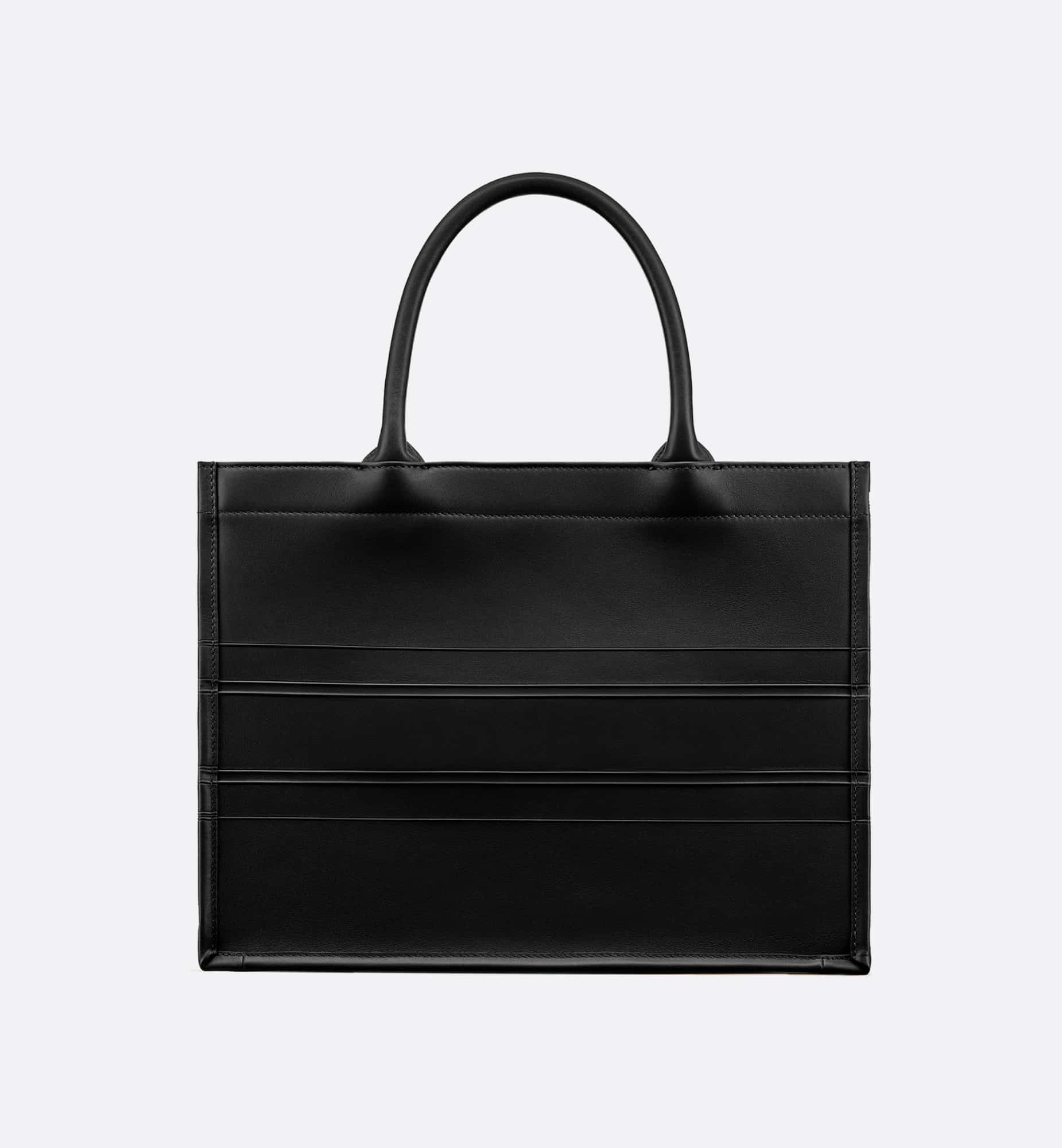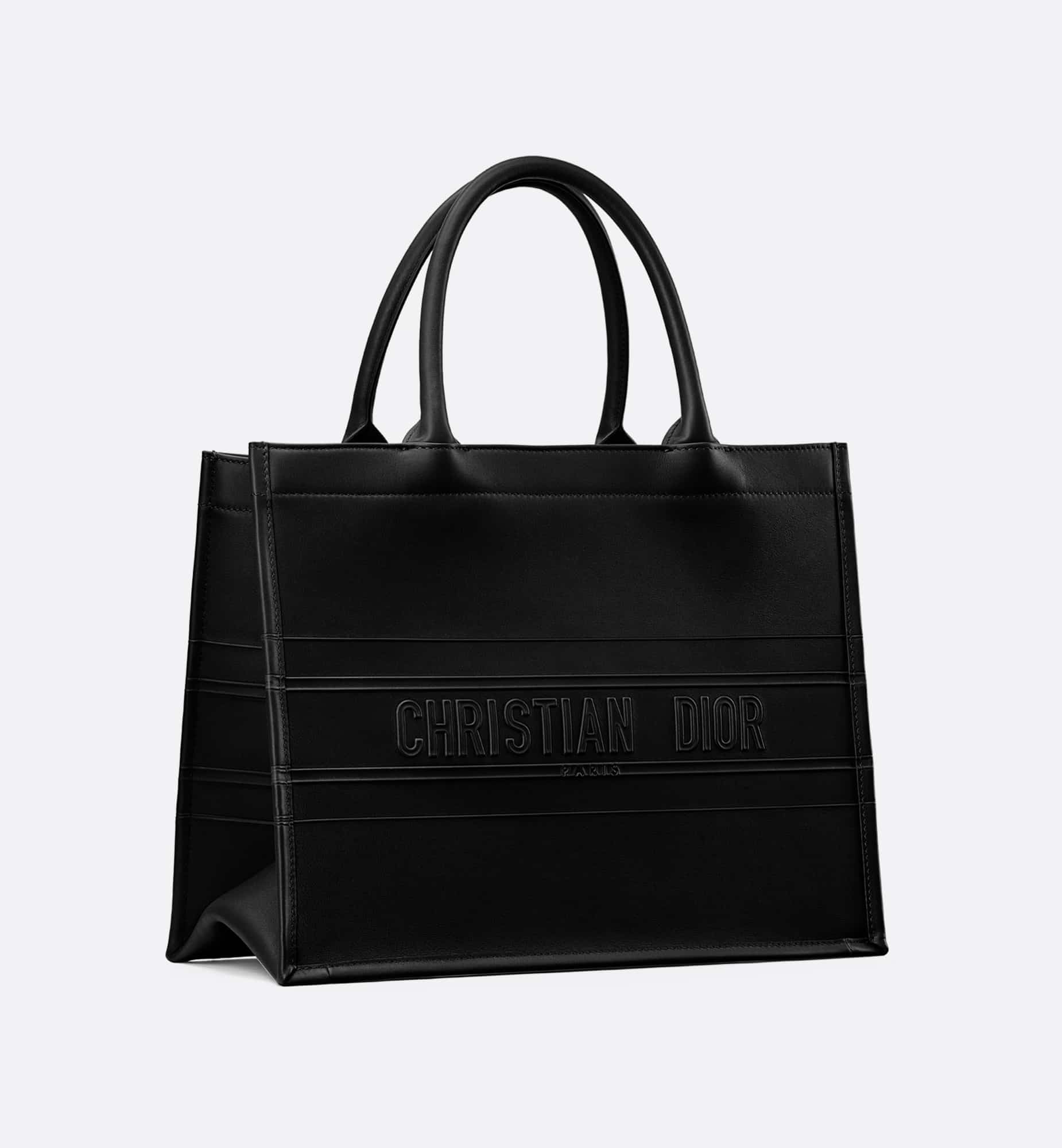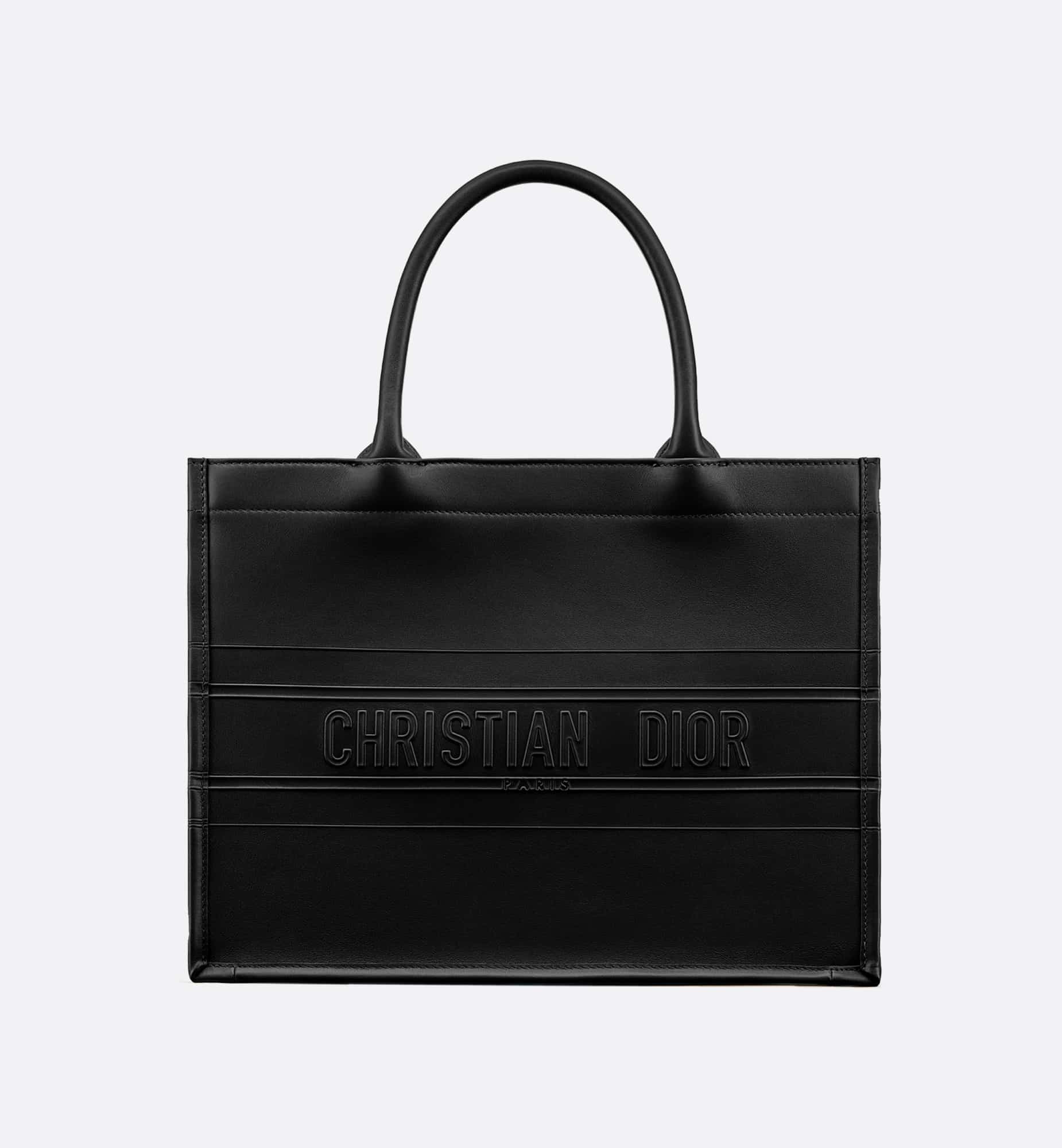 Introduced by Maria Grazia Chiuri, Creative Director of Christian Dior, the Dior Book Tote has become a staple of the Dior aesthetic. Designed to hold all the daily essentials, the black calfskin style is further enhanced by the Christian Dior Paris signature on the front. The medium tote exemplifies the House’s signature savoir-faire and may be carried by hand or worn over the shoulder.