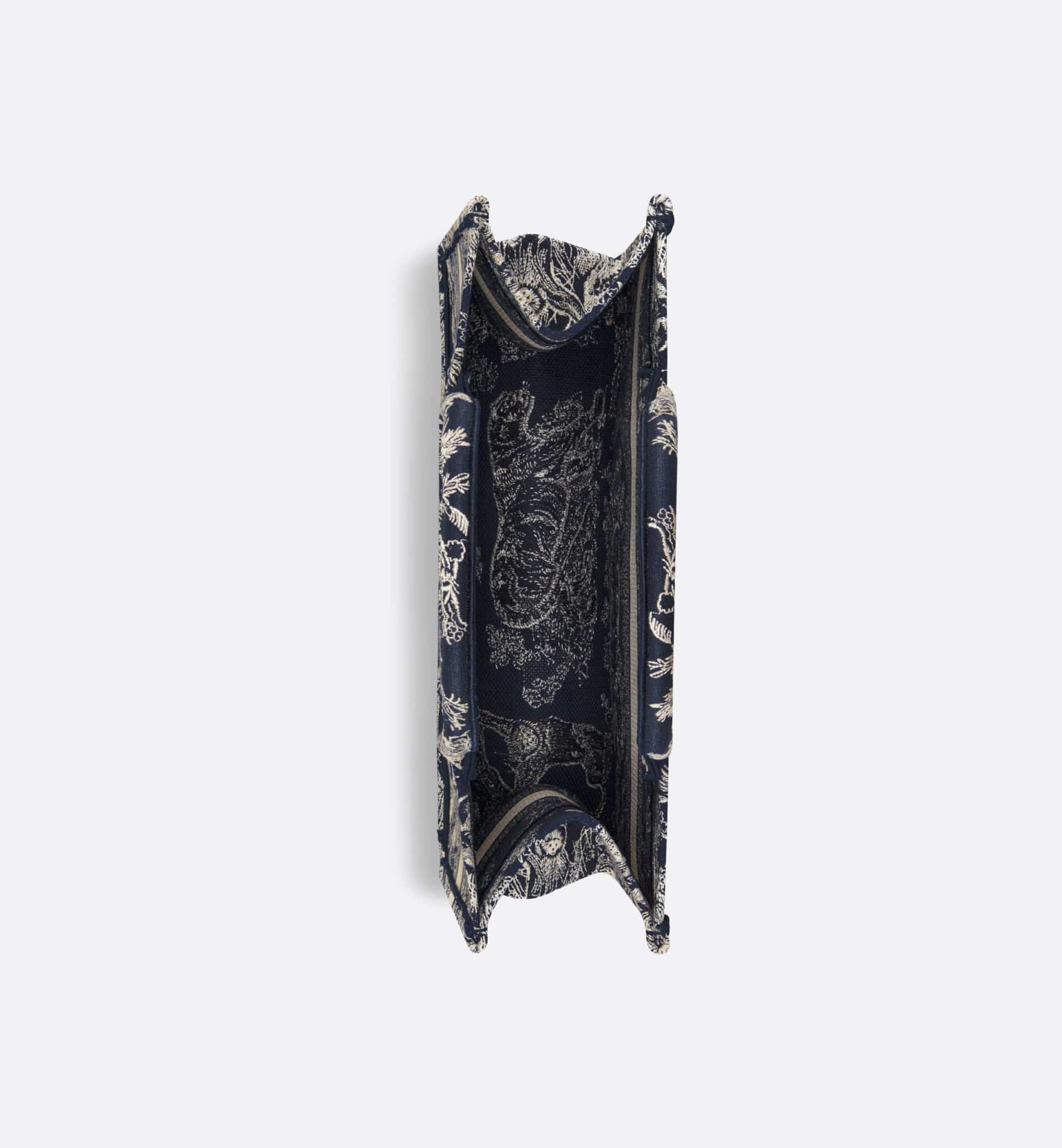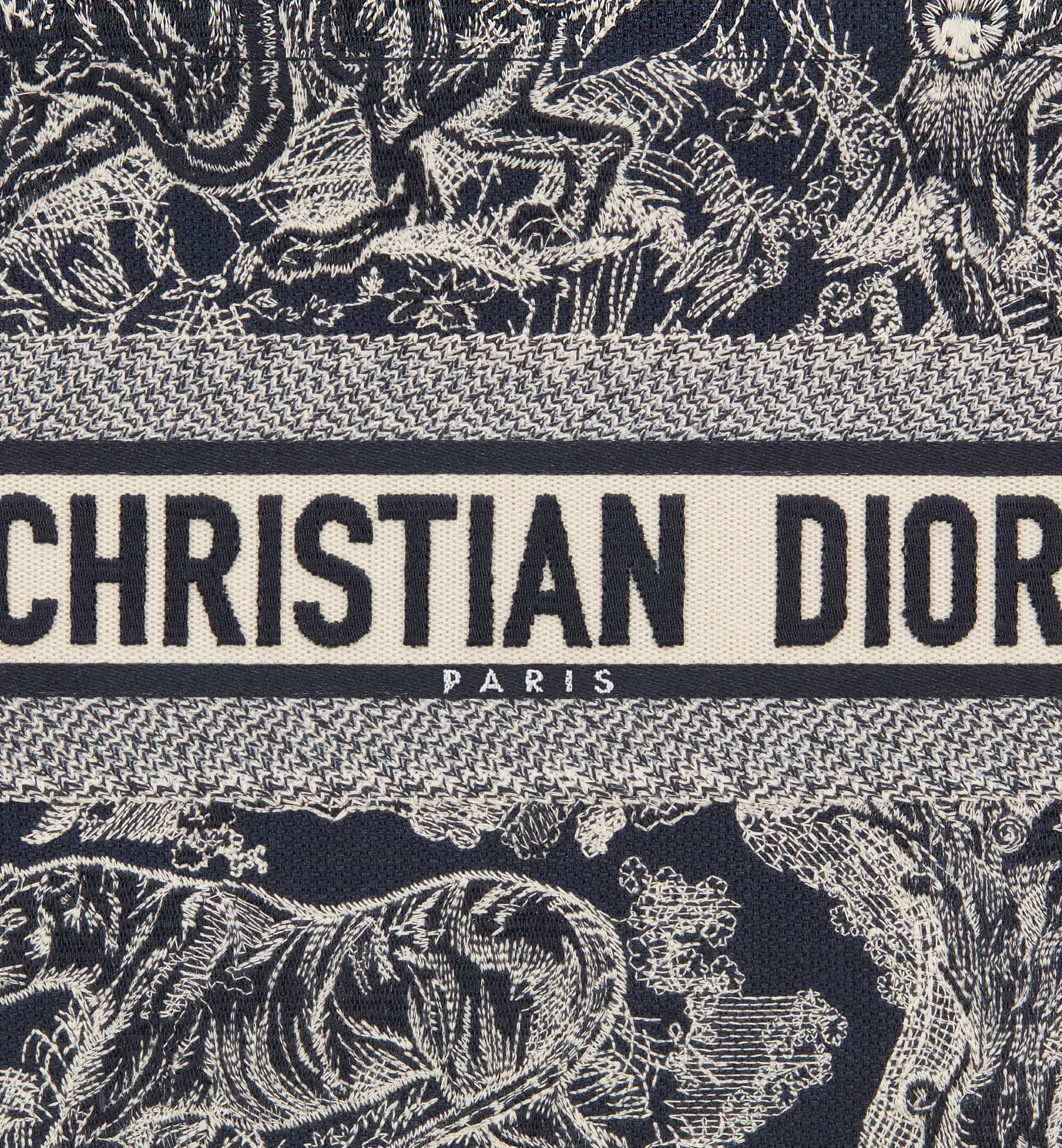 Introduced by Maria Grazia Chiuri, Creative Director of Christian Dior, the Dior Book Tote has become a staple of the Dior aesthetic. Designed to hold all the daily essentials, the style is fully embroidered with the blue and ecru Toile de Jouy Reverse motif, a variation of the House’s hallmark pattern with a play on reversed colors. Adorned with the Christian Dior Paris signature on the front, the medium tote exemplifies the House’s signature savoir-faire and may be carried by hand or worn over the shoulder.