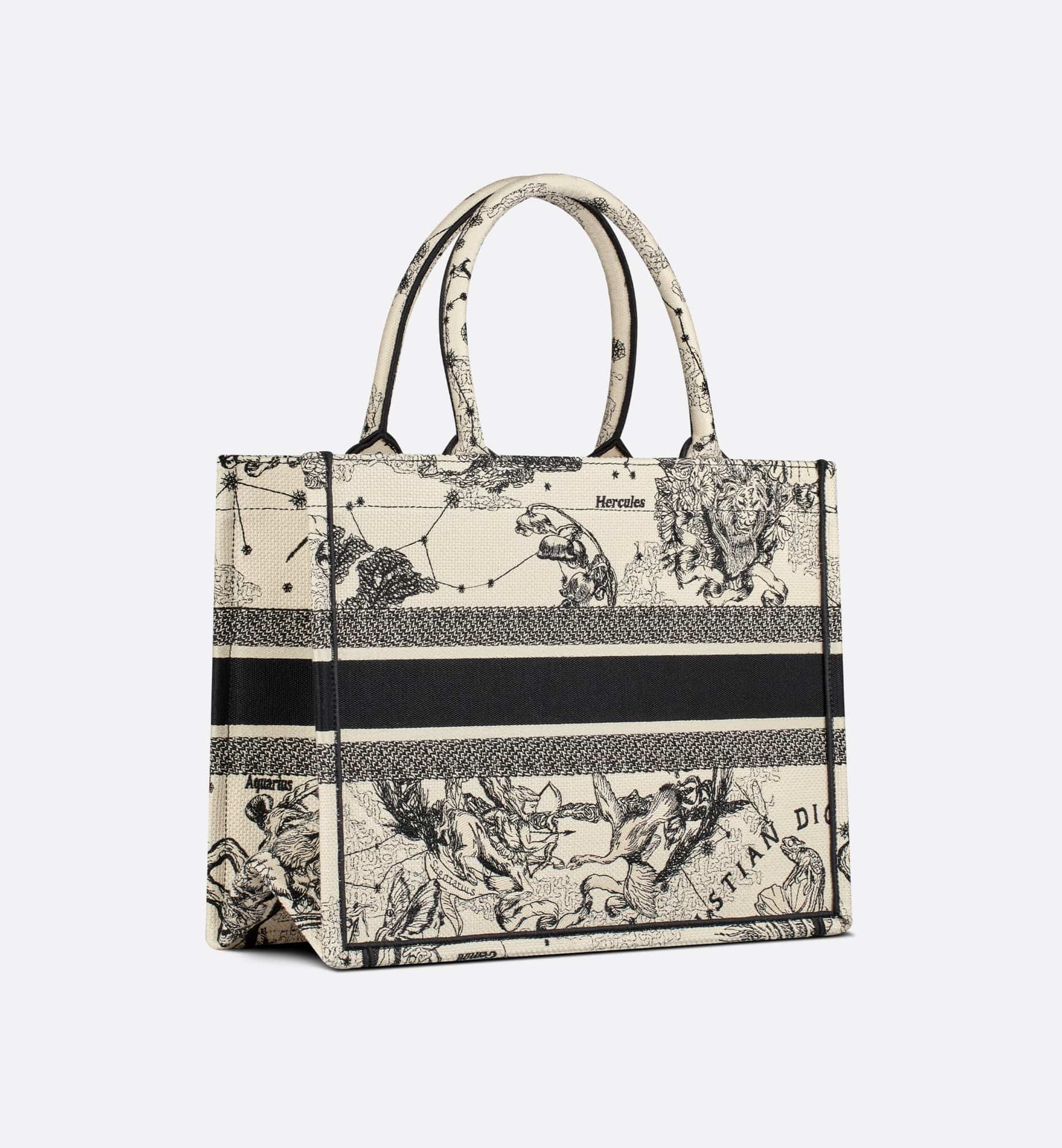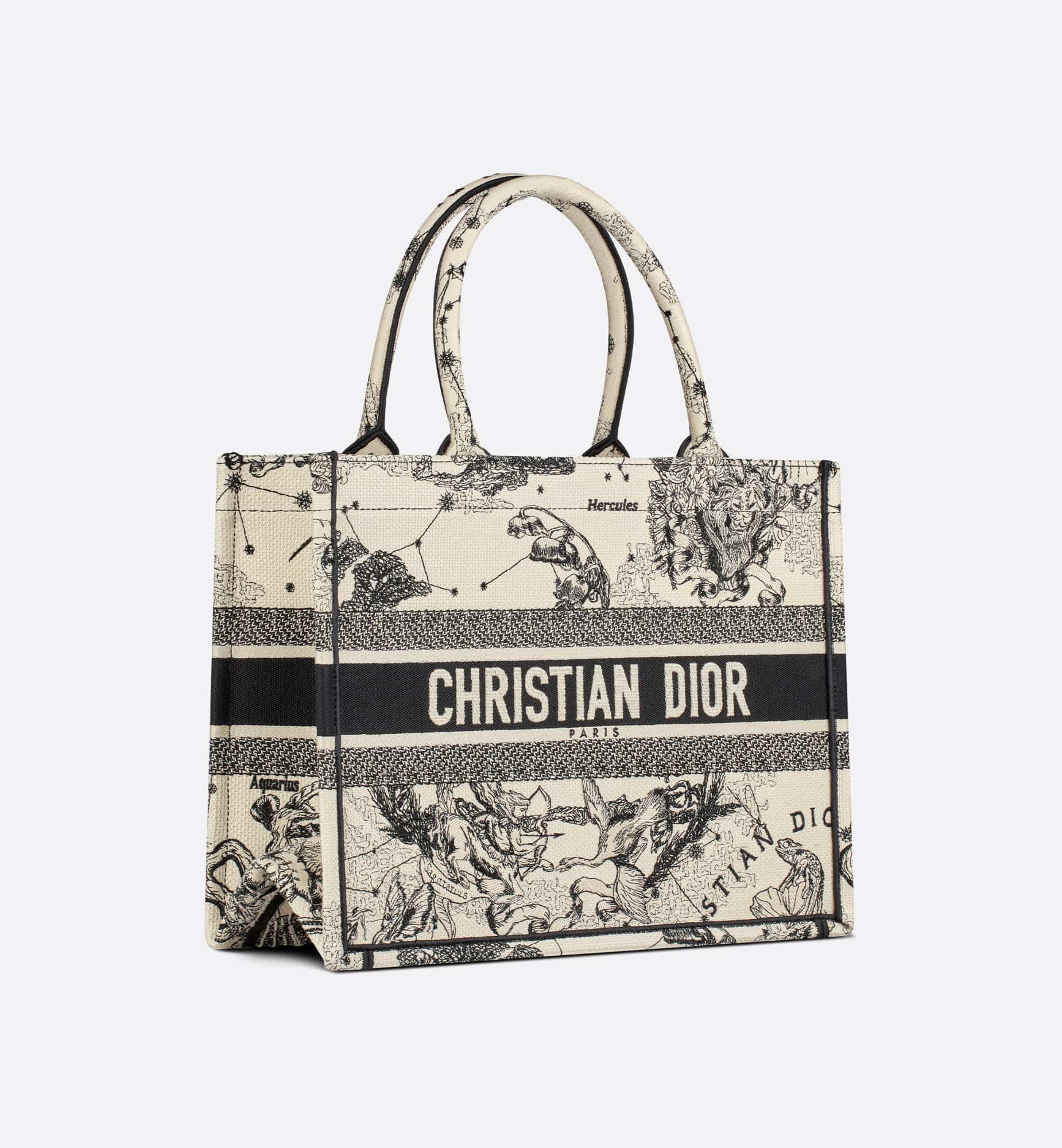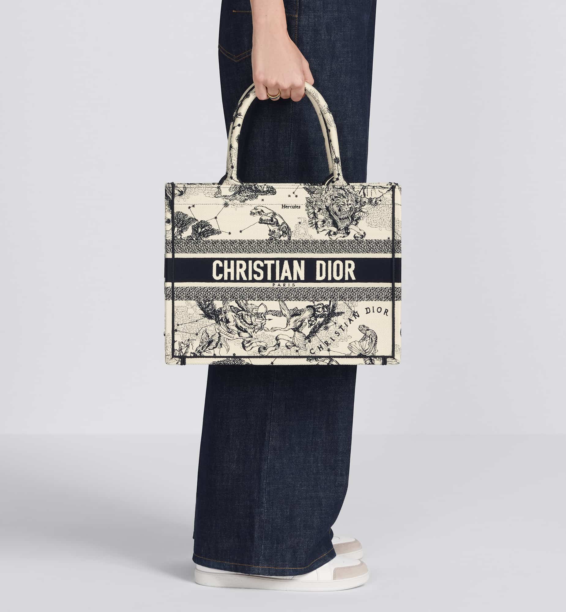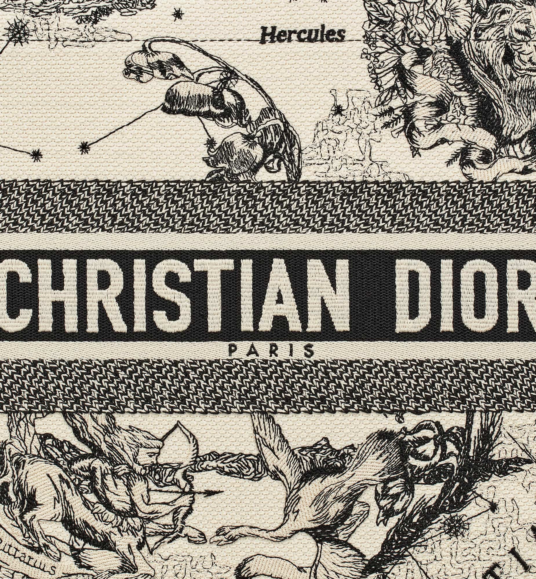 Introduced by Maria Grazia Chiuri, Creative Director of Christian Dior, the Dior Book Tote has become a staple of the Dior aesthetic. Designed to hold all the daily essentials, the style is fully embroidered with the latte and black Dior Zodiac motif created by the artist Pietro Ruffo. Adorned with the Christian Dior Paris signature on the front, the medium tote exemplifies the House’s signature savoir-faire and may be carried by hand or worn over the shoulder.