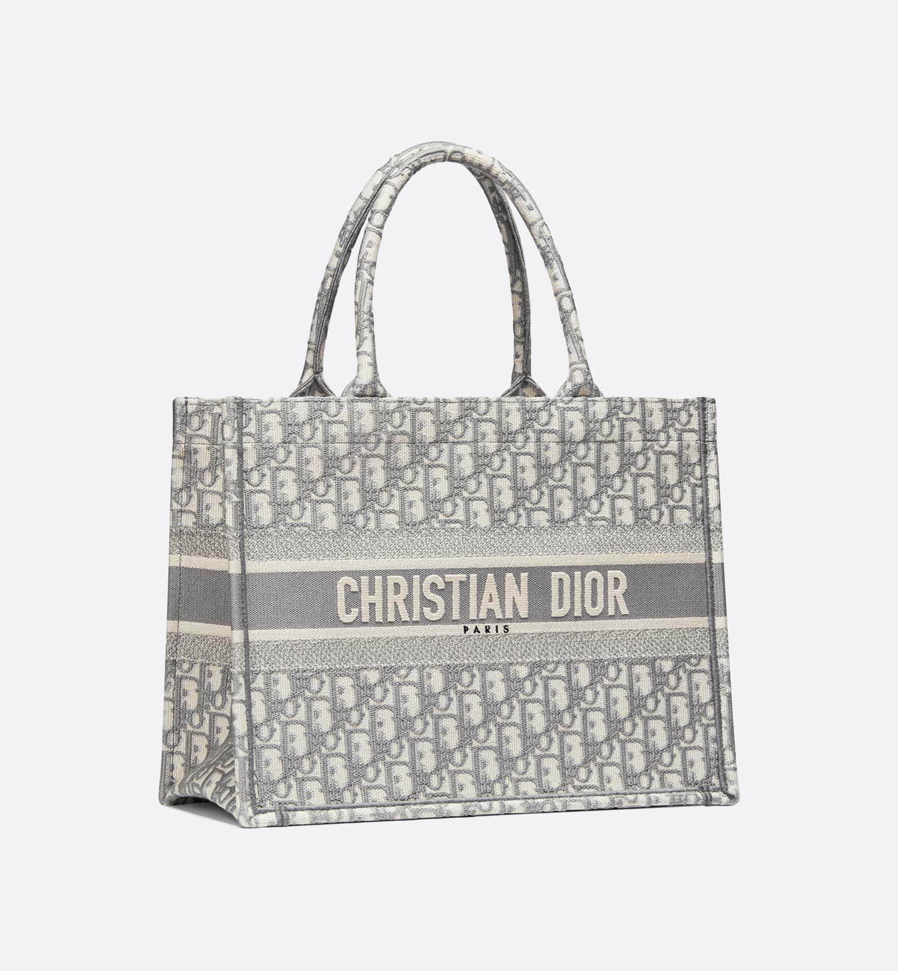 Introduced by Maria Grazia Chiuri, Creative Director of Christian Dior, the Dior Book Tote has become a staple of the Dior aesthetic. Designed to hold all the daily essentials, the style is fully embroidered with the ecru and gray Dior Oblique motif. Adorned with the Christian Dior Paris signature on the front, the medium tote exemplifies the House’s signature savoir-faire and may be carried by hand or worn over the shoulder.