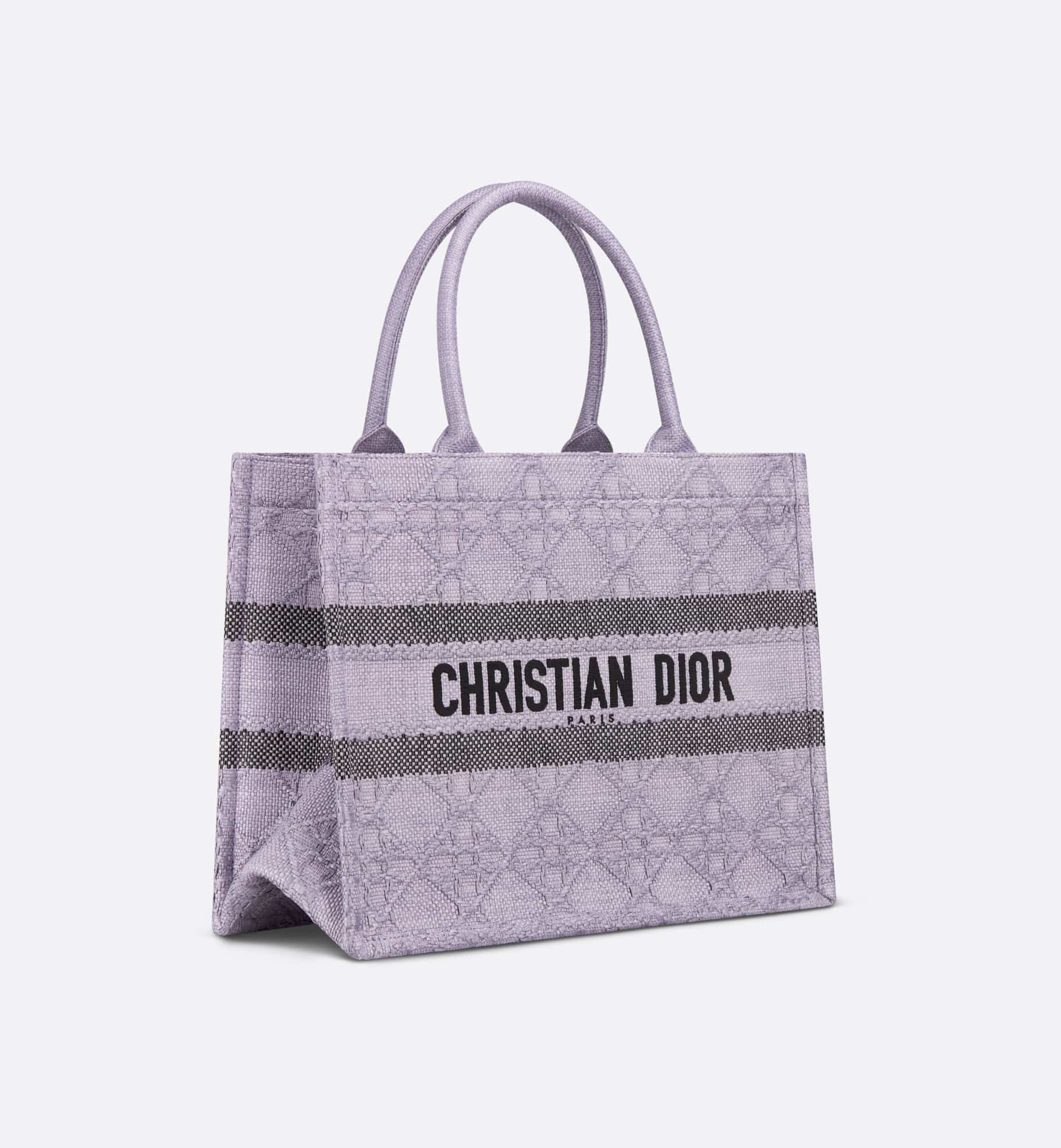 Introduced by Maria Grazia Chiuri, Creative Director of Christian Dior, the Dior Book Tote has become a staple of the Dior aesthetic. Designed to hold all the daily essentials, the style is crafted in lilac raffia embellished with the emblematic Cannage stitching. Adorned with the Christian Dior Paris signature on the front, the medium tote exemplifies the House’s signature savoir-faire and may be carried by hand or worn over the shoulder.