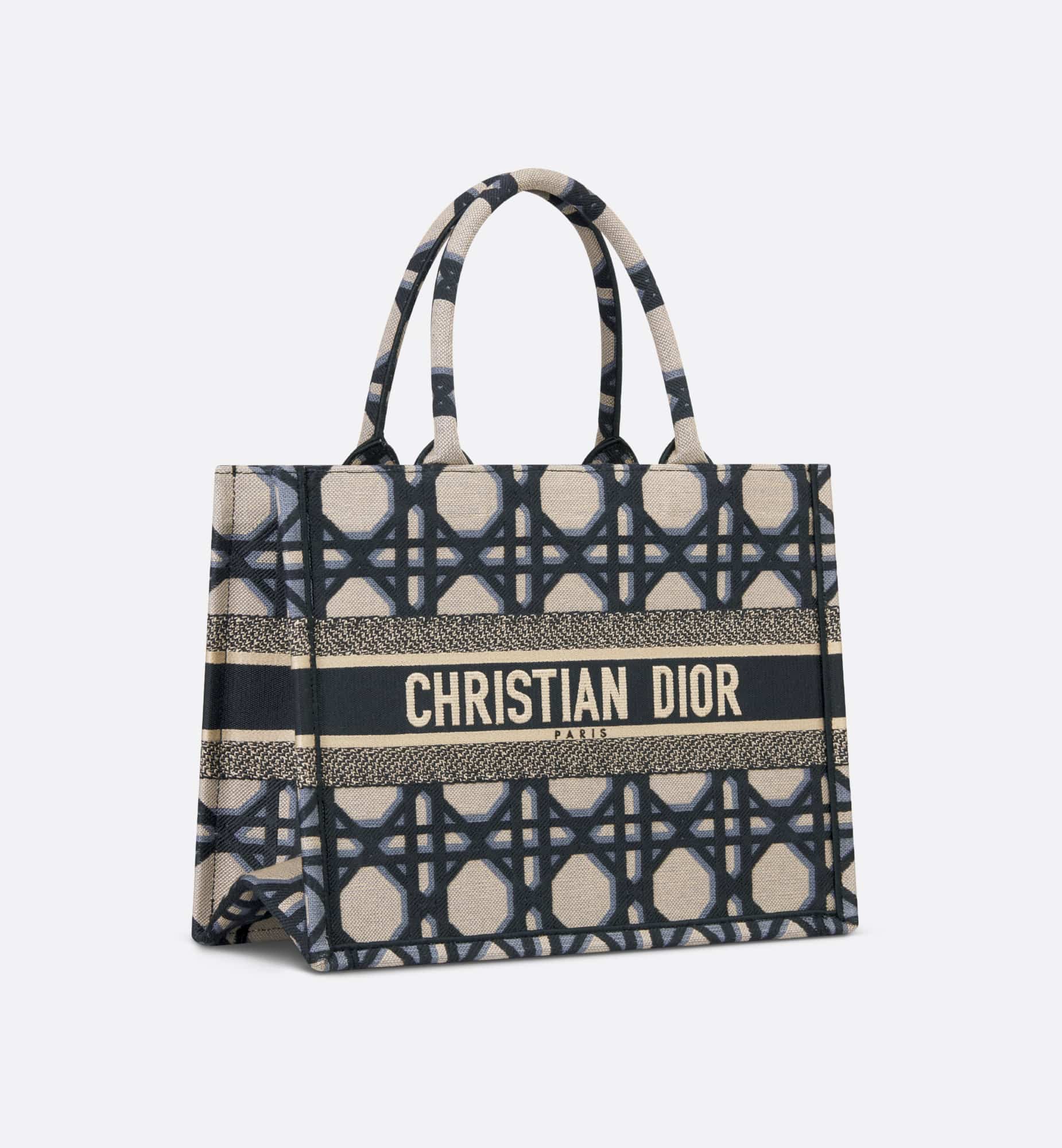 Introduced by Maria Grazia Chiuri, Creative Director of Christian Dior, the Dior Book Tote has become a staple of the Dior aesthetic. Designed to hold all the daily essentials, the style is fully embroidered with the beige and blue Macrocannage motif and is adorned with the Christian Dior Paris signature on the front. Exemplifying the House’s signature savoir-faire, the medium tote may be carried by hand or worn over the shoulder.