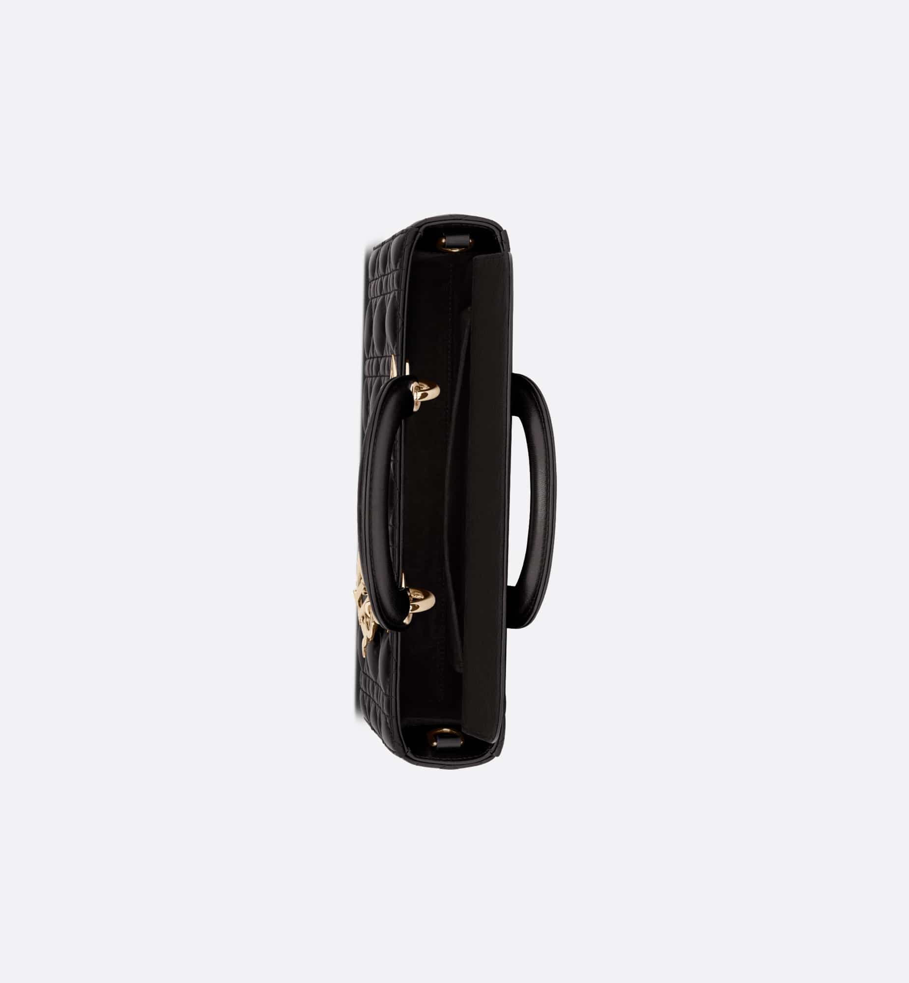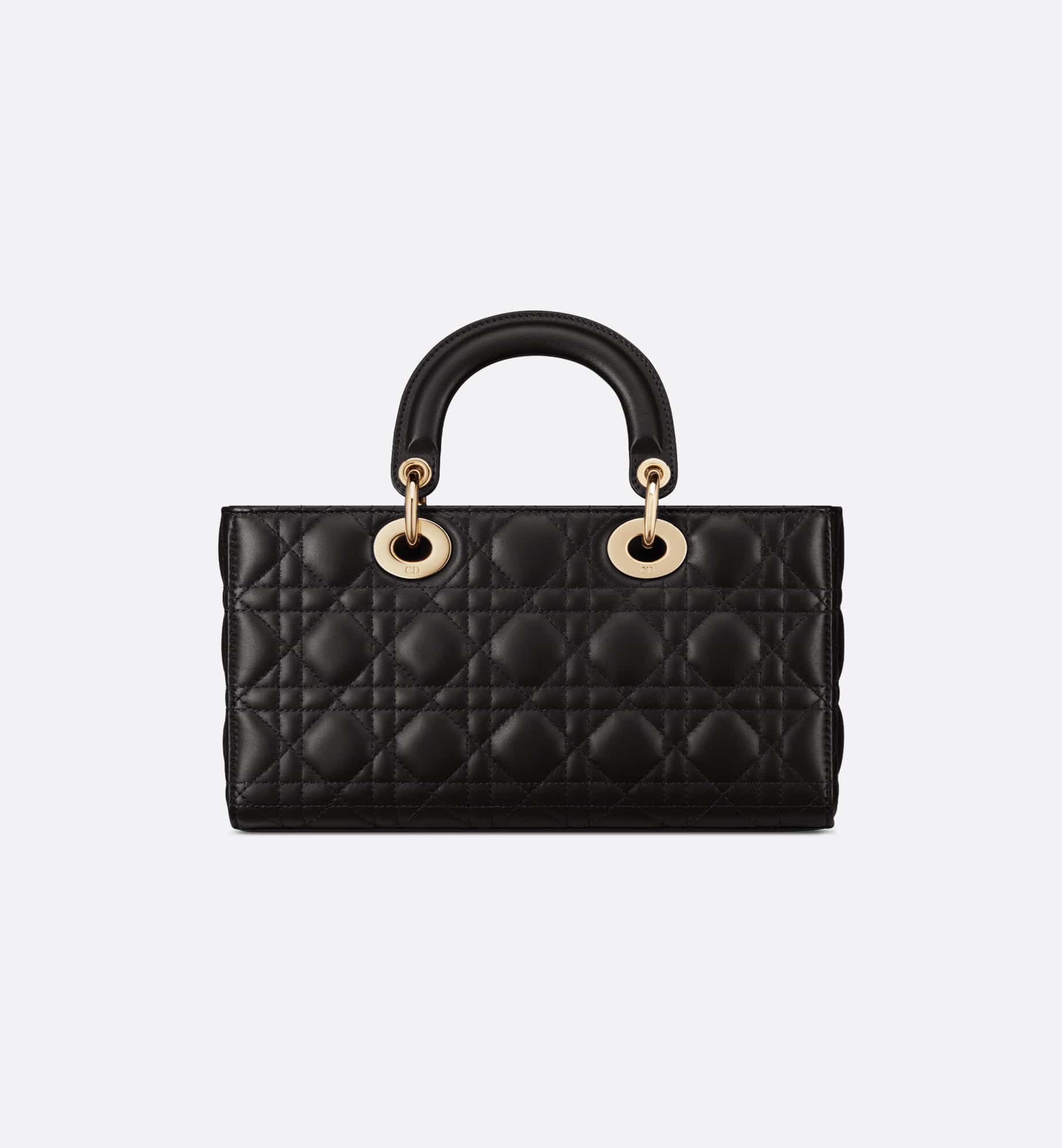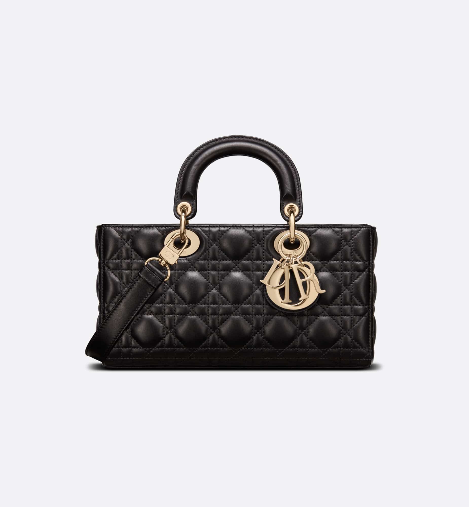 The Lady D-Joy bag captures the House’s vision of elegance and beauty. Refined and sleek, this timeless style showcases the iconic streamlined aesthetic of the Lady Dior line. Crafted in black lambskin with Cannage stitching, it is enhanced by pale gold-finish metal D.I.O.R. charms embellishing its silhouette. Featuring one removable chain shoulder strap and another adjustable and removable leather shoulder strap, the medium Lady D-Joy bag can be carried by hand or worn crossbody as a daily companion.