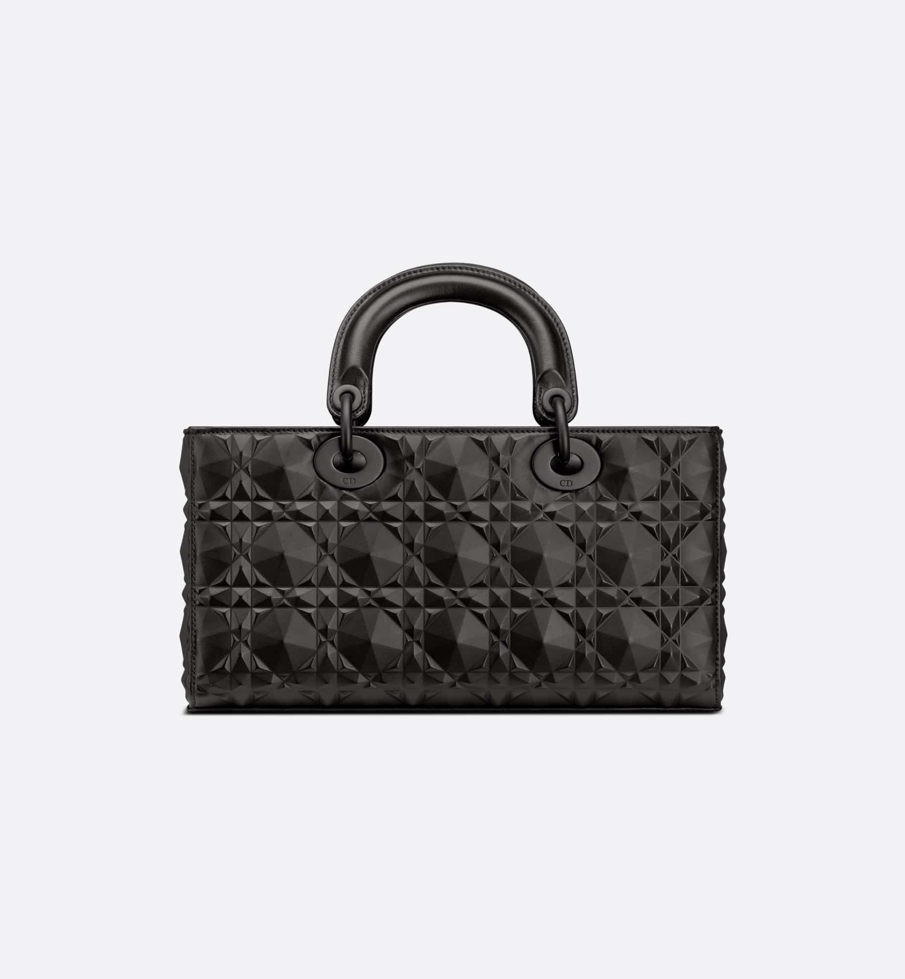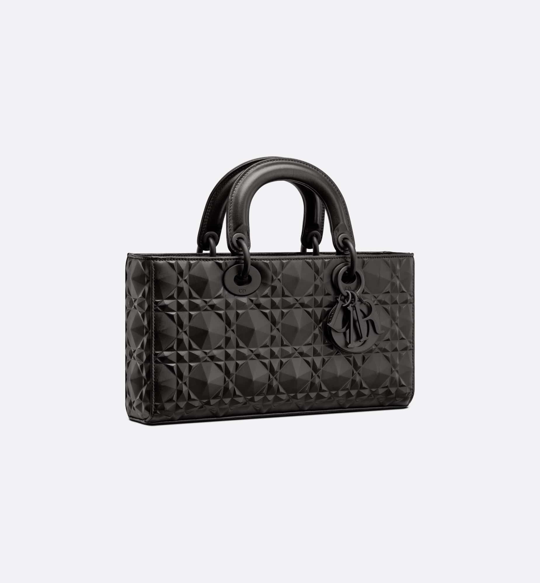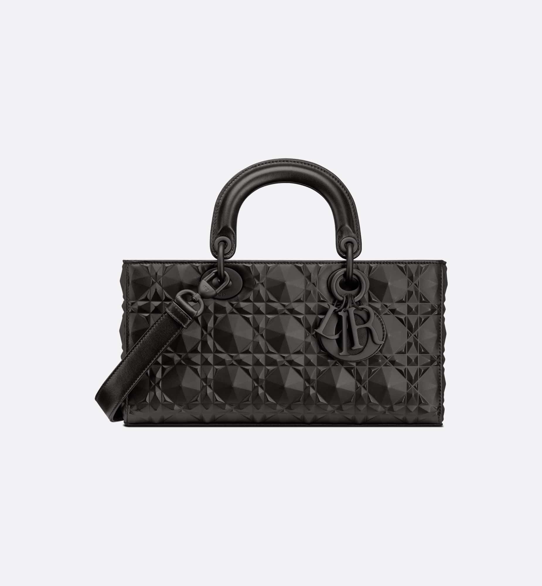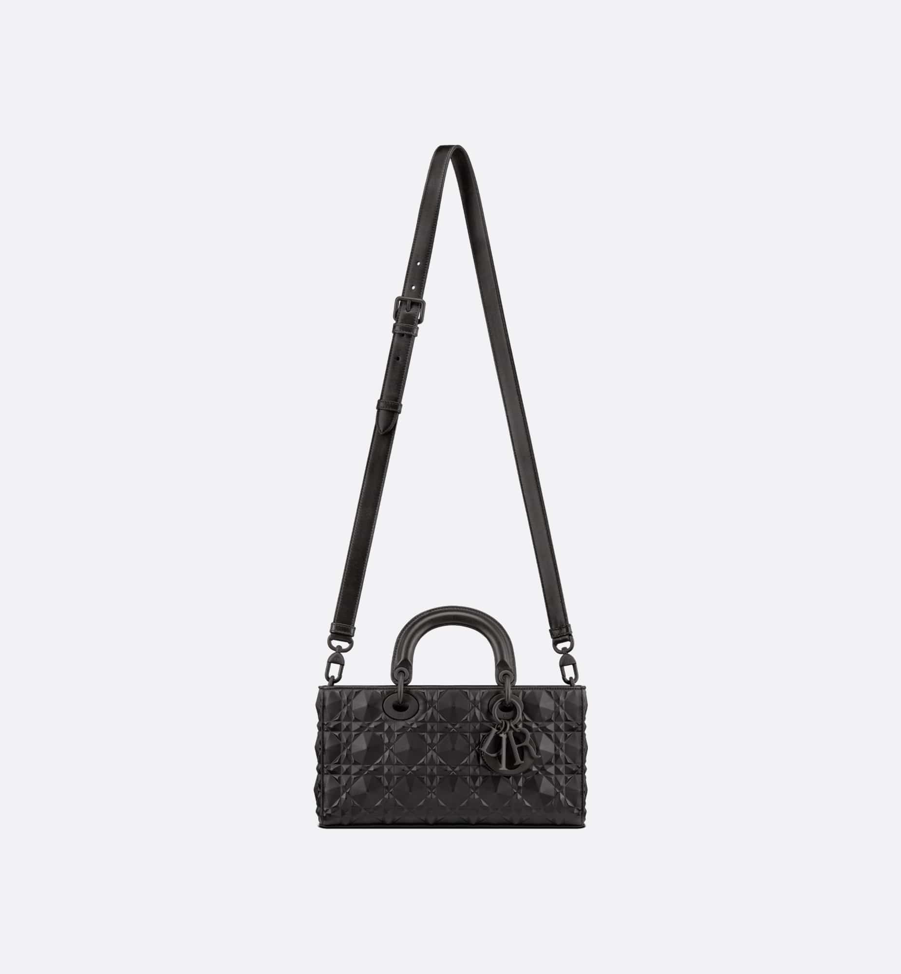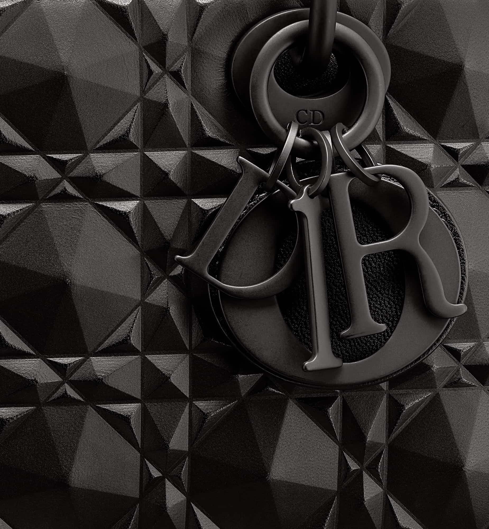 The Lady D-Joy bag captures the House’s vision of elegance and beauty by showcasing the iconic streamlined aesthetic of the Lady Dior line. Crafted in black Cannage calfskin featuring a Diamond motif, the refined and timeless style is enhanced by tonal matte metal D.I.O.R. charms elegantly embellishing its silhouette. Equipped with one removable chain shoulder strap and another adjustable and removable leather shoulder strap, the medium Lady D-Joy bag can be carried by hand, worn over the shoulder or crossbody as a daily companion.