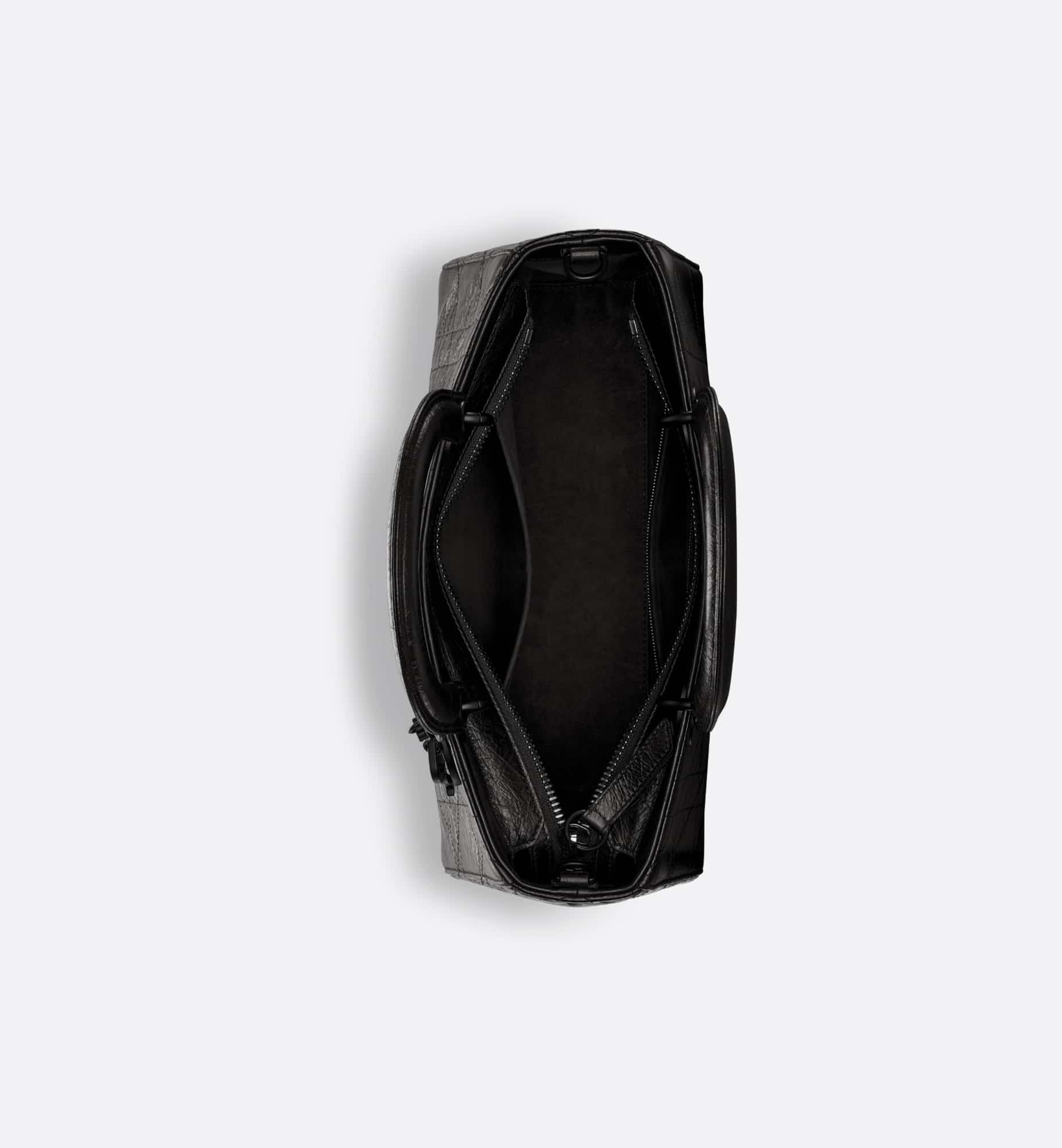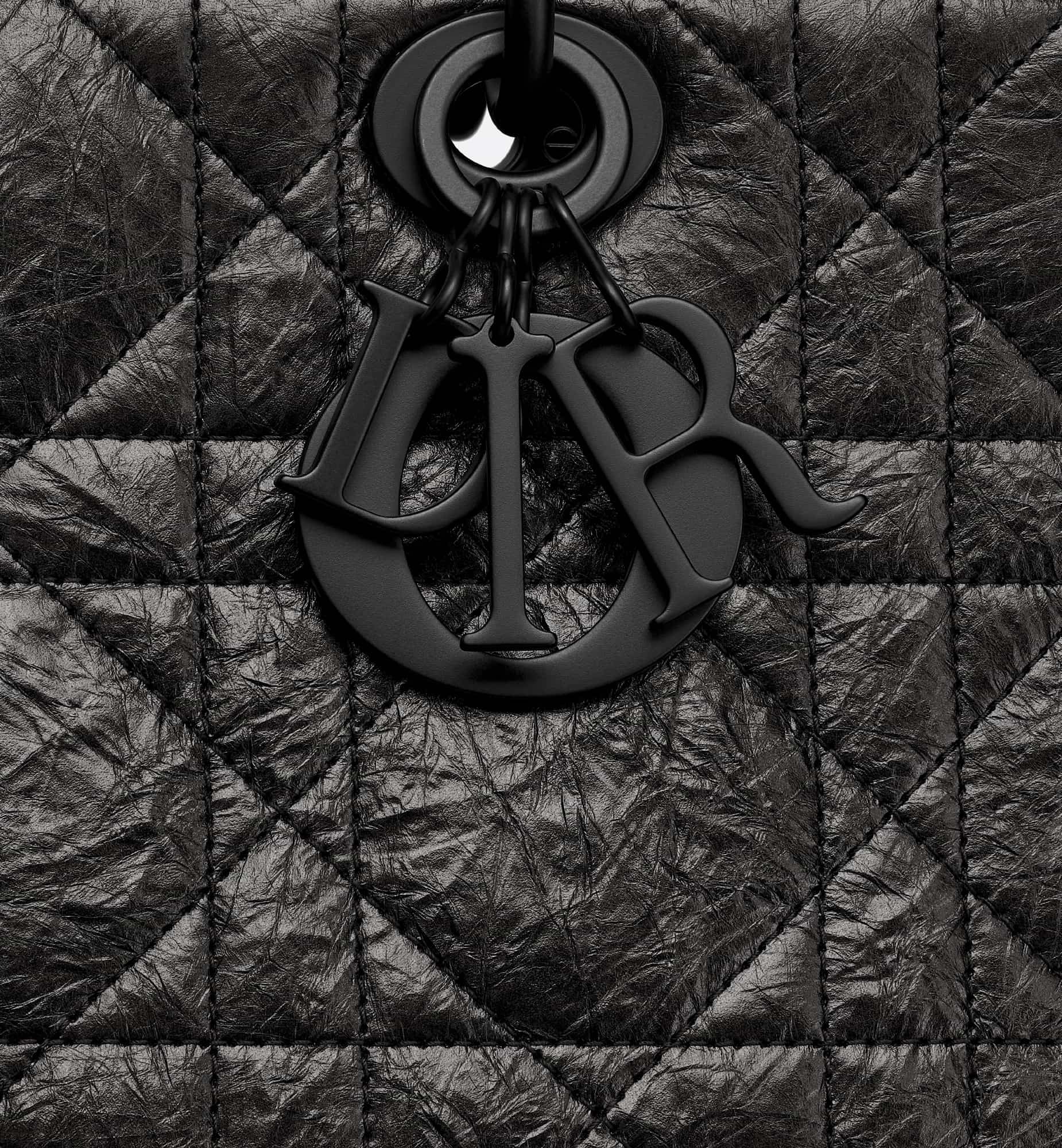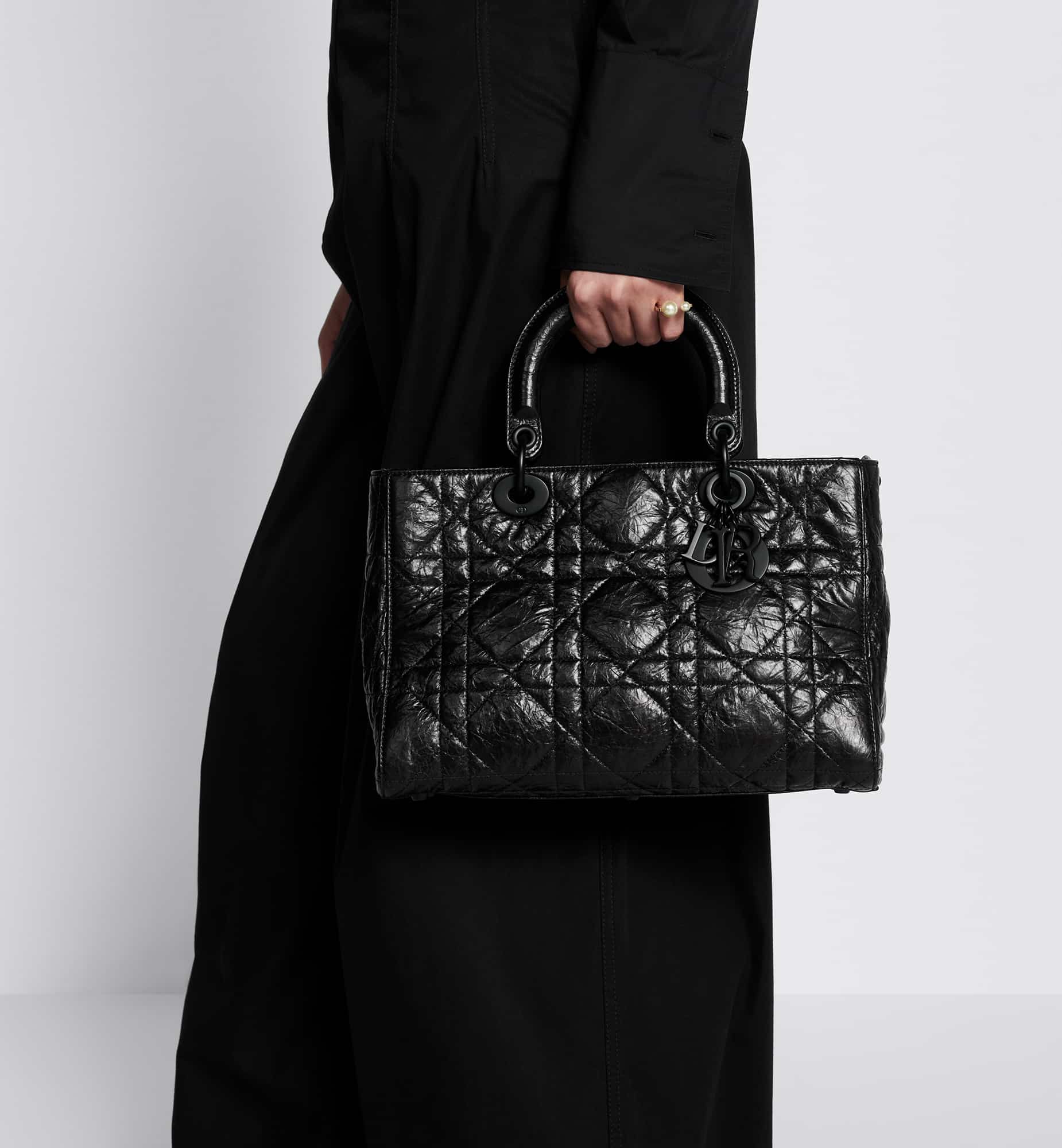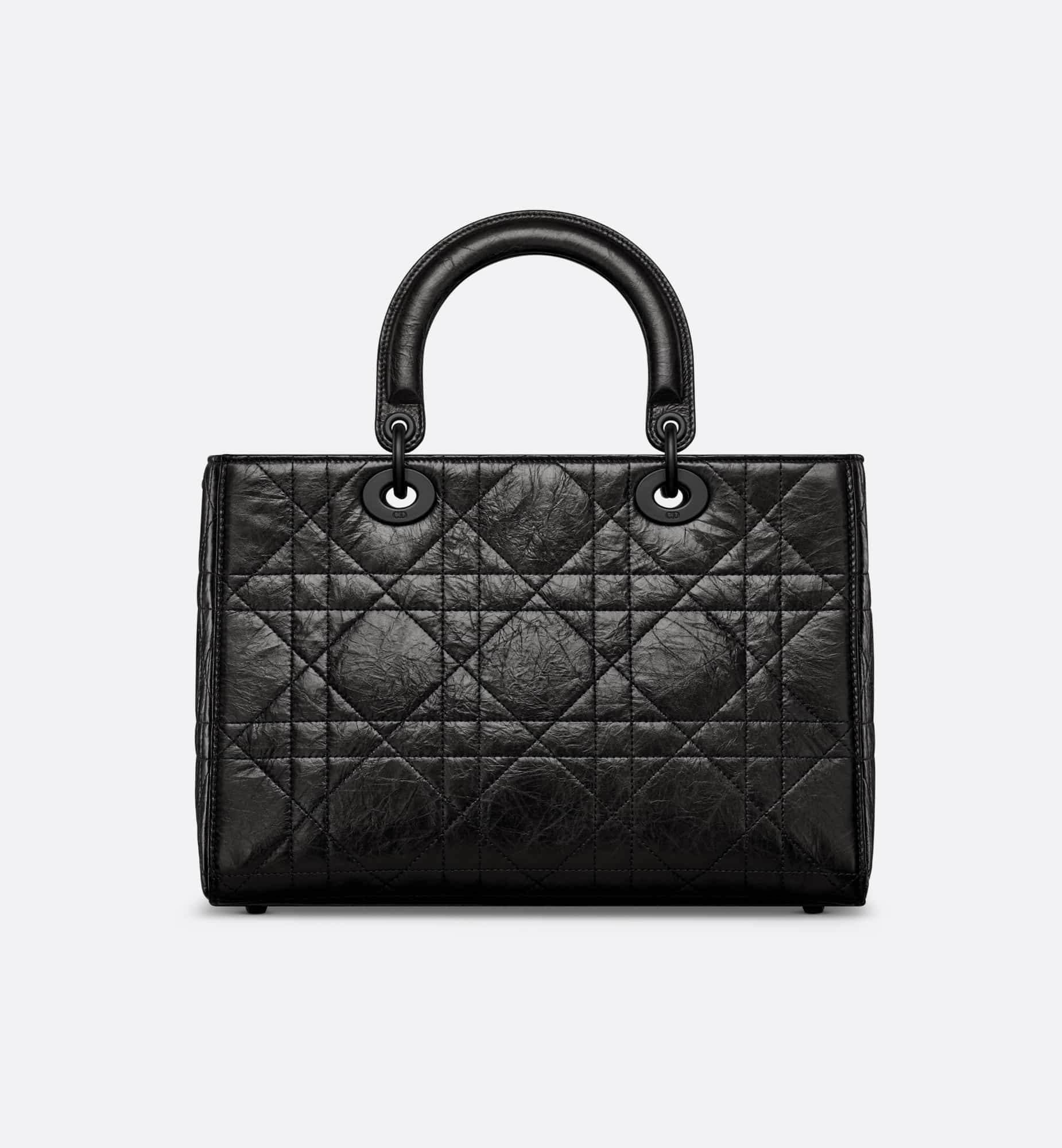 New for the season and appearing in the Spring-Summer 2024 Fashion Show, the Lady D-Sire My ABCDior bag draws inspiration from the iconic elegance of the Lady Dior design. Reimagined with a casual style for an urban look, the black crinkled calfskin is accented by Macrocannage topstitching, while tonal ultra-matte metal D.I.O.R. charms lend a modern touch. Showcasing a shoulder strap that can be personalized by adding symbolic badges, the unique medium bag can be carried by hand or worn crossbody.