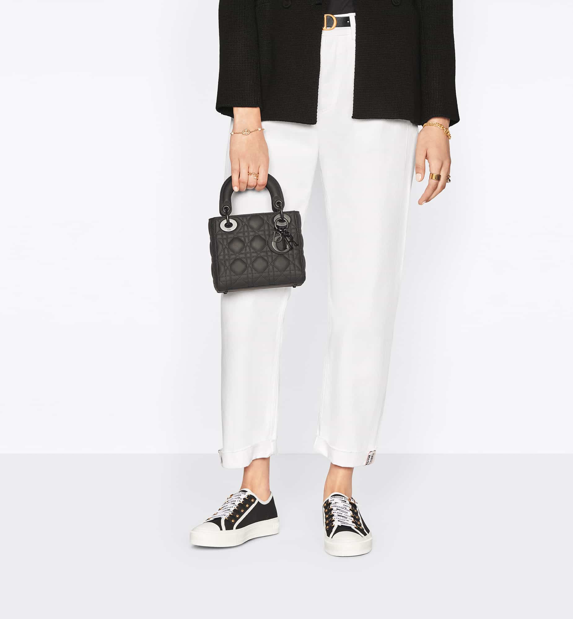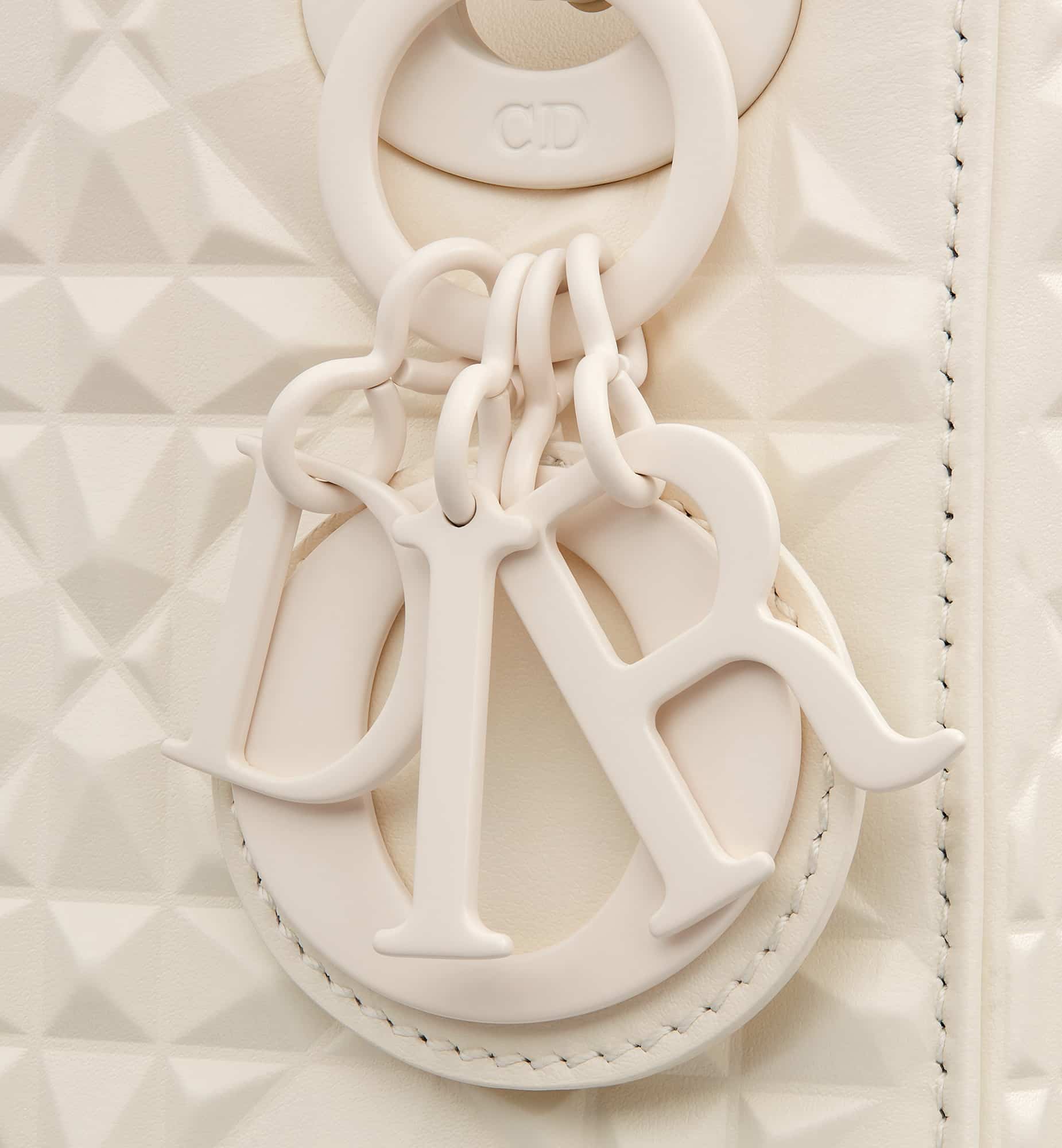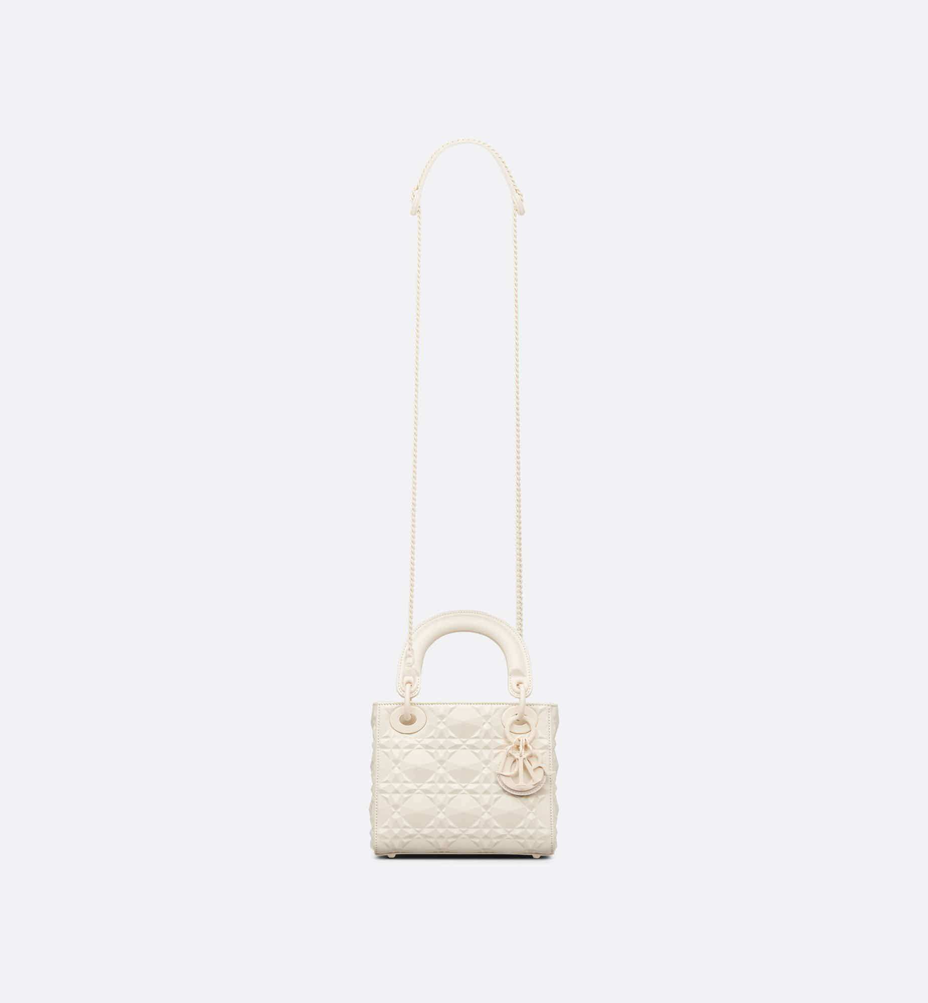 The Lady Dior bag epitomizes Dior’s vision of elegance and beauty. Sleek and refined, the creation is timeless. Crafted in latte Cannage calfskin, the bag showcases a graphic interpretation of the House’s iconic motif. The tonal matte metal D.I.O.R. charms offer elegant allure. Featuring a removable chain shoulder strap, the miniature Lady Dior bag can be carried by hand or worn crossbody.
