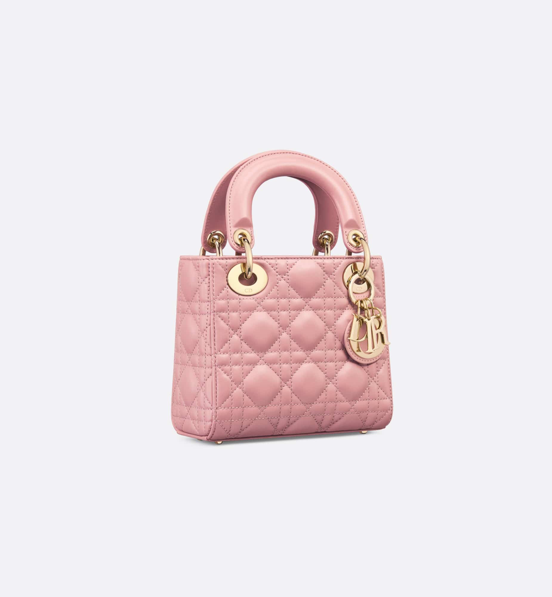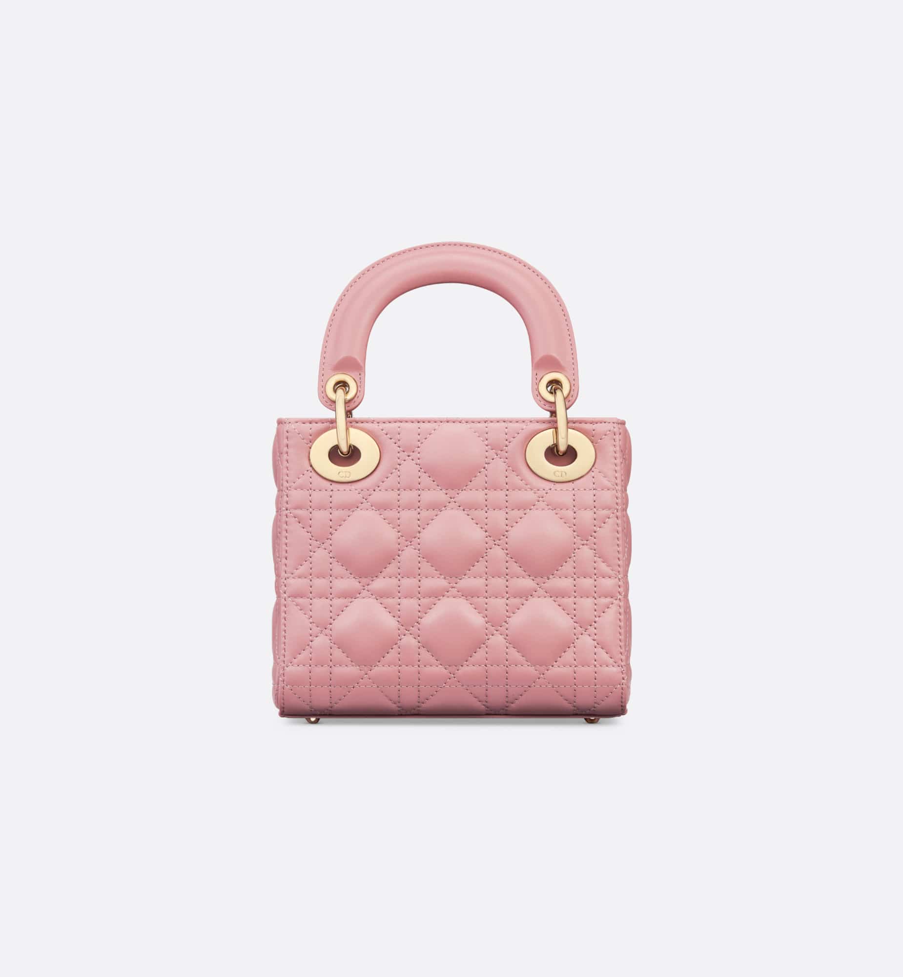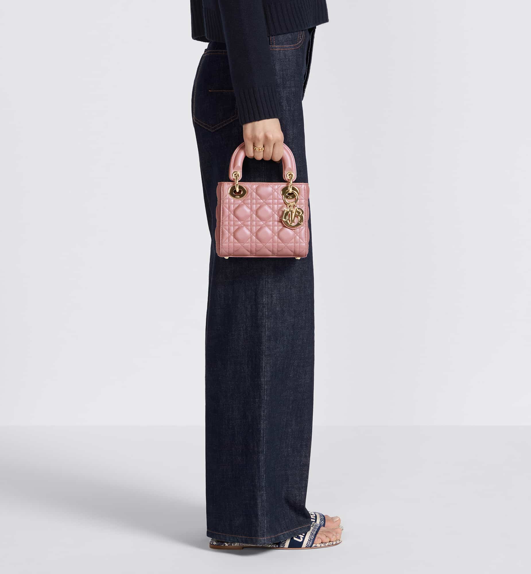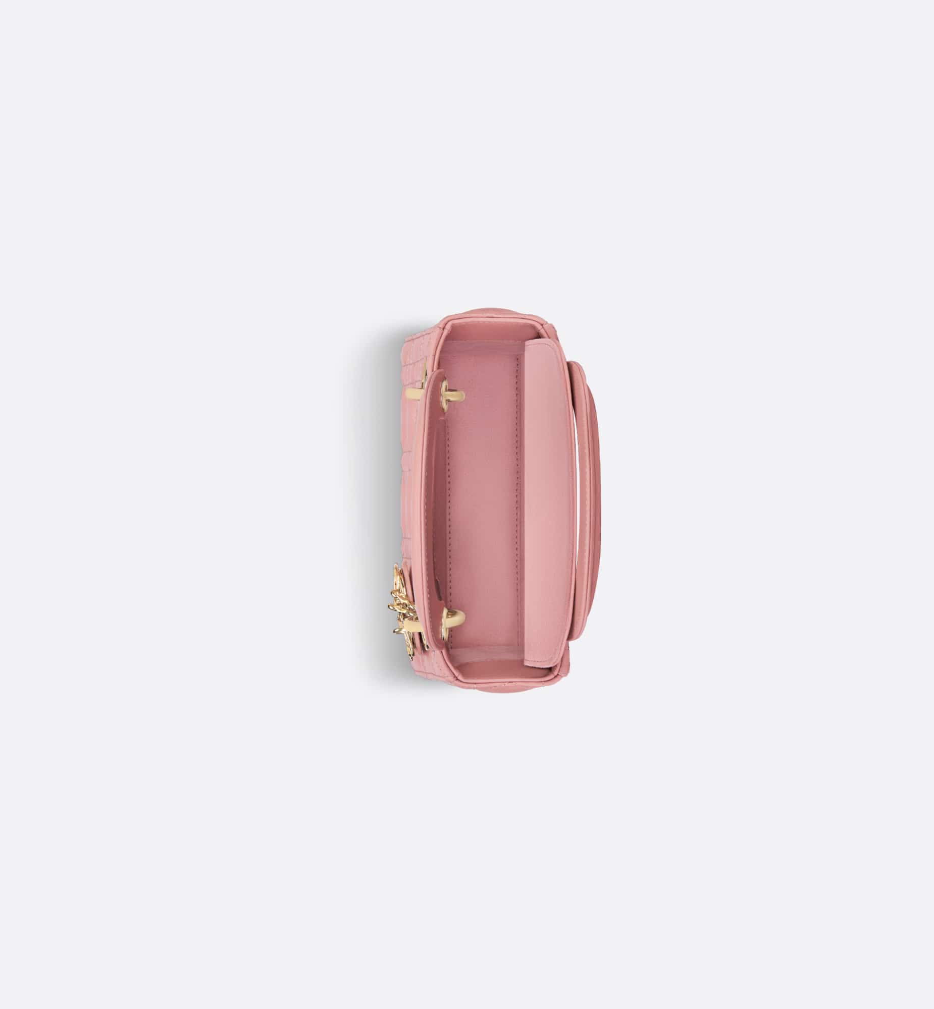 The Lady Dior bag epitomizes the House’s vision of elegance and beauty. Refined and sleek, the timeless creation is crafted in antique pink lambskin and covered with Cannage stitching, creating an instantly recognizable quilted texture. The pale gold-finish metal D.I.O.R. charms embellish and illuminate its silhouette. Featuring a removable chain shoulder strap, the miniature Lady Dior bag can be carried by hand or worn crossbody as an ideal evening wear companion.