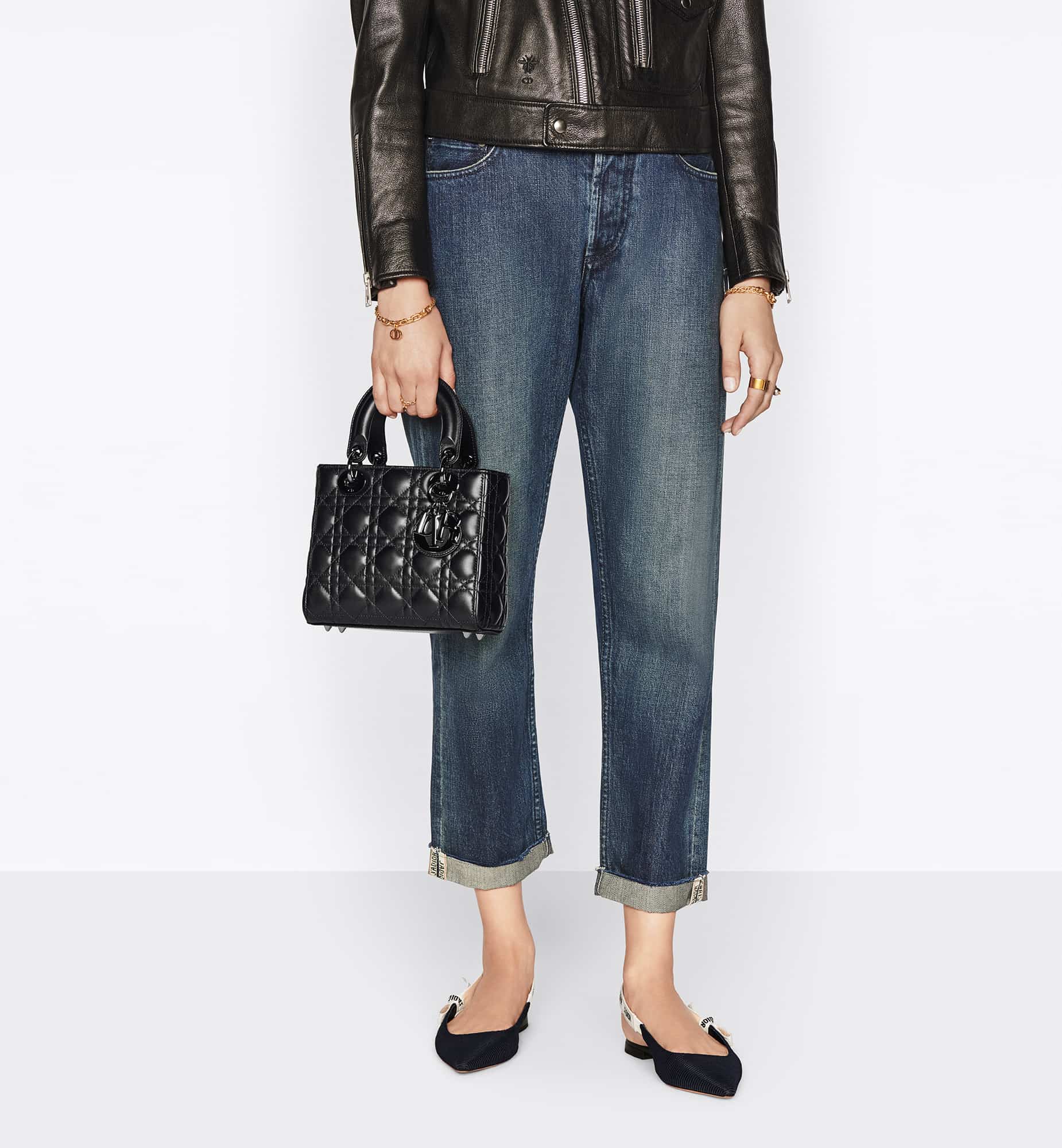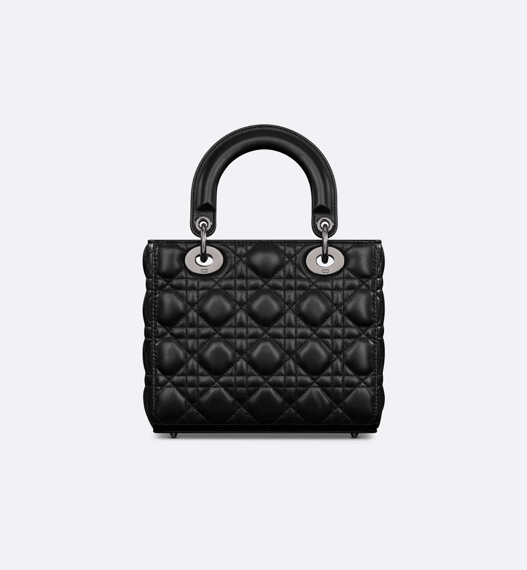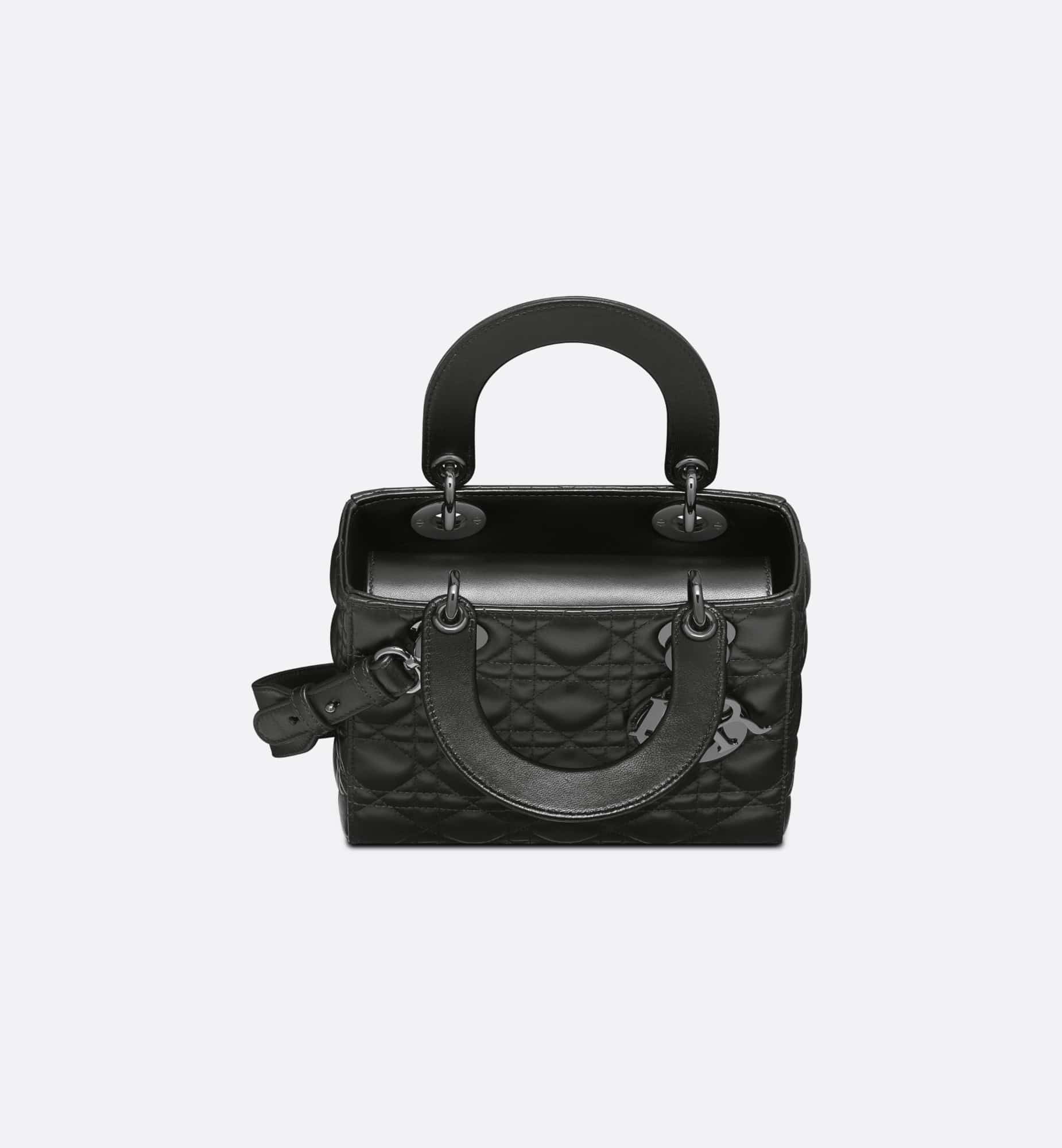 The Lady Dior My ABCDior bag epitomizes the House’s codes. A sleek, refined bag, it is a timeless creation. Crafted in black lambskin with Cannage stitching, its quilted texture instantly stands out. The ruthenium-finish D.I.O.R. charms further embellish its modern and bold silhouette. The small design may be personalized with badges placed on its wide shoulder strap and can be carried by hand or worn crossbody.