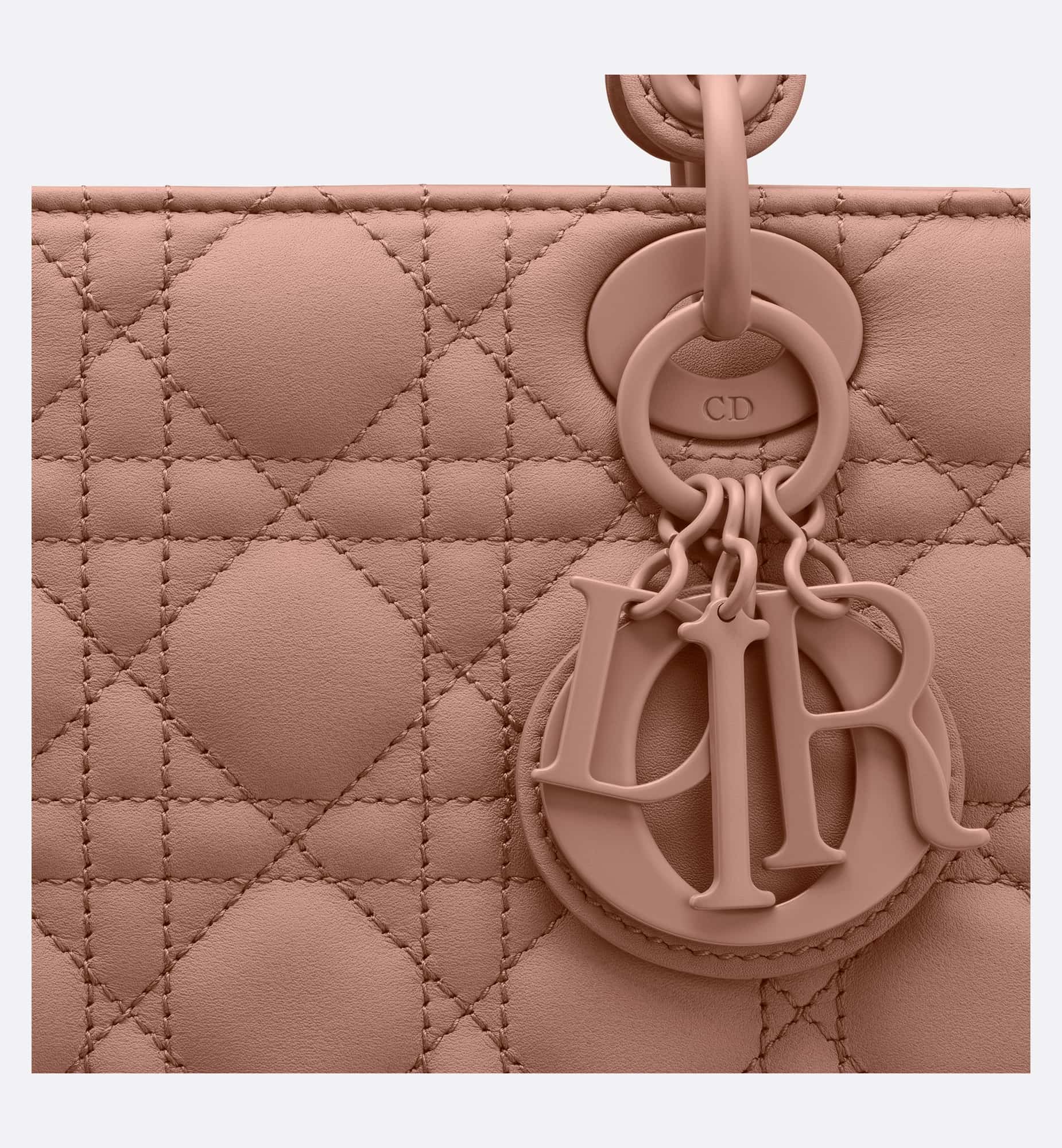 The Lady Dior My ABCDior bag epitomizes Dior’s vision of elegance and beauty. Sleek and refined, the timeless style is crafted in blush ultramatte calfskin with Cannage stitching, creating the instantly recognizable quilted texture. Tonal metal D.I.O.R. charms further embellish its silhouette with an elegant allure. Featuring a shoulder strap that can be personalized with badges, the small, unique design may be carried by hand or worn crossbody.