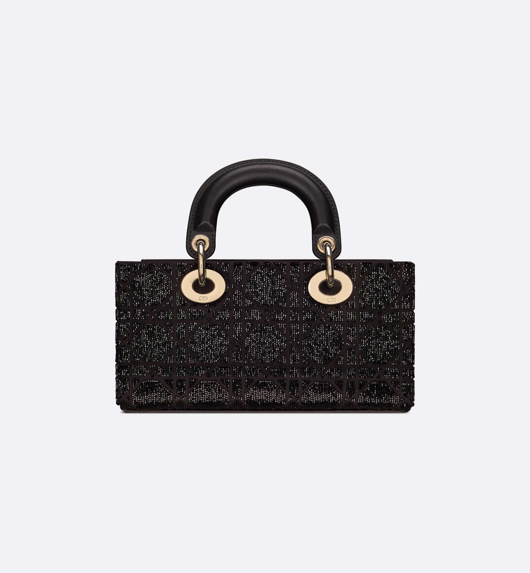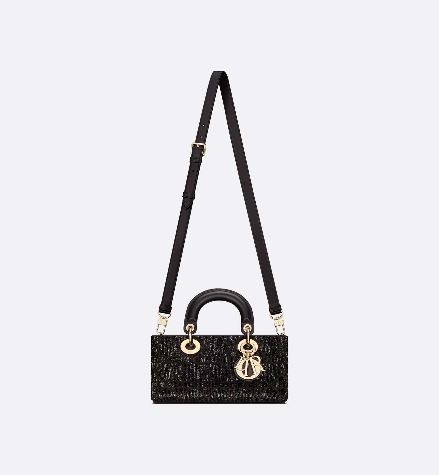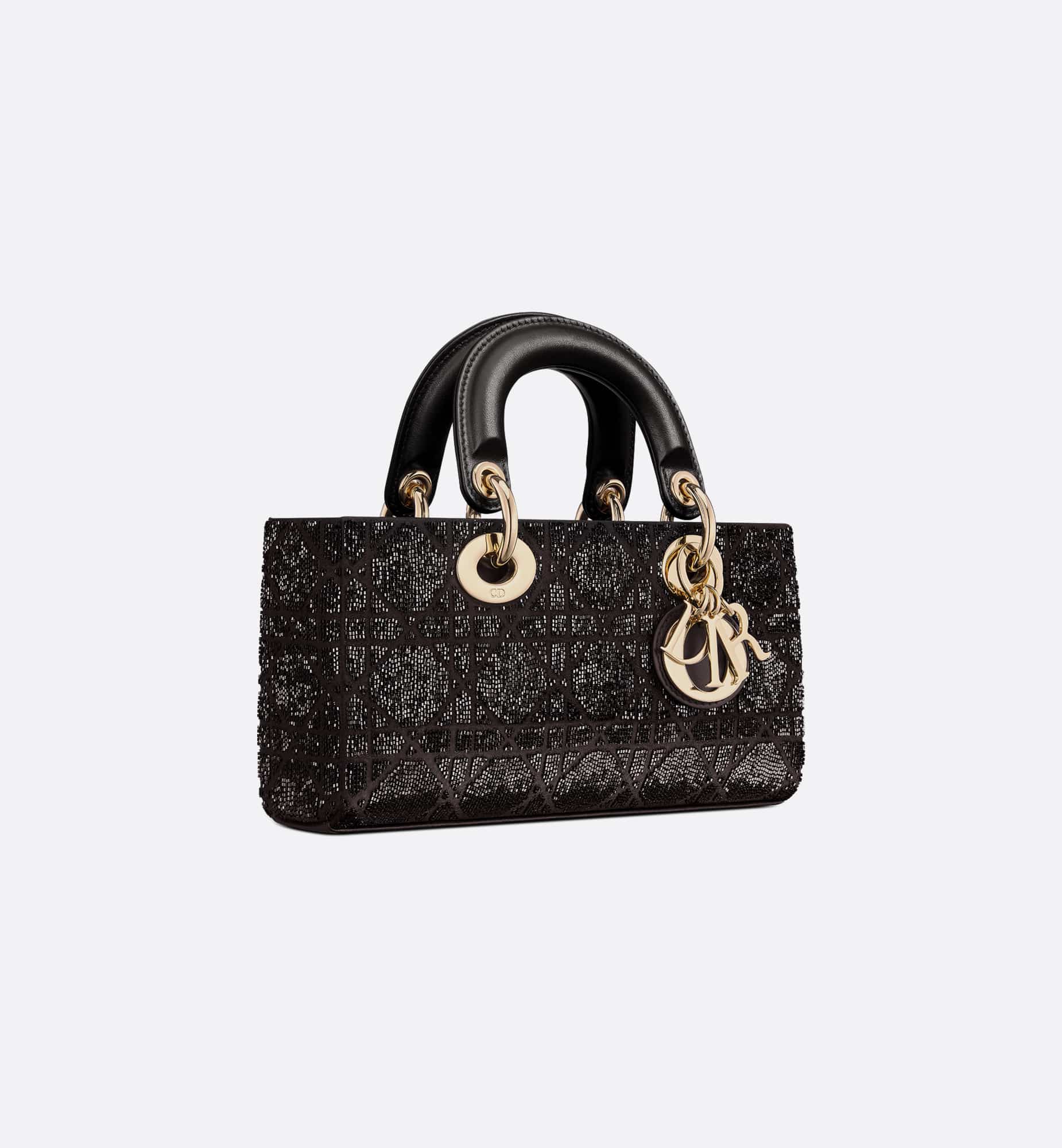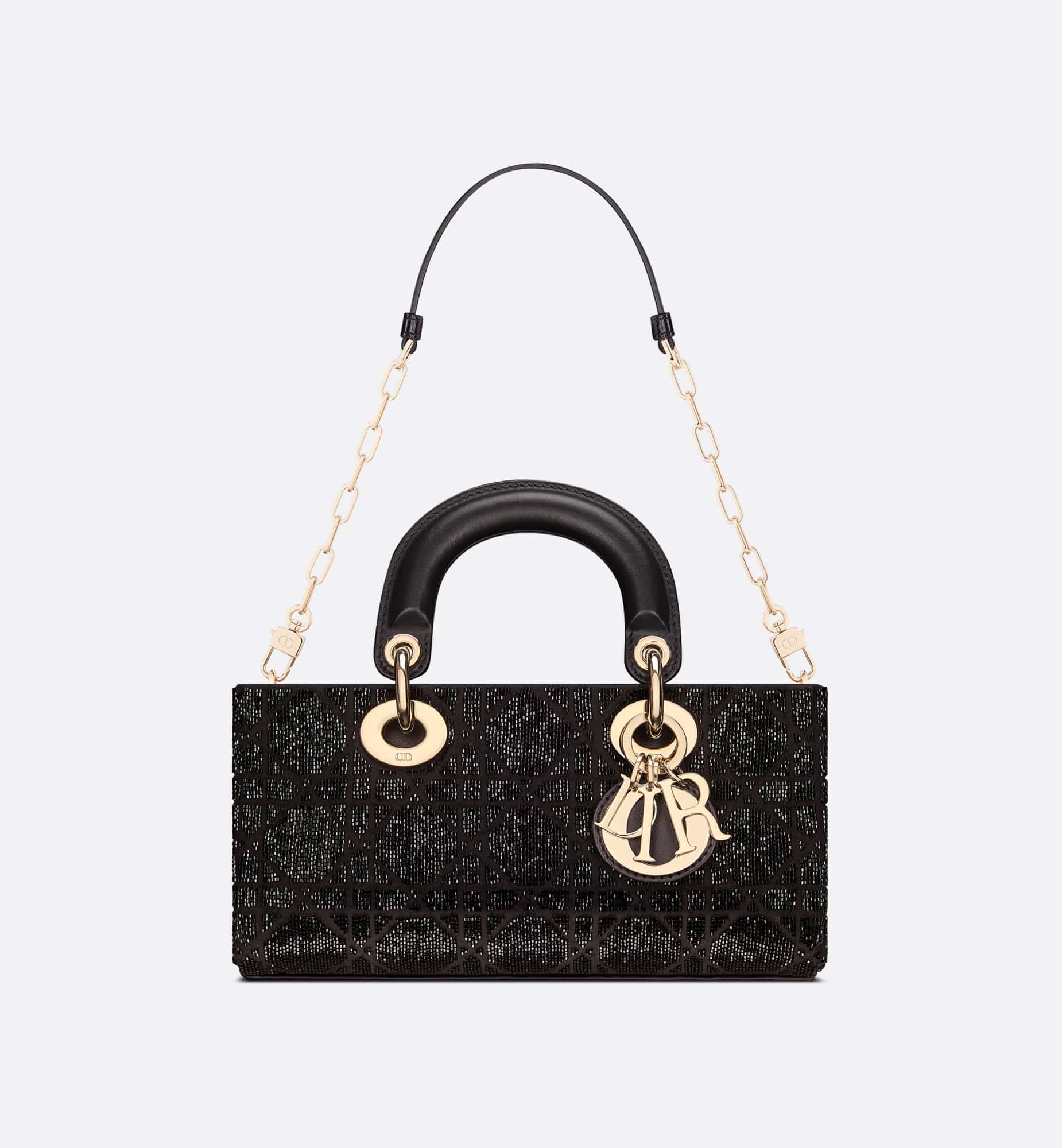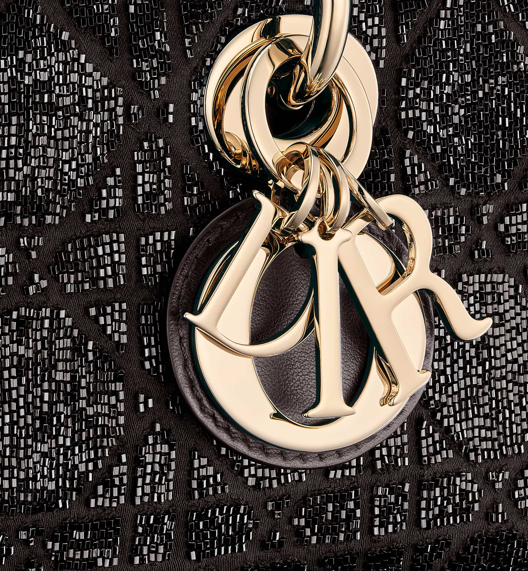The Lady D-Joy bag captures the House’s vision of elegance and beauty by showcasing the iconic streamlined aesthetic of the Lady Dior line. Demonstrating the unique savoir-faire of Dior’s leatherworkers, the style highlights black cotton entirely hand-embroidered with tonal micropearls displaying the Cannage motif. Pale gold-finish metal D.I.O.R. charms embellish and illuminate its silhouette. Featuring one removable chain strap and another adjustable and removable leather strap, the small Lady D-Joy bag can be carried by hand, worn over the shoulder or crossbody as a daily companion.