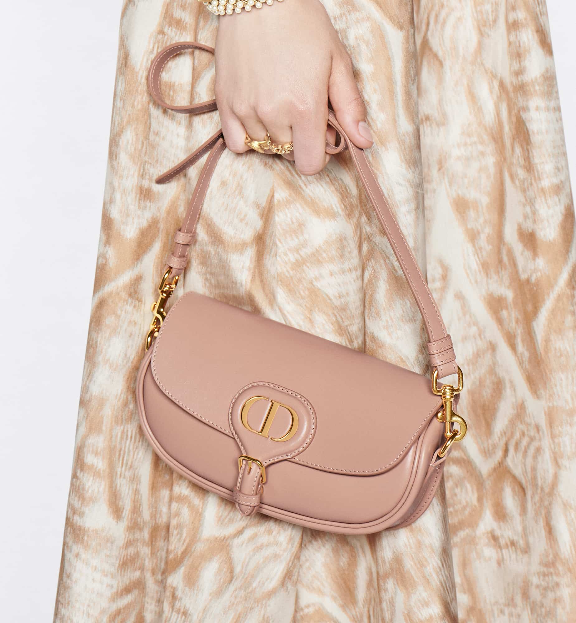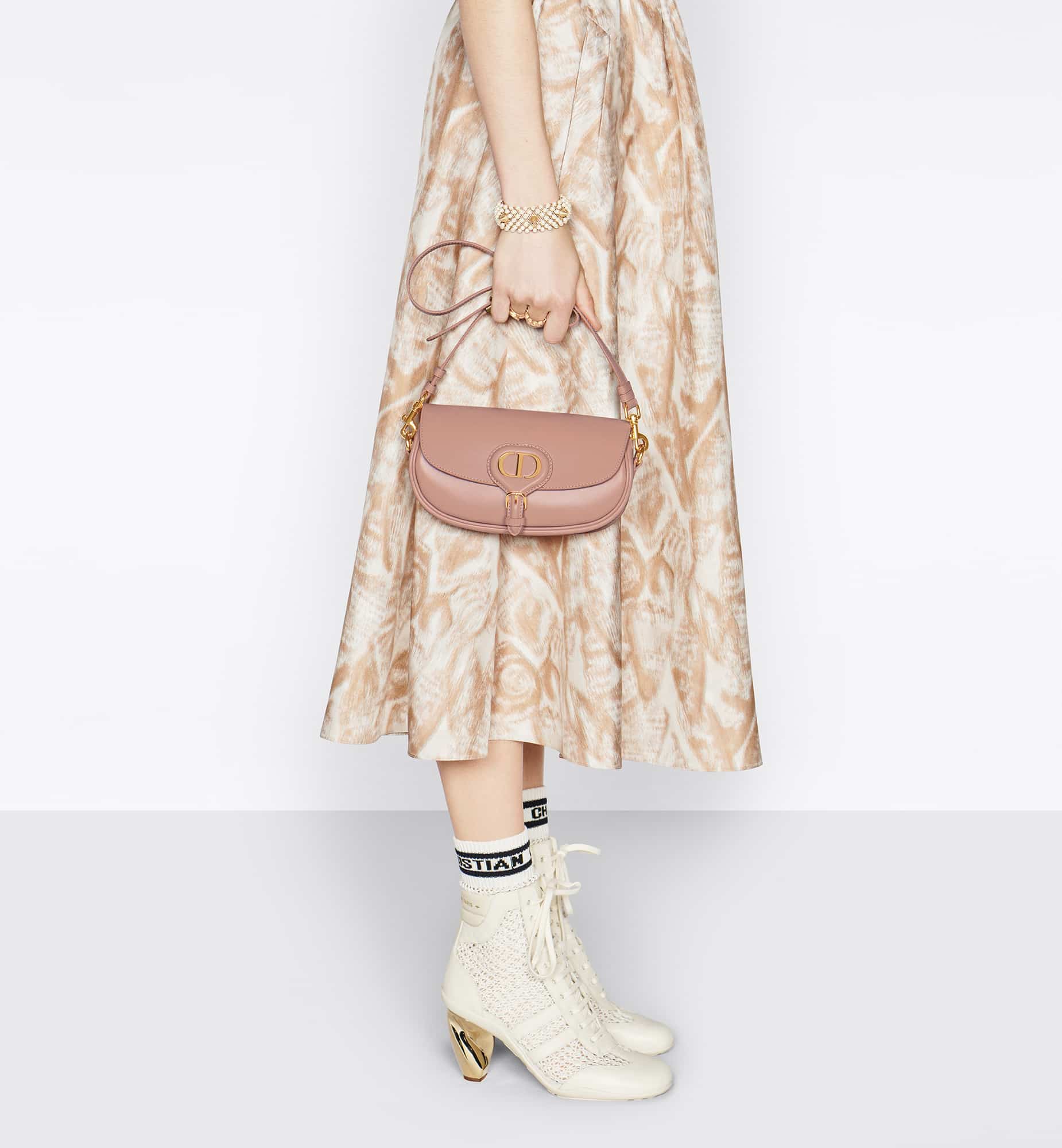 New this season, the Dior Bobby East-West bag modernizes the appeal of the Hobo silhouette through elegant lines and harmonious proportions. The Rose des Vents box calfskin style features a suede calfskin interior for added suppleness as well as antique gold-finish metal hardware. Adorned with a removable, adjustable sliding shoulder strap with a military-inspired buckle, the medium Dior Bobby bag can be carried by hand worn over the shoulder for day or night, or crossbody for a sportier look.