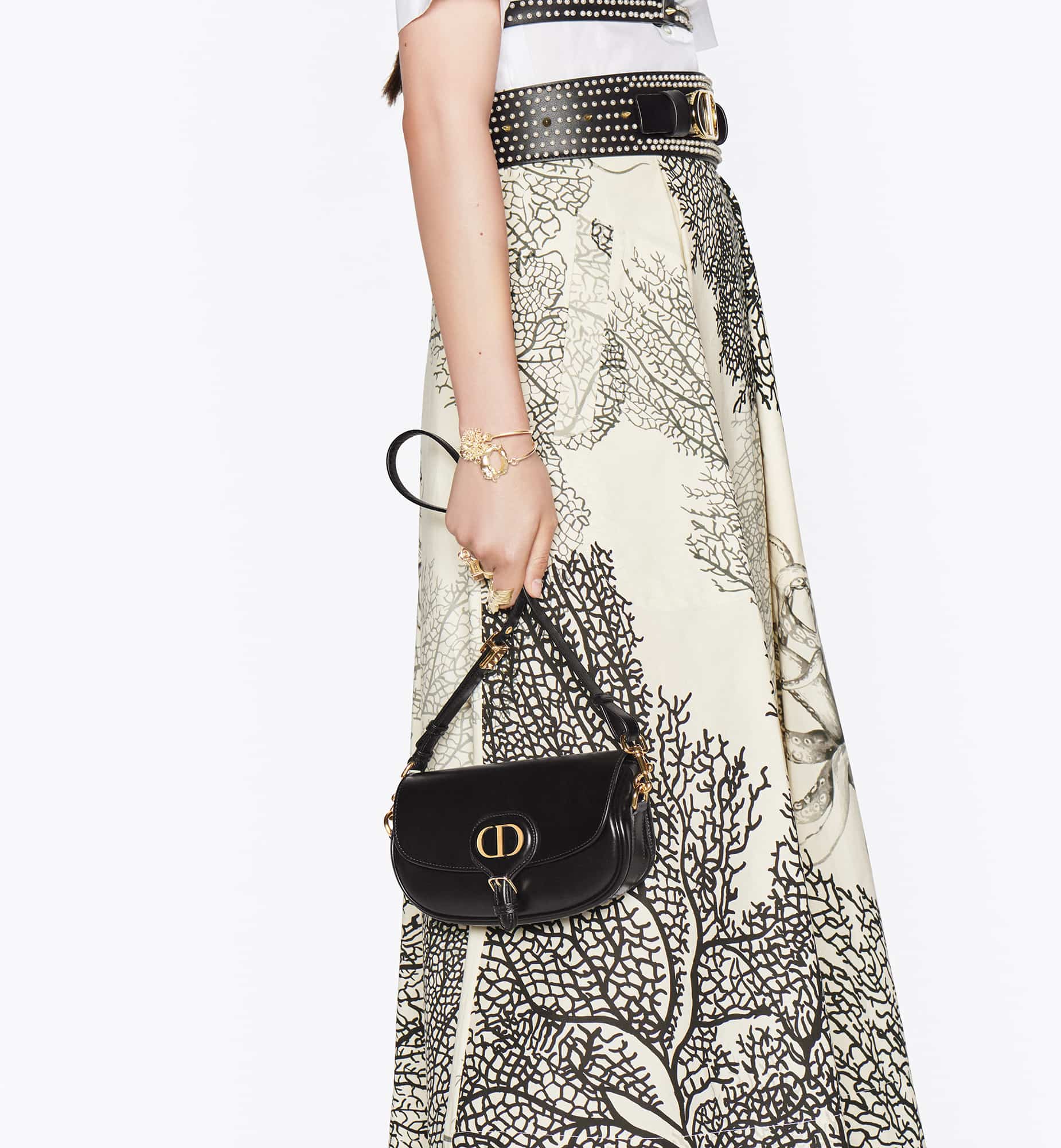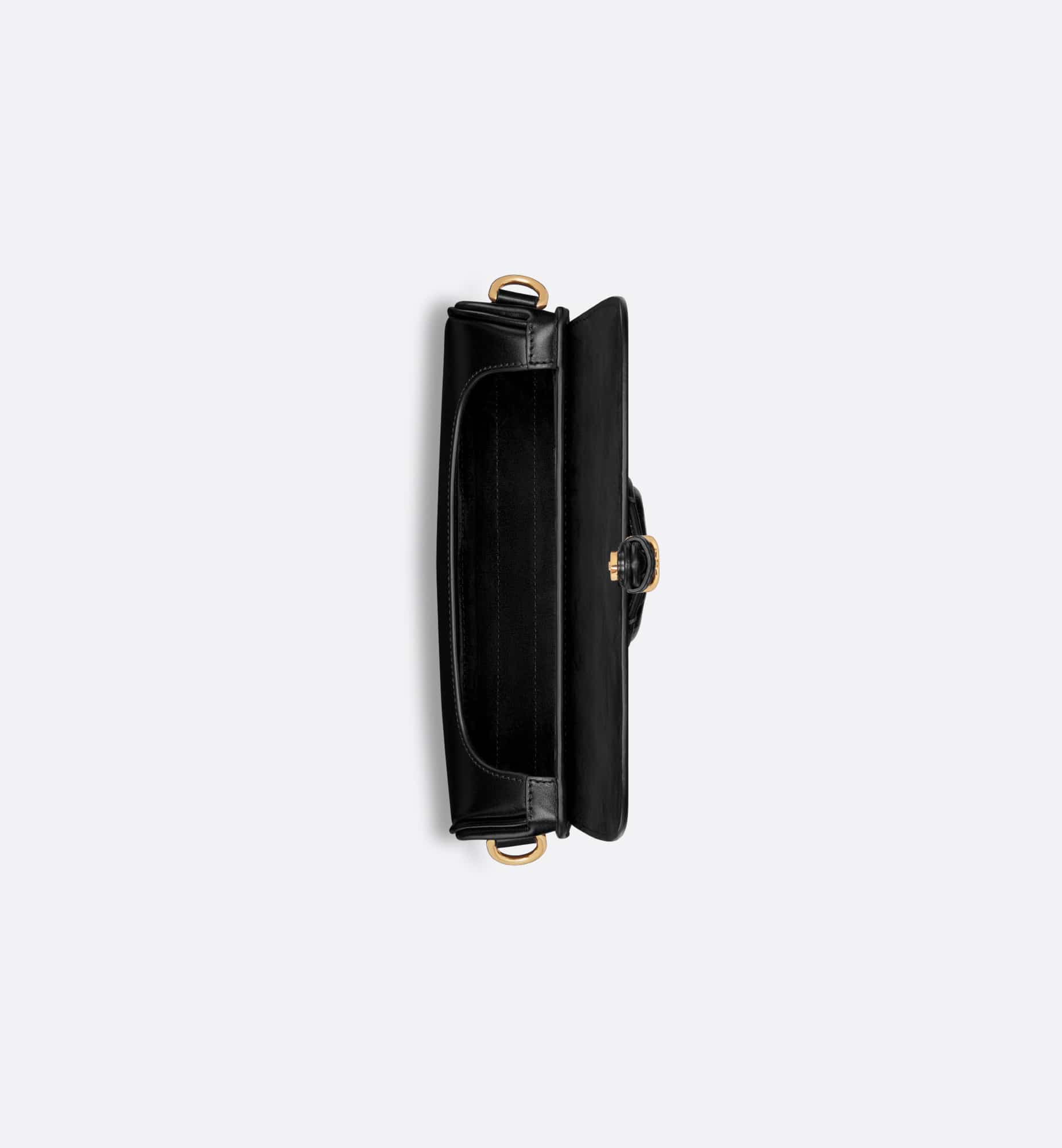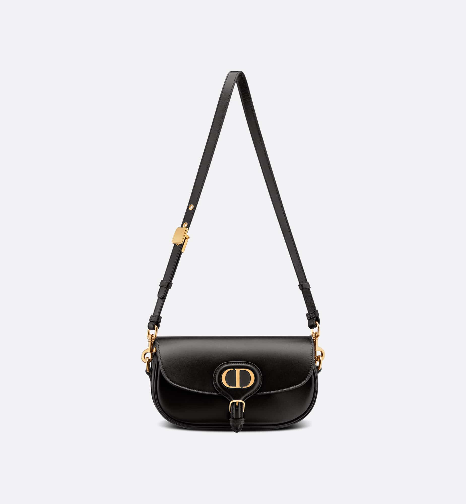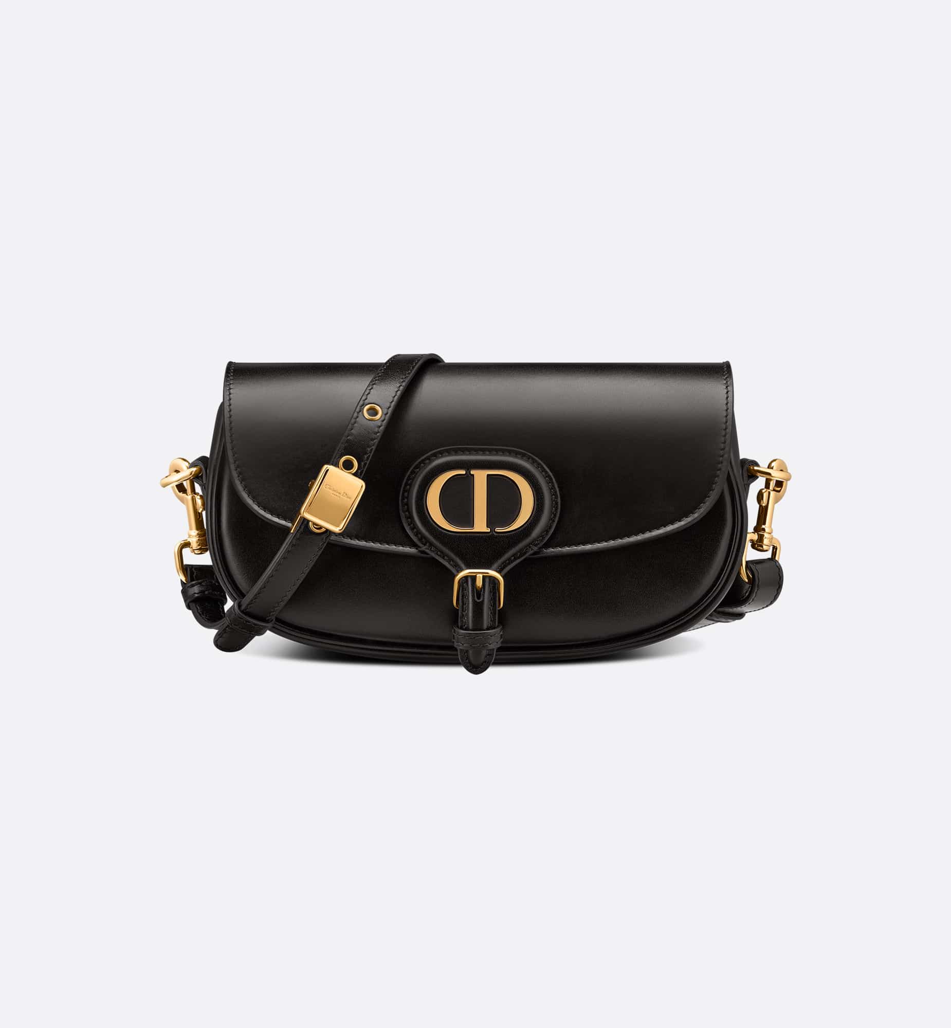 New this season, the Dior Bobby East-West bag modernizes the allure of the Hobo silhouette through elegant lines and harmonious proportions. The black box calfskin style features a suede calfskin interior for added suppleness as well as antique gold-finish metal hardware. Adorned with a removable, adjustable sliding shoulder strap with a military-inspired buckle, the medium Dior Bobby bag can be carried by hand worn over the shoulder for day or night, or crossbody for a sportier look.