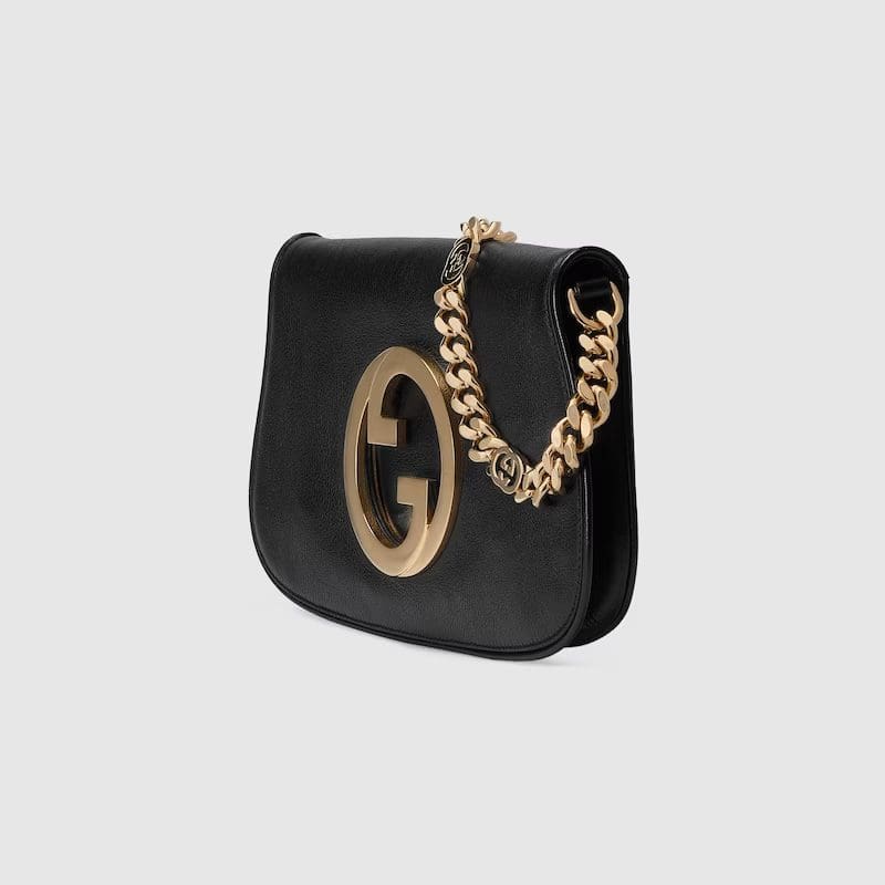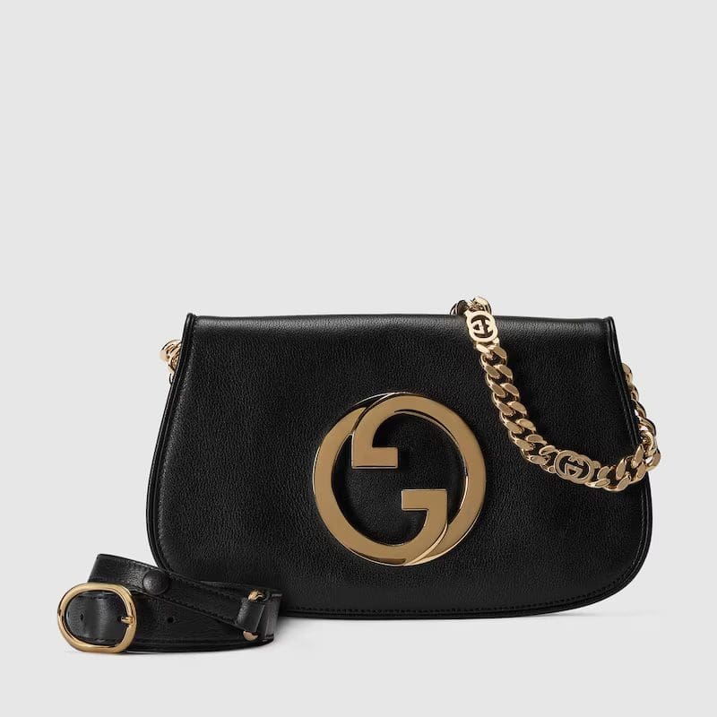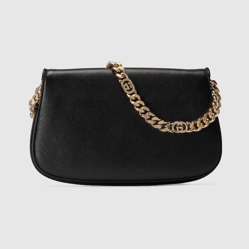 Vintage elements are paired with archival details as an ode to the glamour that permeated the Gucci Love Parade fashion show. This shoulder bag pairs a delicate chain strap with black leather to infuse the accessory with a timeless feel. Reintroduced in honour of the collection, the rounded silhouette is completed by a historical, rounded iteration of Guccio Gucci’s monogram.