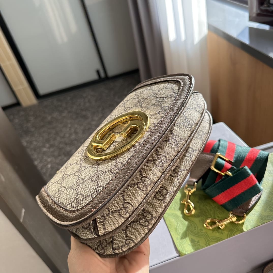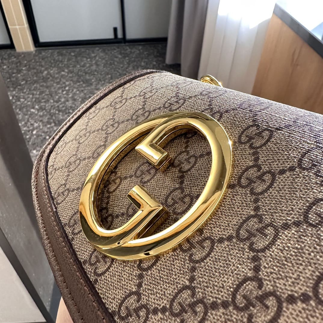Vintage elements are paired with archival details as an ode to the glamour that permeated the Gucci Love Parade fashion show. This shoulder bag pairs a delicate chain strap with GG Supreme canvas to infuse the accessory with a timeless feel. Reintroduced in honour of the collection, the rounded silhouette is completed by a historical, rounded iteration of Guccio Gucci’s monogram.