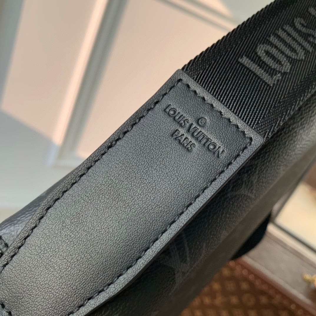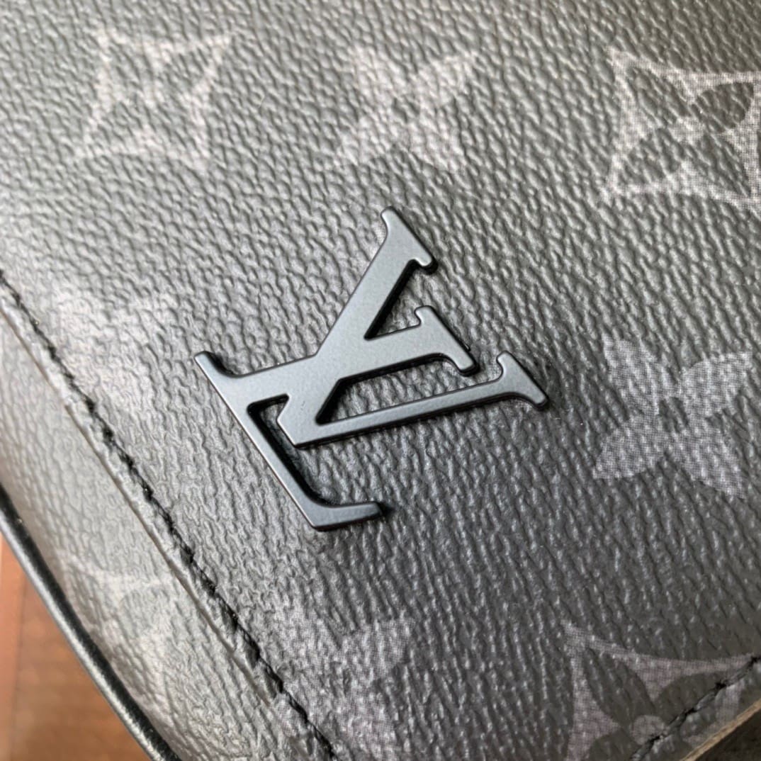 This District small messenger bag exudes handsome charm in Monogram Eclipse canvas. The Louis Vuitton logo and LV letters in the lower left corner highlight the brand elements. The rear zippered outer pocket is easy to access and the adjustable shoulder strap allows for comfortable carrying.
