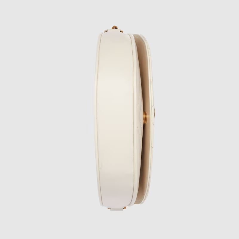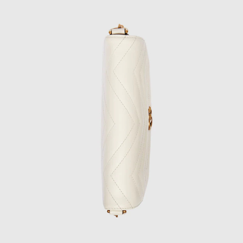 The Double G hardware brings the past into the House’s present with the notion that a cherished wardrobe is enriched by items that can be worn season after season. This chain mini bag is crafted from the signature white matelassé chevron leather, while the inside features two card slots.