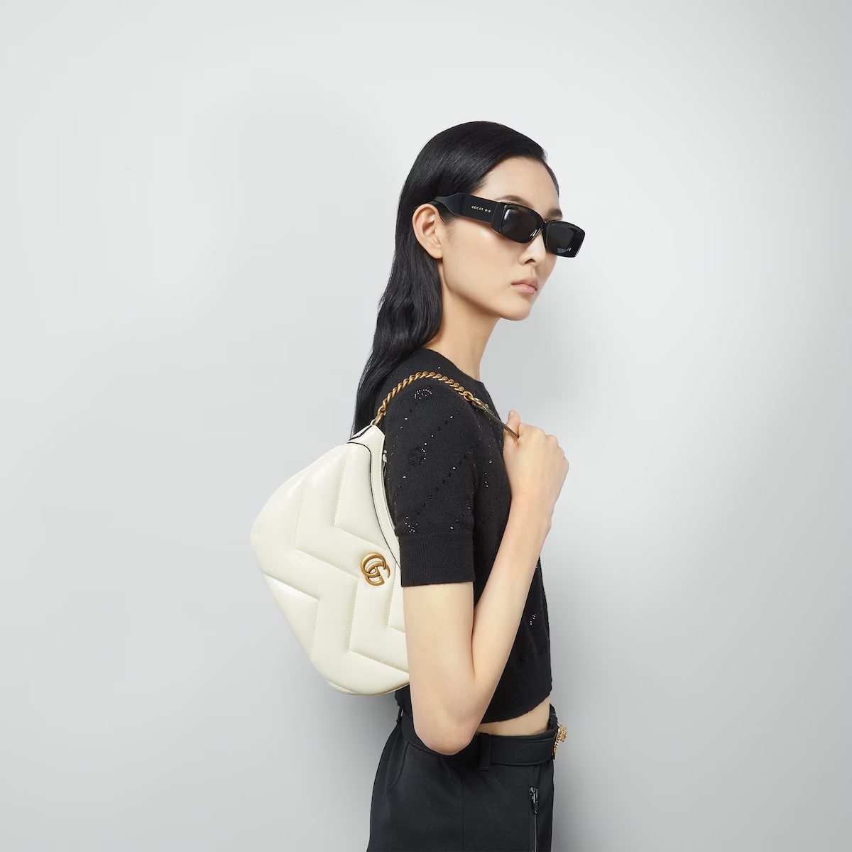 The GG Marmont is synonymous with its matelassé leather and monogram hardware. Crafted from white leather, the small shoulder bag is reimagined with small a Double G.