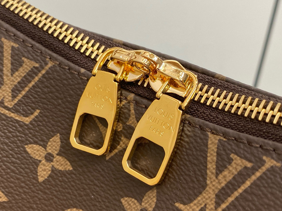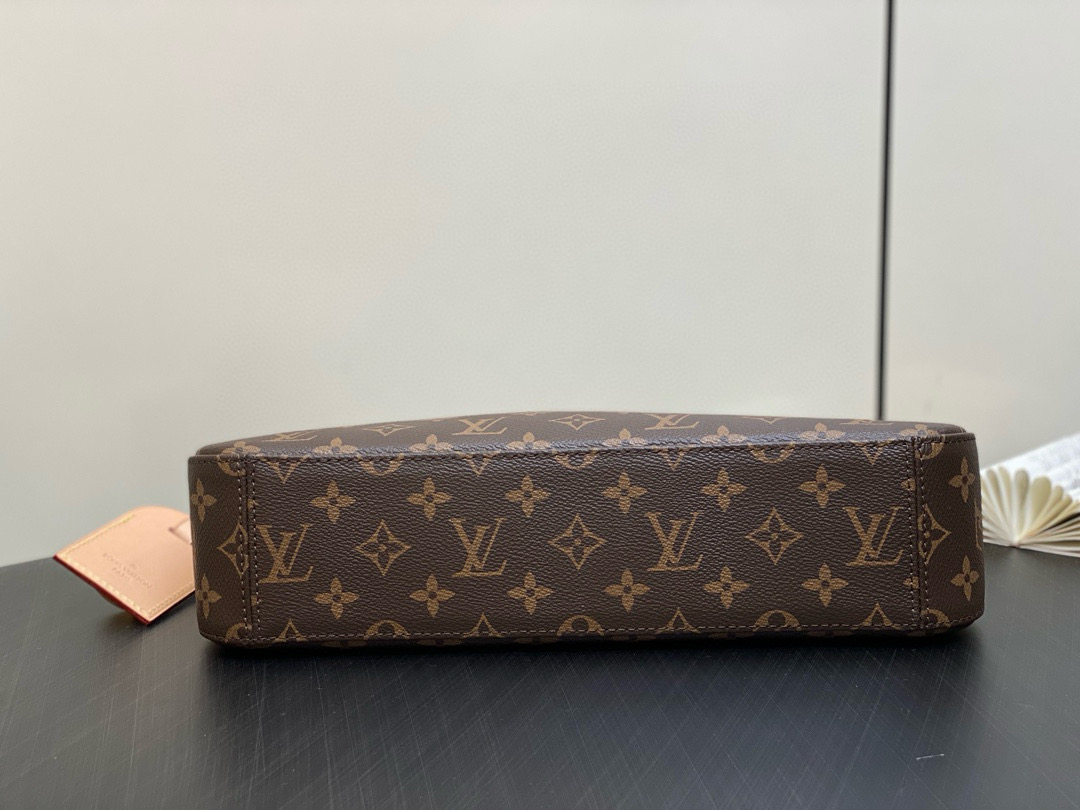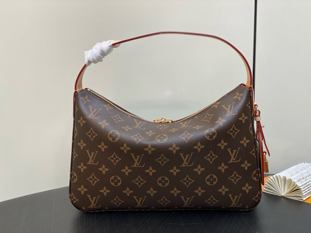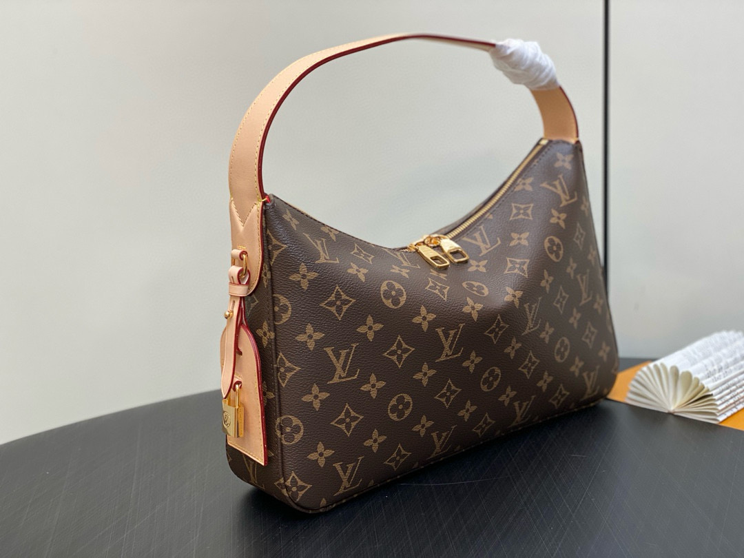The Slouchy small handbag is made of Louis Vuitton's classic Monogram canvas, with a unique silhouette that is suitable for both shoulder and hand carrying, suitable for various occasions such as business office or weekend travel. Brand new padlocks and branded new season elements highlight the brand's long-standing heritage and exquisite craftsmanship. 22 x 9 x 33 centimeters (Height x Width x Length) Monogram pattern Coated canvas Cowhide leather edging Fabric lining Metal parts Double zipper closure zipper bag Famous brand with padlock Can store 9-inch tablet, Sarah long wallet, 6.7-inch smartphone, tissues, headphones, keys, lipstick, and sunglasses Weight: 0.6 kilograms Handle: Single handle