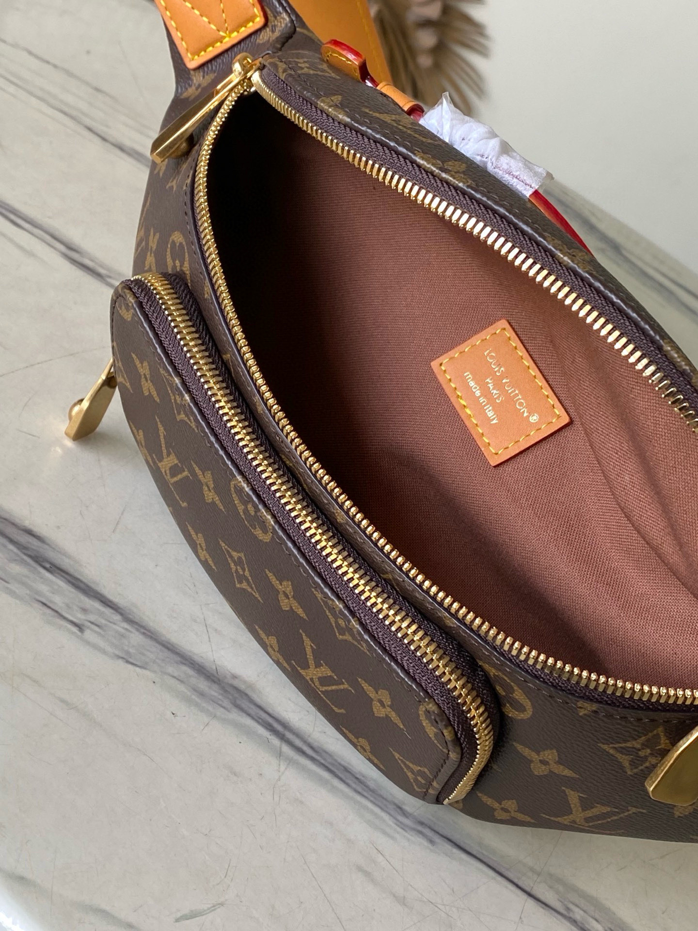 M14019 This Rush waist bag is made of soft Monogram canvas, combining functionality with style. The beaded zipper pull opens the zippered front pocket, which can be used to store mobile phones, keys and cards. The zippered main compartment provides a place for daily needs, and the adjustable strap and top leather handle add carrying options. Dimensions: 30 × 15 × 8 cm