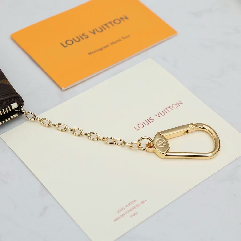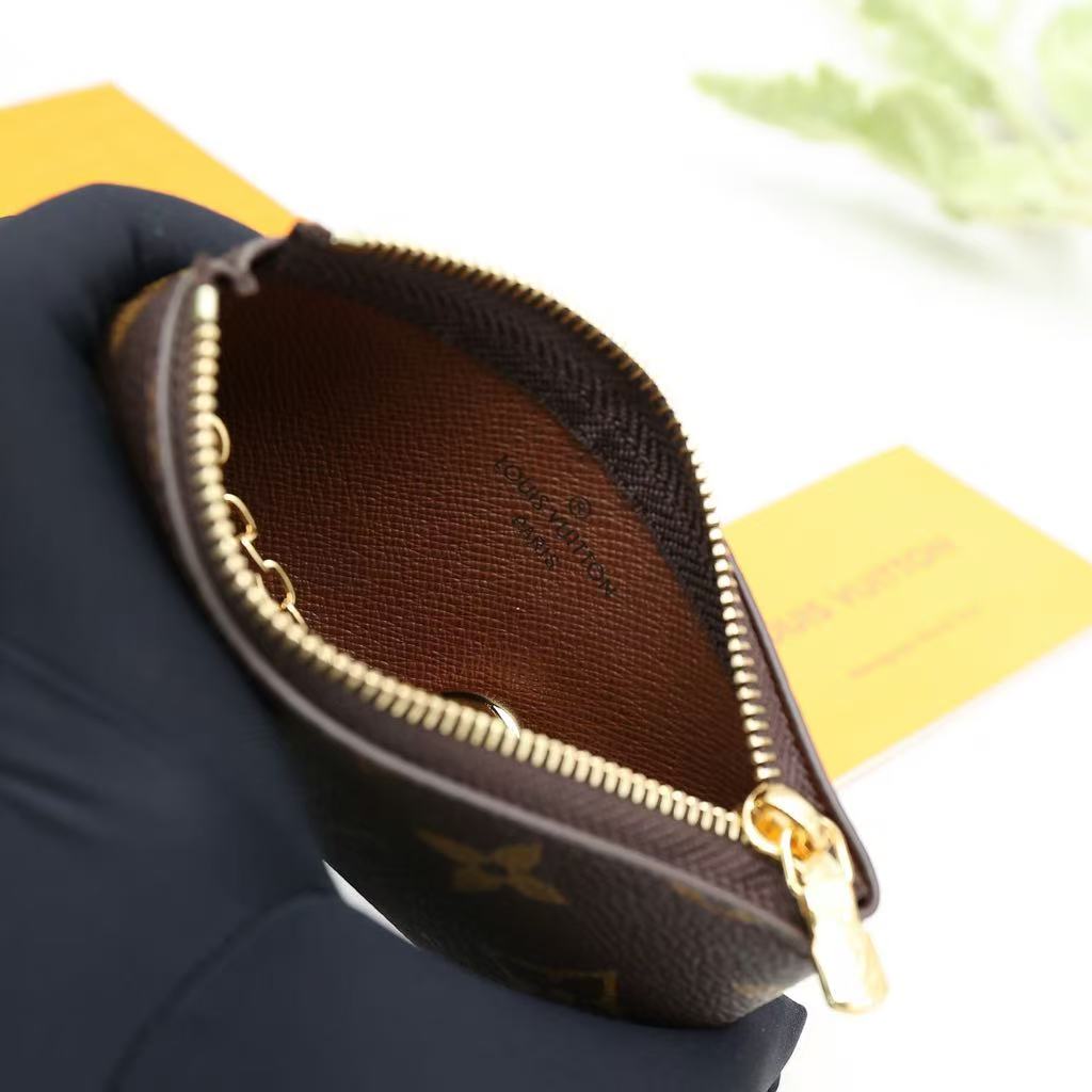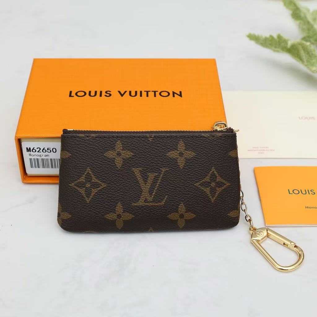 M62650 Old Flower Coin Purse Elegant and practical small leather bag, for pocket change and keys, can be easily put in a handbag or clothes pocket. Detailed characteristics - 12 x 7 x 1 cm - Key ring - The key hook can be hung on the D-shaped ring of most Louis Vuitton handbags. - Zipper opening and closing - Shiny gold metal accessories