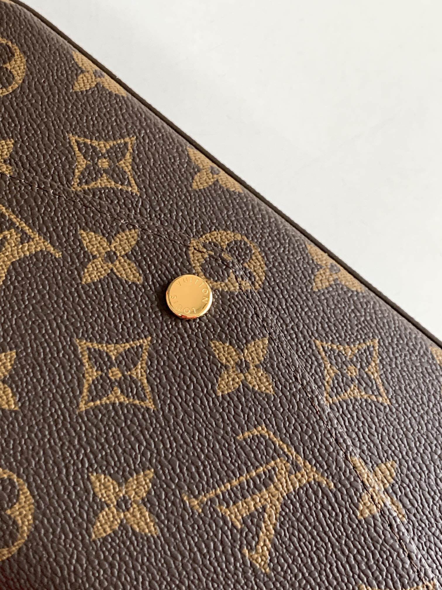 - Monogram coated canvas and cowhide leather trim