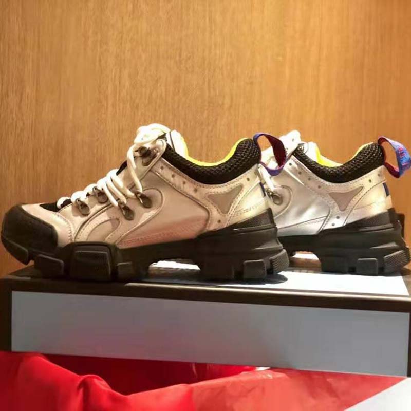 • Gucci Unisex Flashtrek Sneaker with Crystals in Silver Metallic Leather 5.6 cm HeelGucci shoe