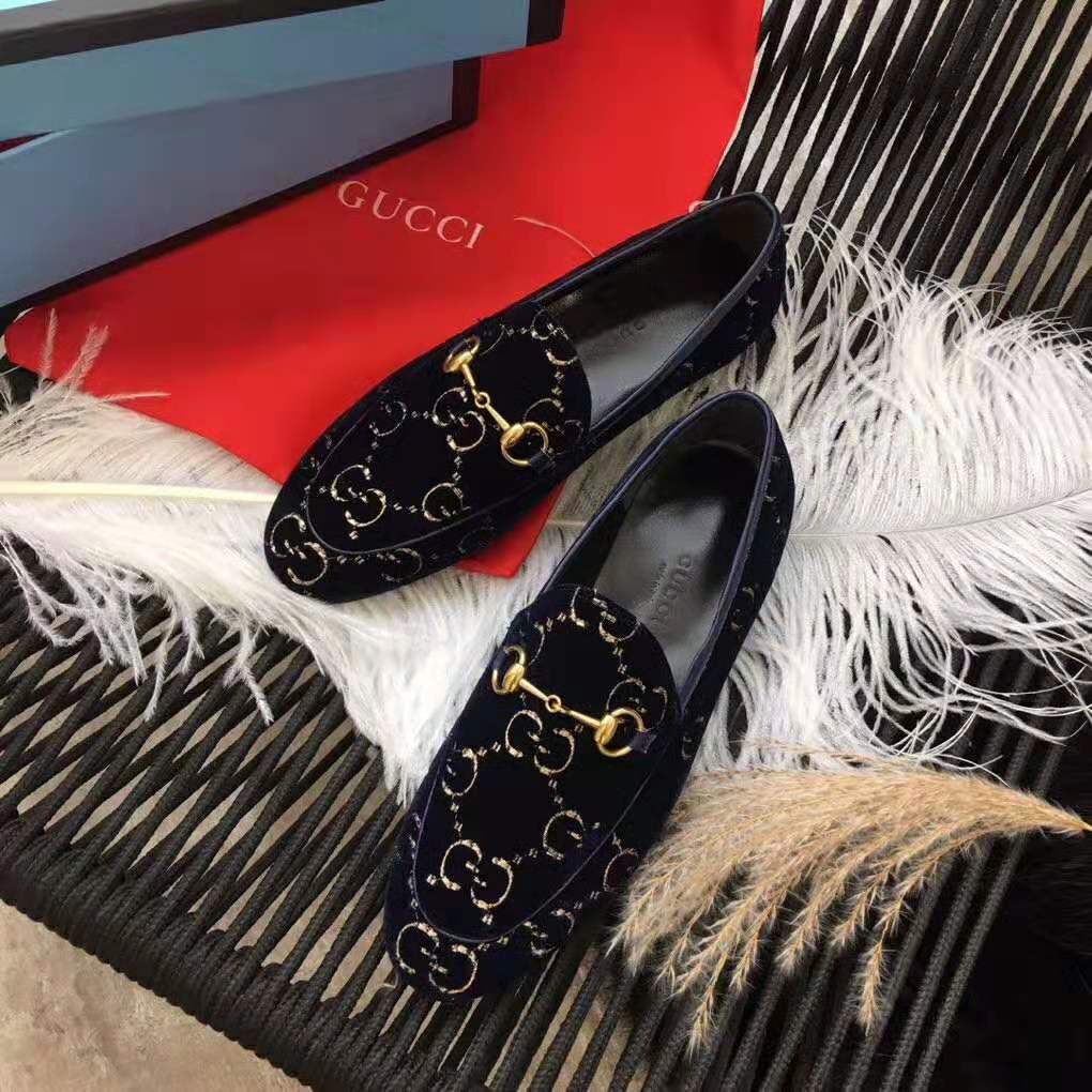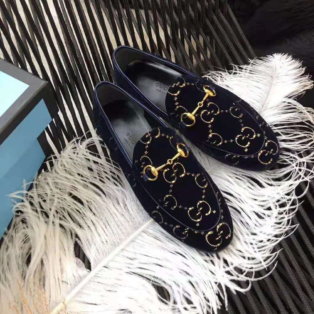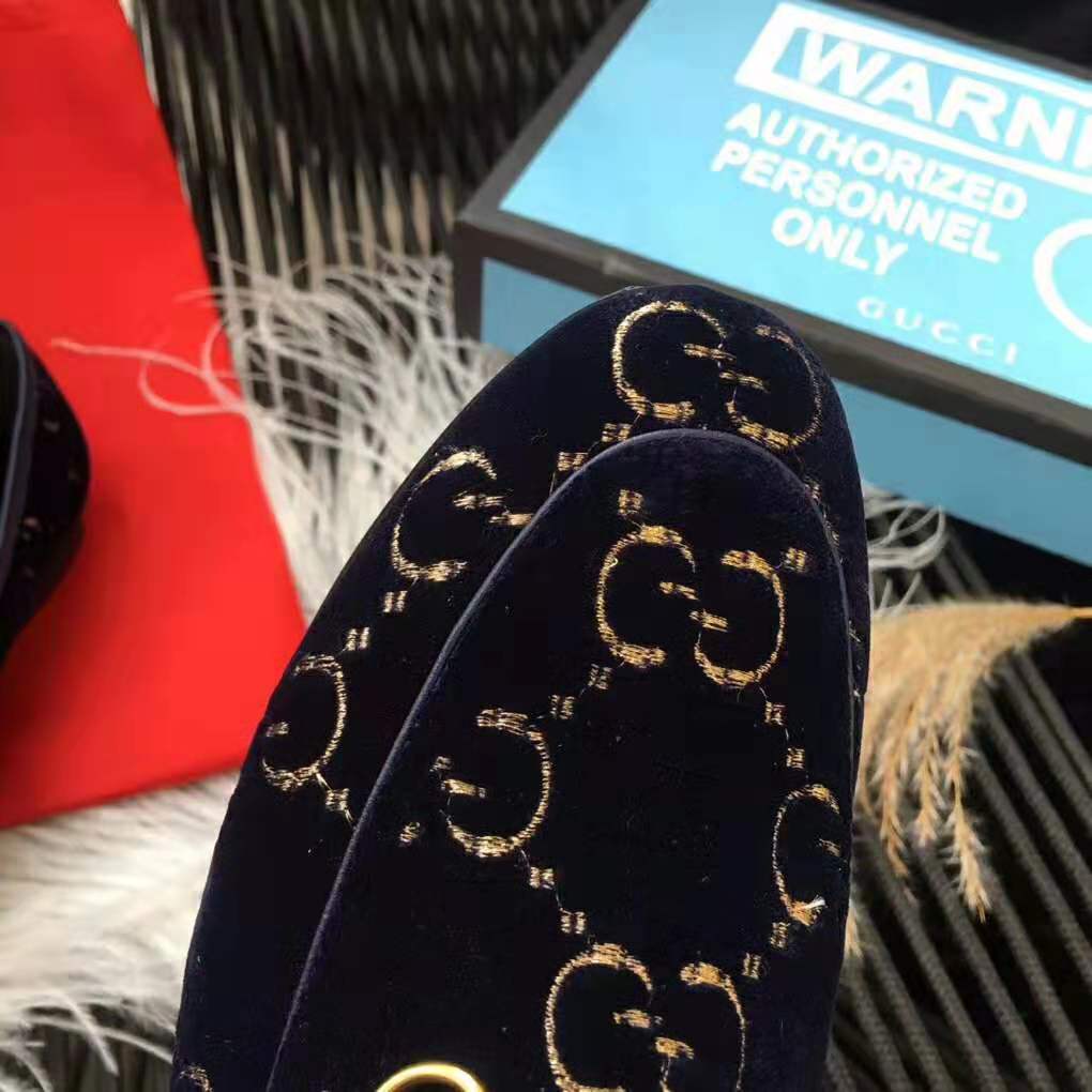 Gucci Unisex Jordaan GG Velvet Loafer-NavyGucci shoe