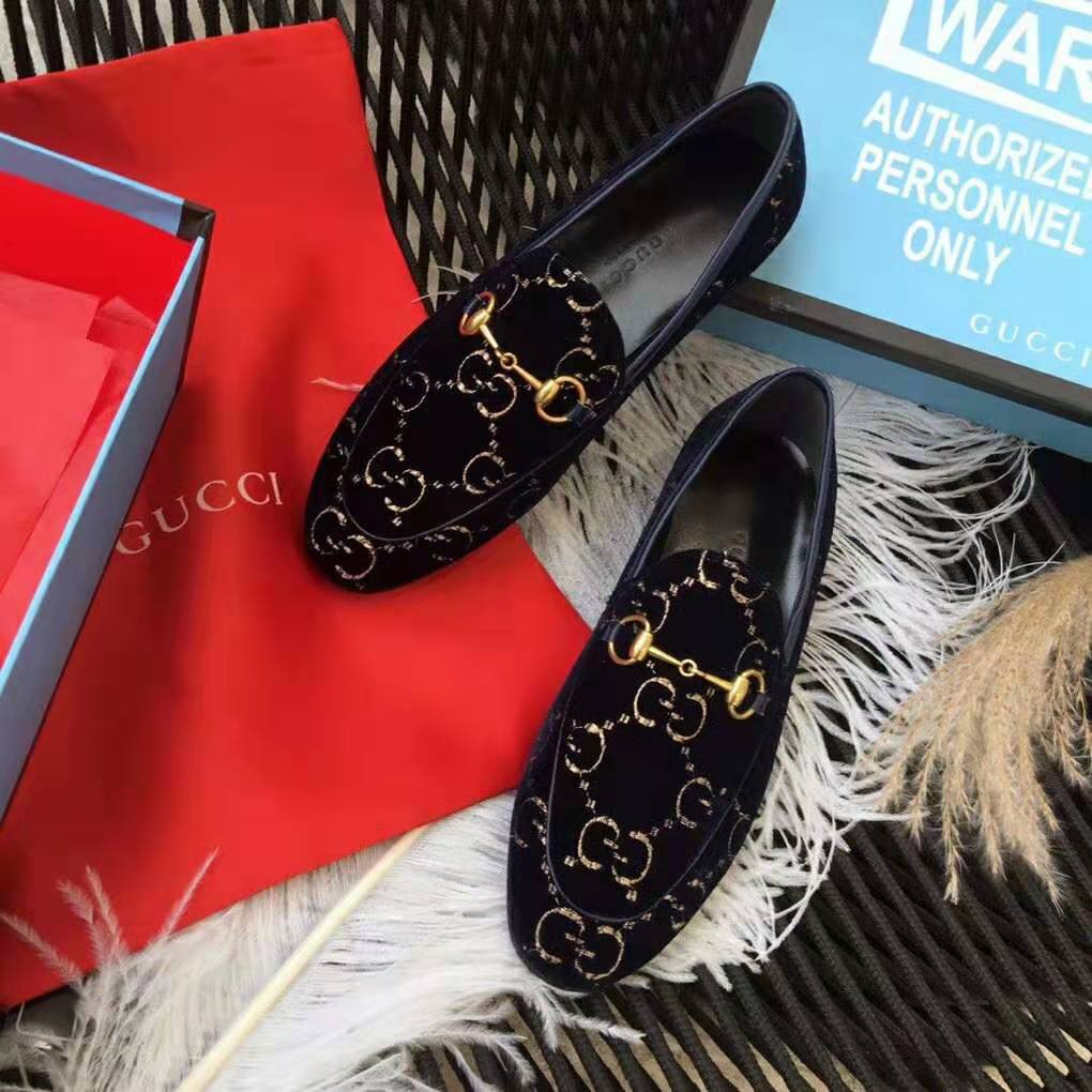 • The Gucci Jordaan loafer is now updated in black GG velvet—a distinctive fabric taken from the House archives.