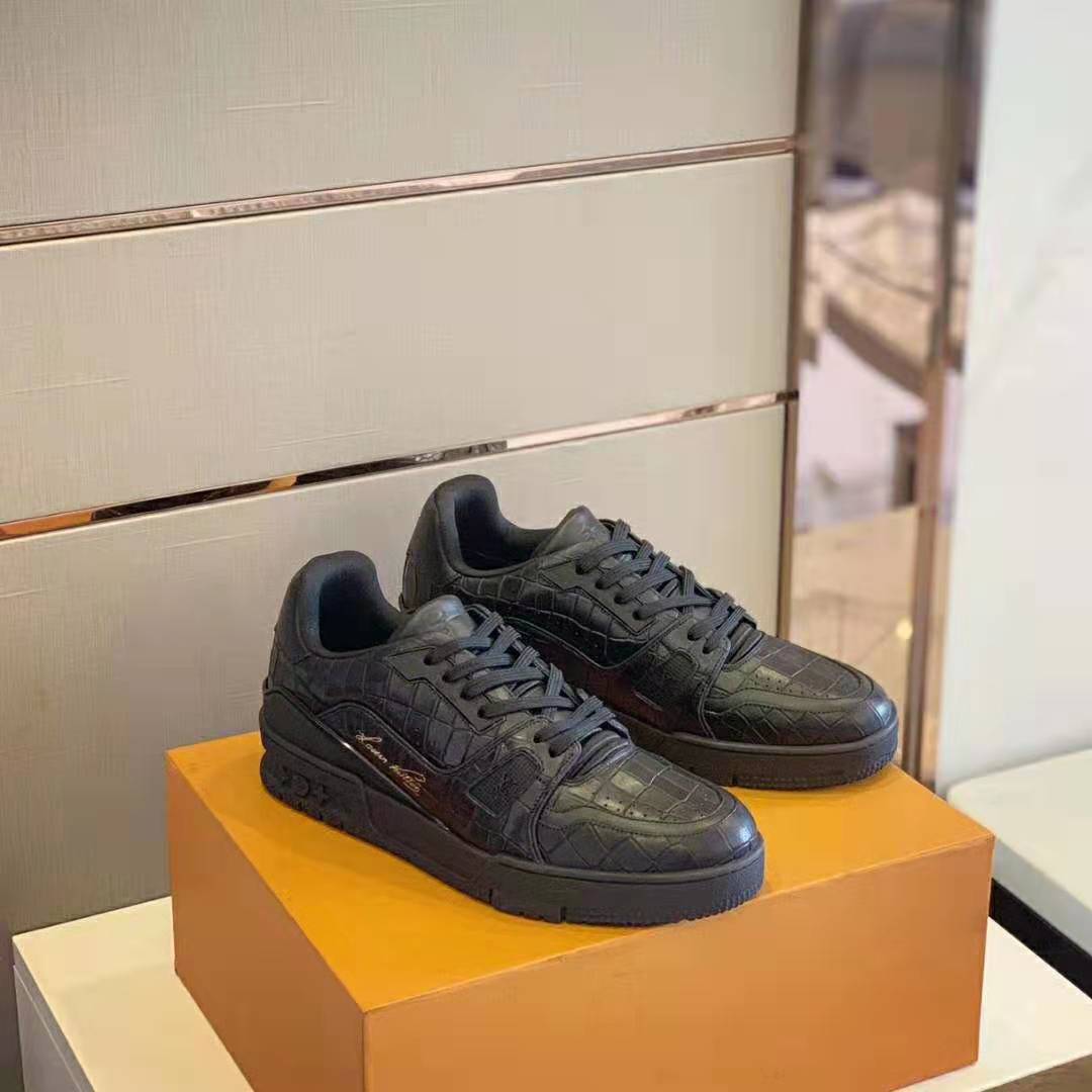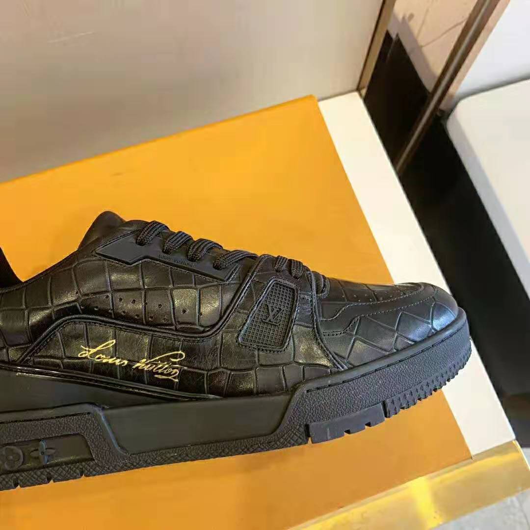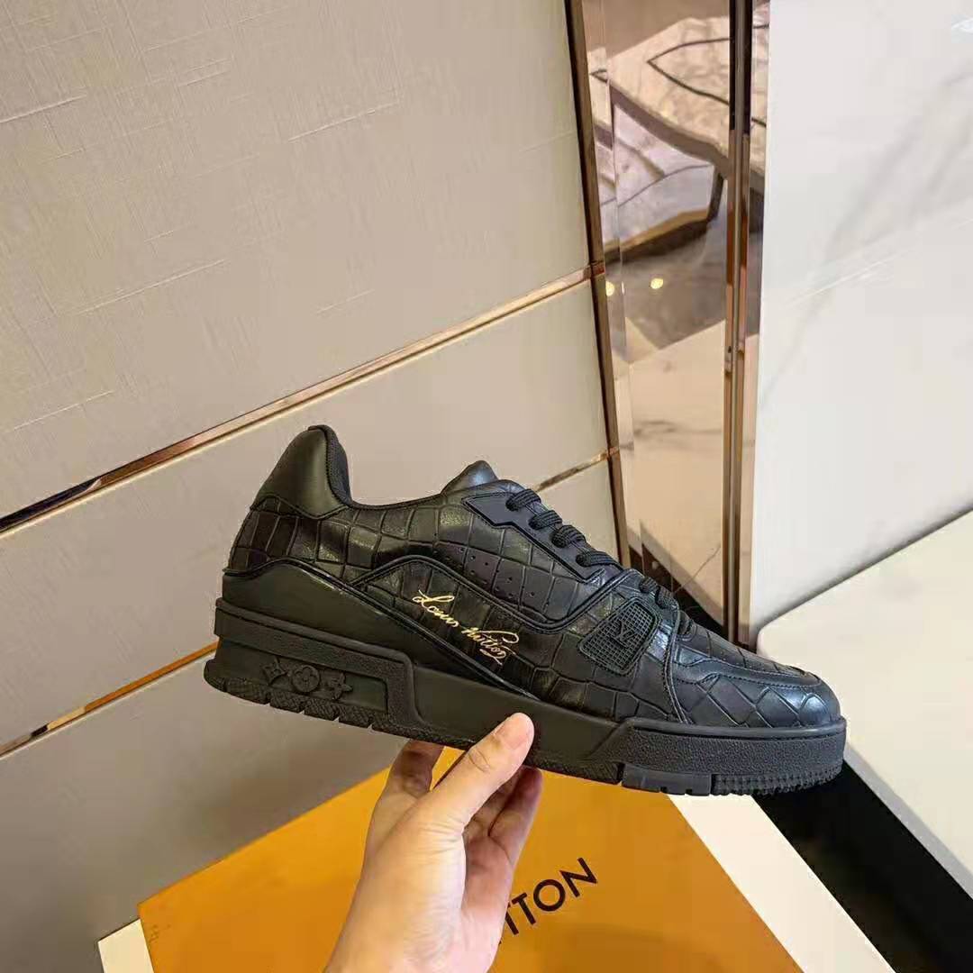 • Louis Vuitton LV Men LV Trainer Sneaker-Exclusively Online in Alligator-Embossed Calf Leather-BlackLV shoes