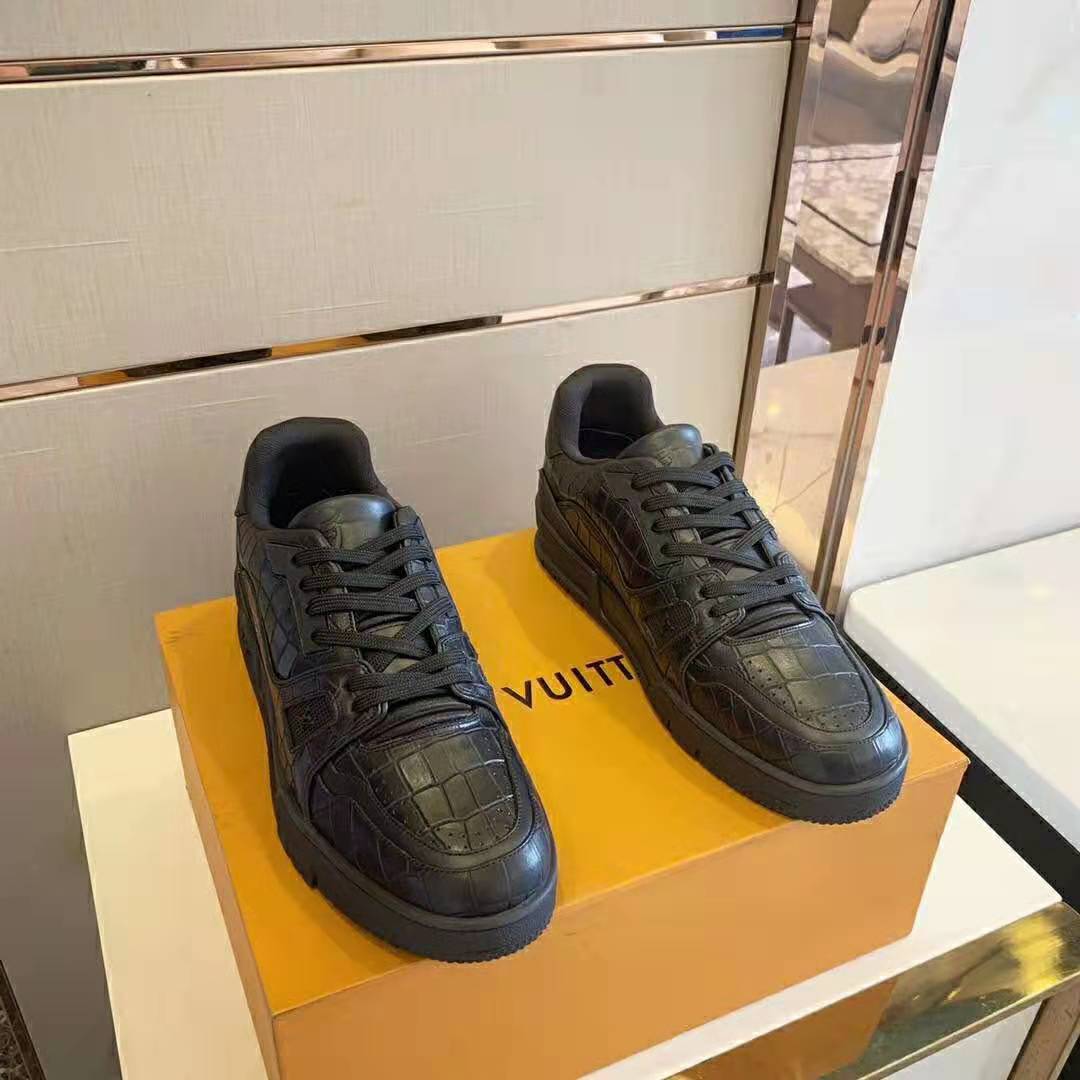 Louis Vuitton LV Men LV Trainer Sneaker-Exclusively Online in Alligator-Embossed Calf Leather-BlackLV shoes