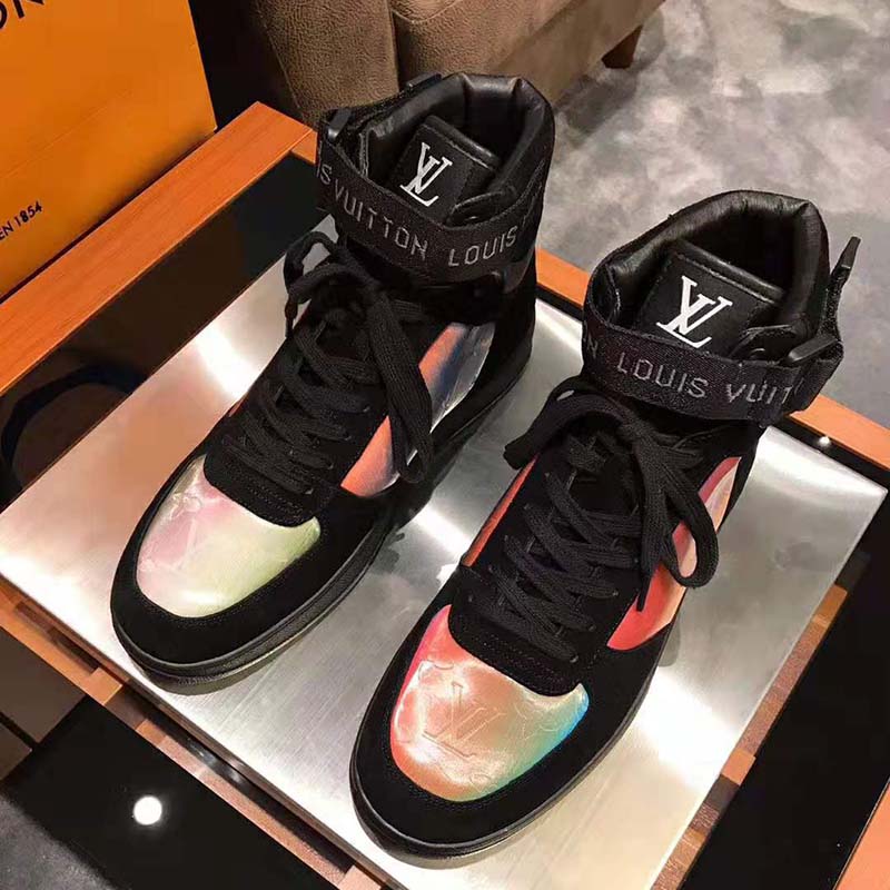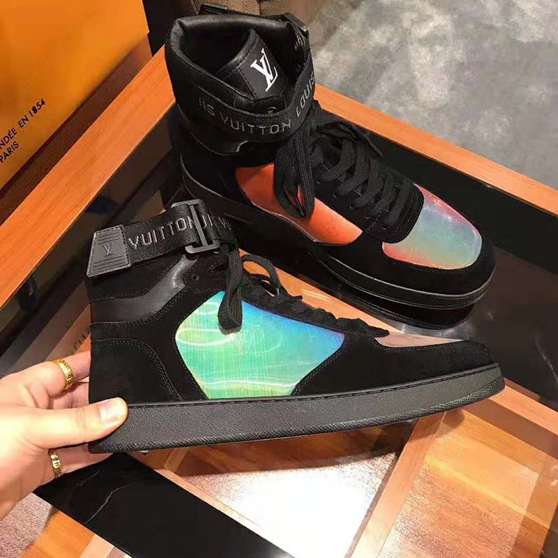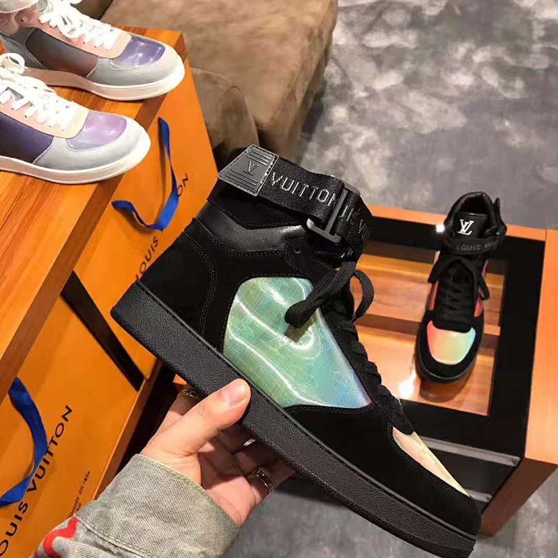 • The Rivoli sneaker boot is revisited in iridescent Monogram textile. a key theme of the season. inspired by Virgil Abloh's Spring-Summer 2019 men's show.