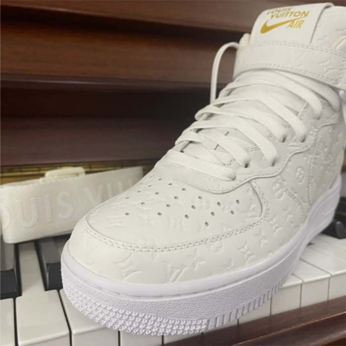 Louis Vuitton LV Unisex Nike Air Force 1 Sneaker Monogram Embossed White Calf LeatherLV shoes