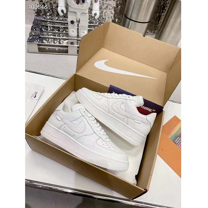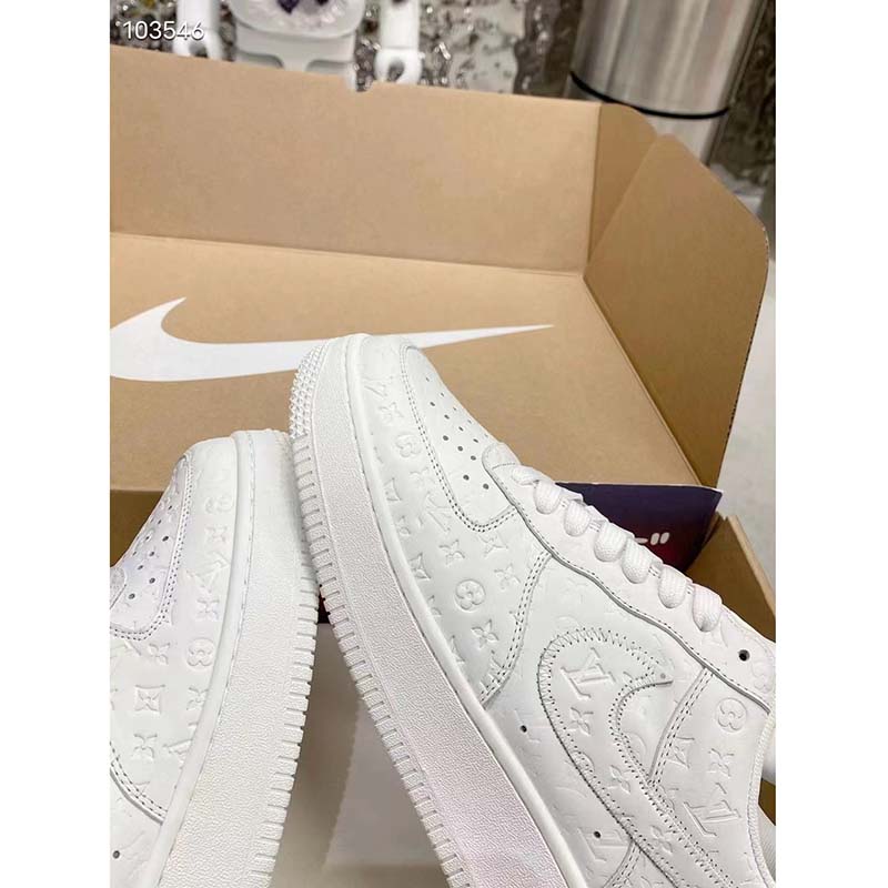 Louis Vuitton LV Unisex Nike Air Force 1 Sneaker White Monogram Embossed Calf LeatherLV shoes