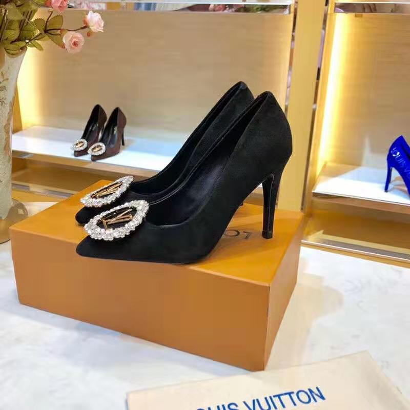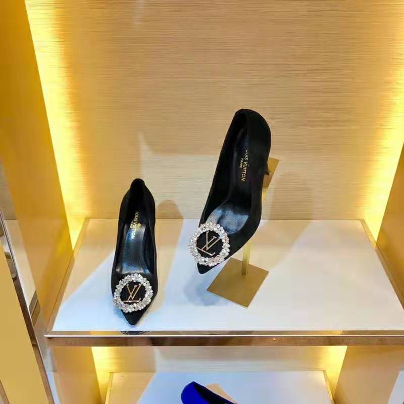 • Louis Vuitton LV Women Madeleine Pump in Suede Baby Goat Leather with Oversized LV Circle 8 cm Heel-BlackLV shoes