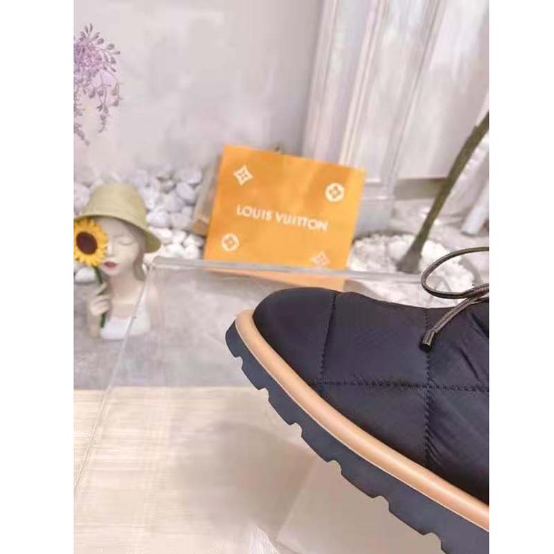 - The upper has a refined quilted finish. while the lining features the iconic Monogram pattern Its “sock like” inner layer in mesh textile ensures a perfect hold of the feet while offering comfort. Designed by Louis Vuitton Artistic Director Nicolas Ghesquière. this model is finished with a lightweight micro outsole with a contour in nappa leather. and can be worn outdoors as well as indoors.