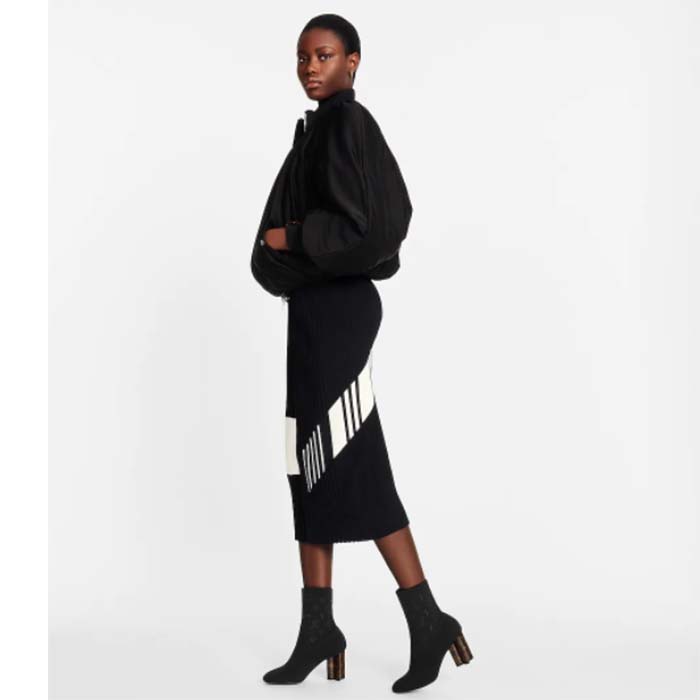 - One of Louis Vuitton's most emblematic styles. the Silhouette ankle boot is revisited in black stretch textile. which provides a second-skin fit.