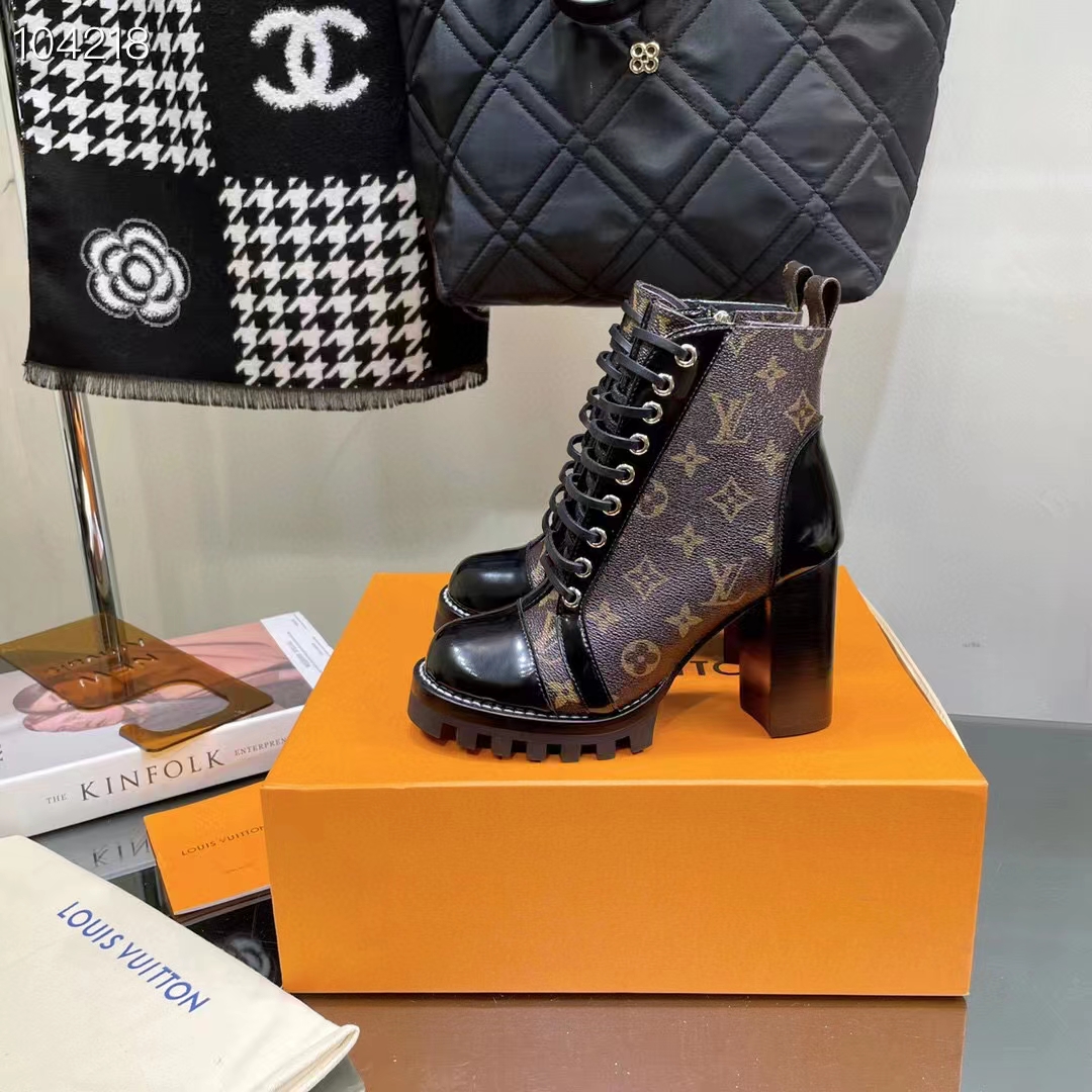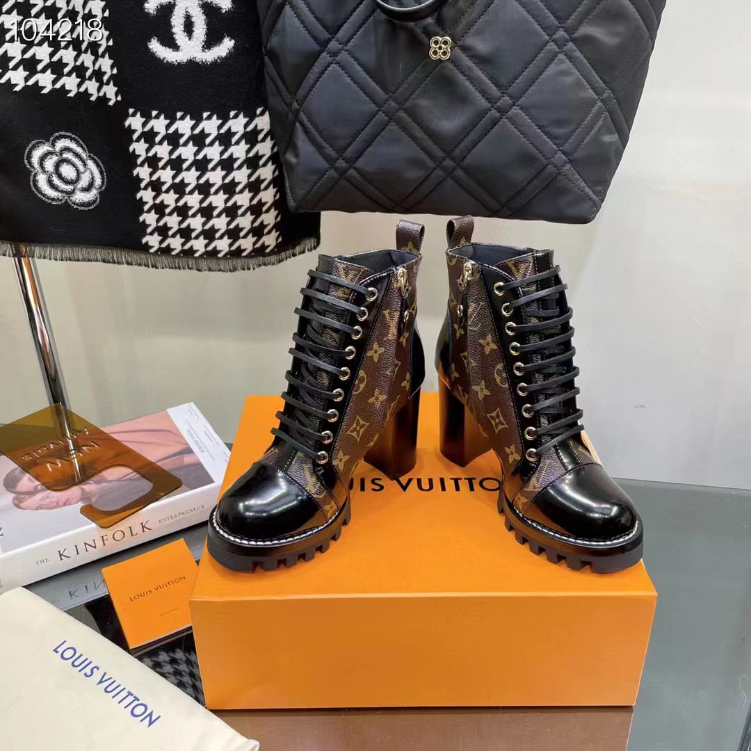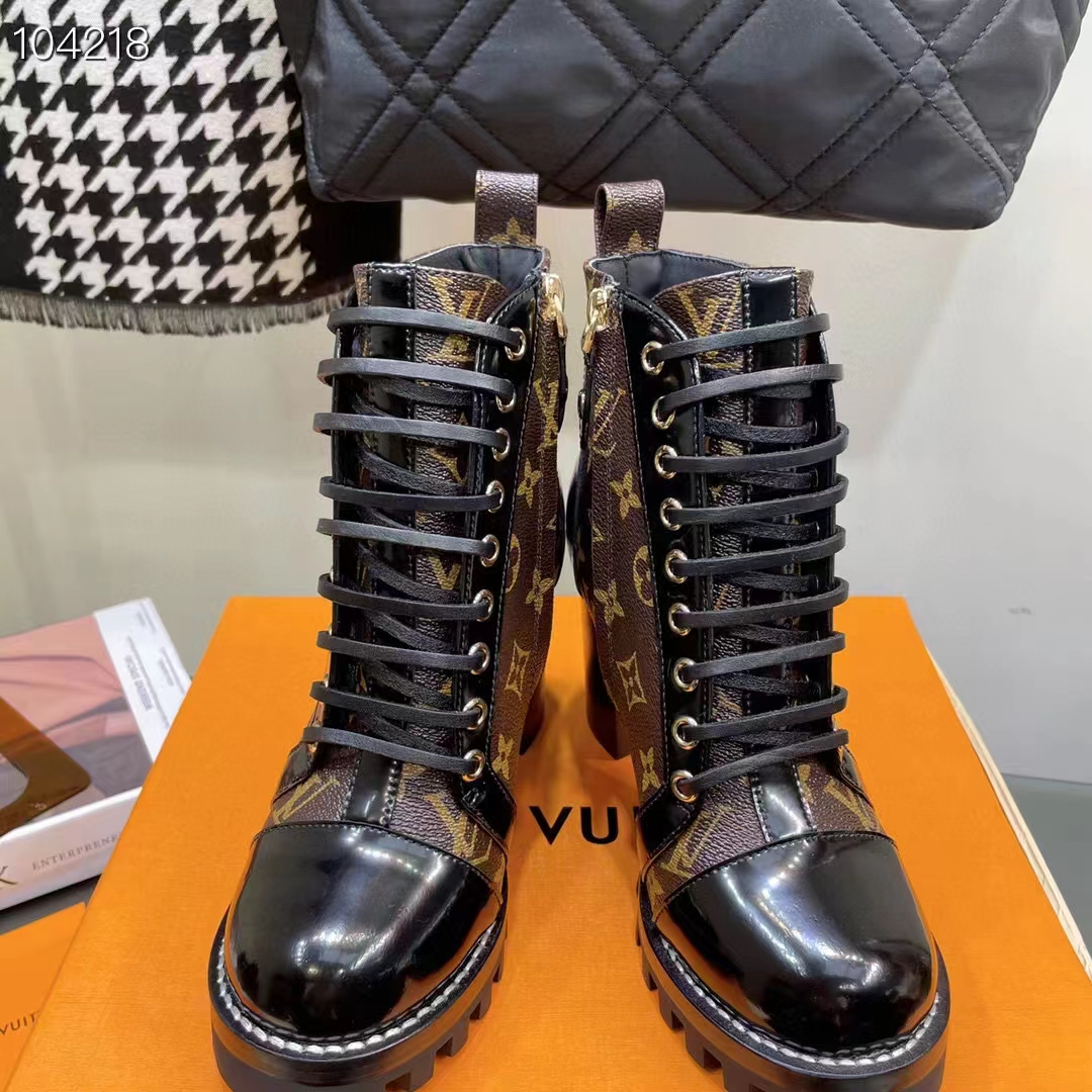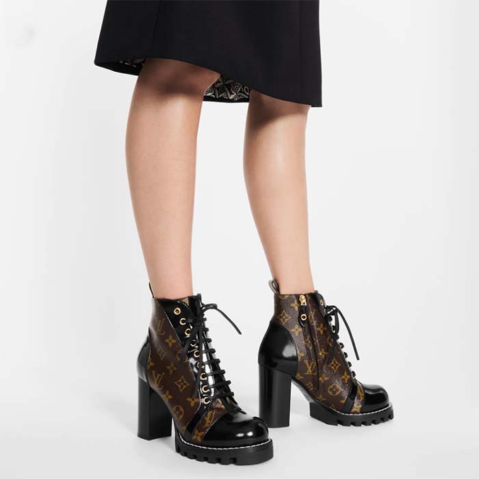 - The Star Trail ankle boot. one of Louis Vuitton's most instantly recognizable designs. is interpreted in patent Monogram canvas for a truly iconic look.