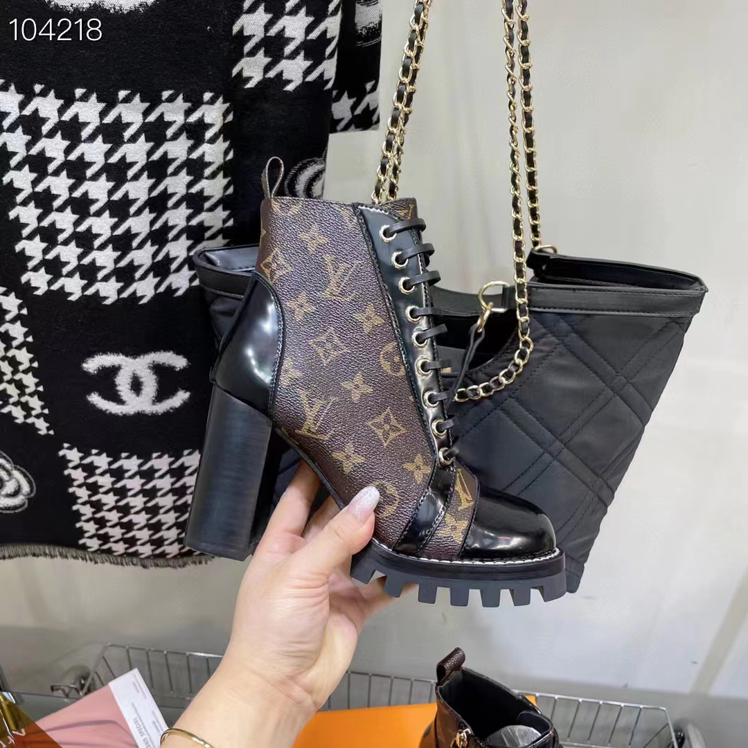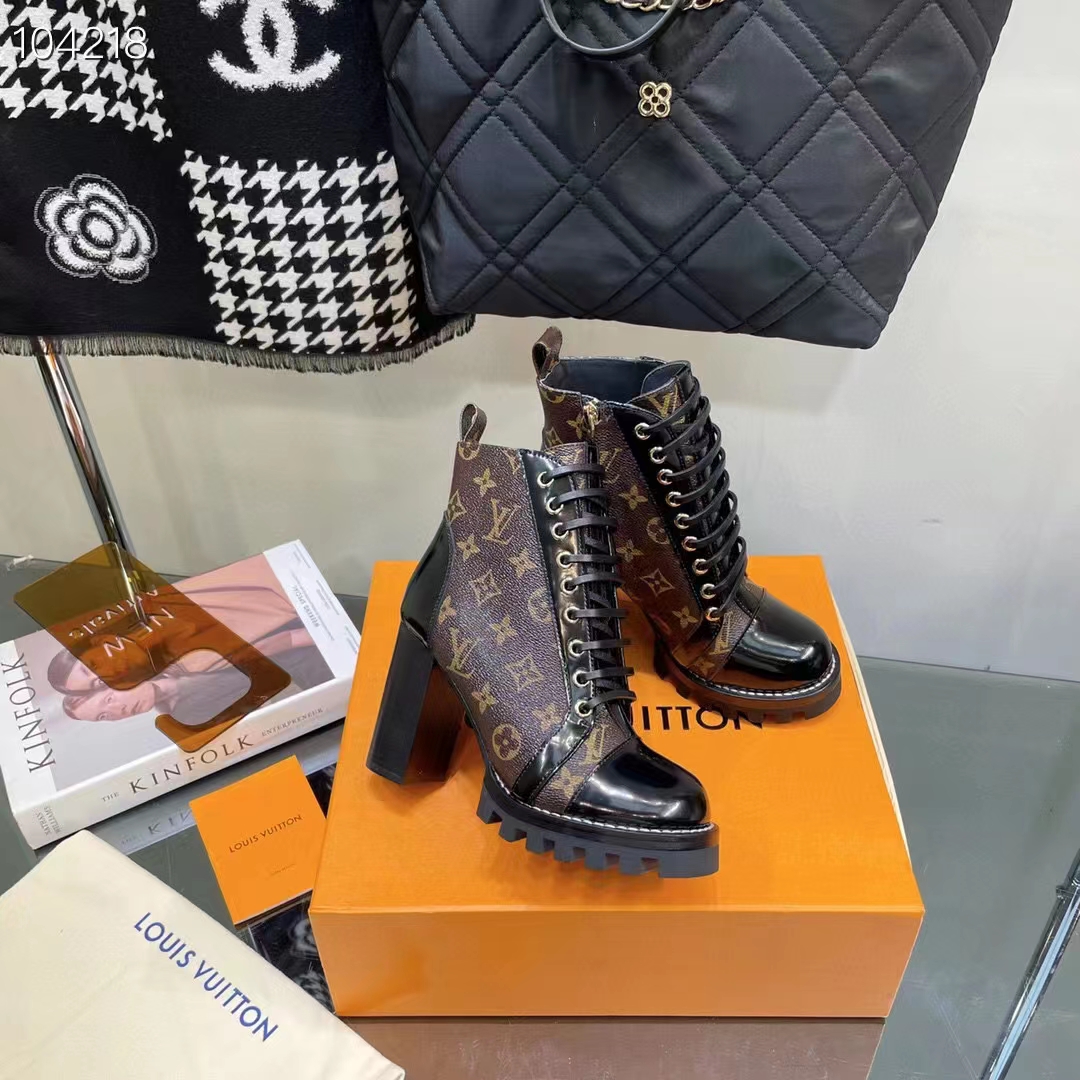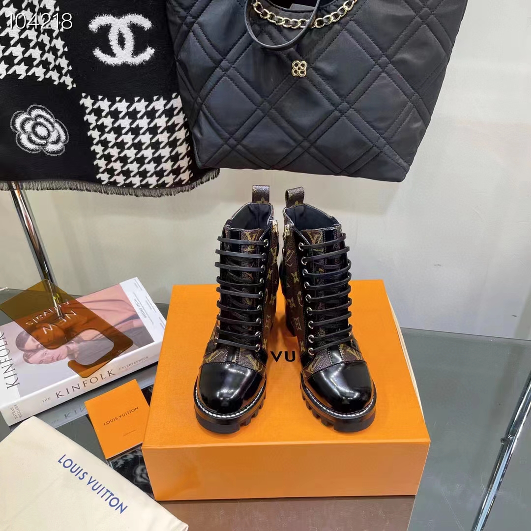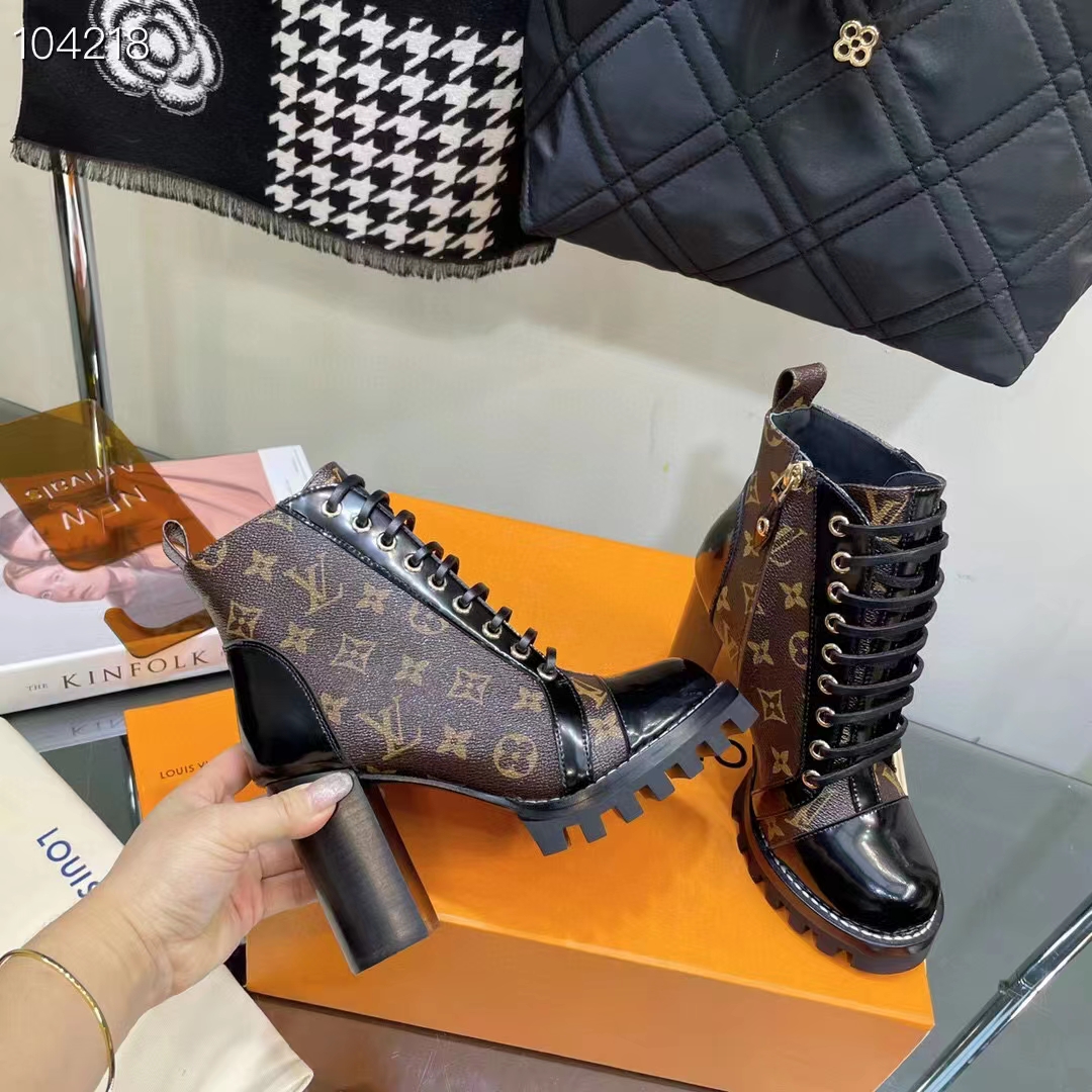 - The Star Trail ankle boot. one of Louis Vuitton's most instantly recognizable designs. is interpreted in patent Monogram canvas for a truly iconic look.