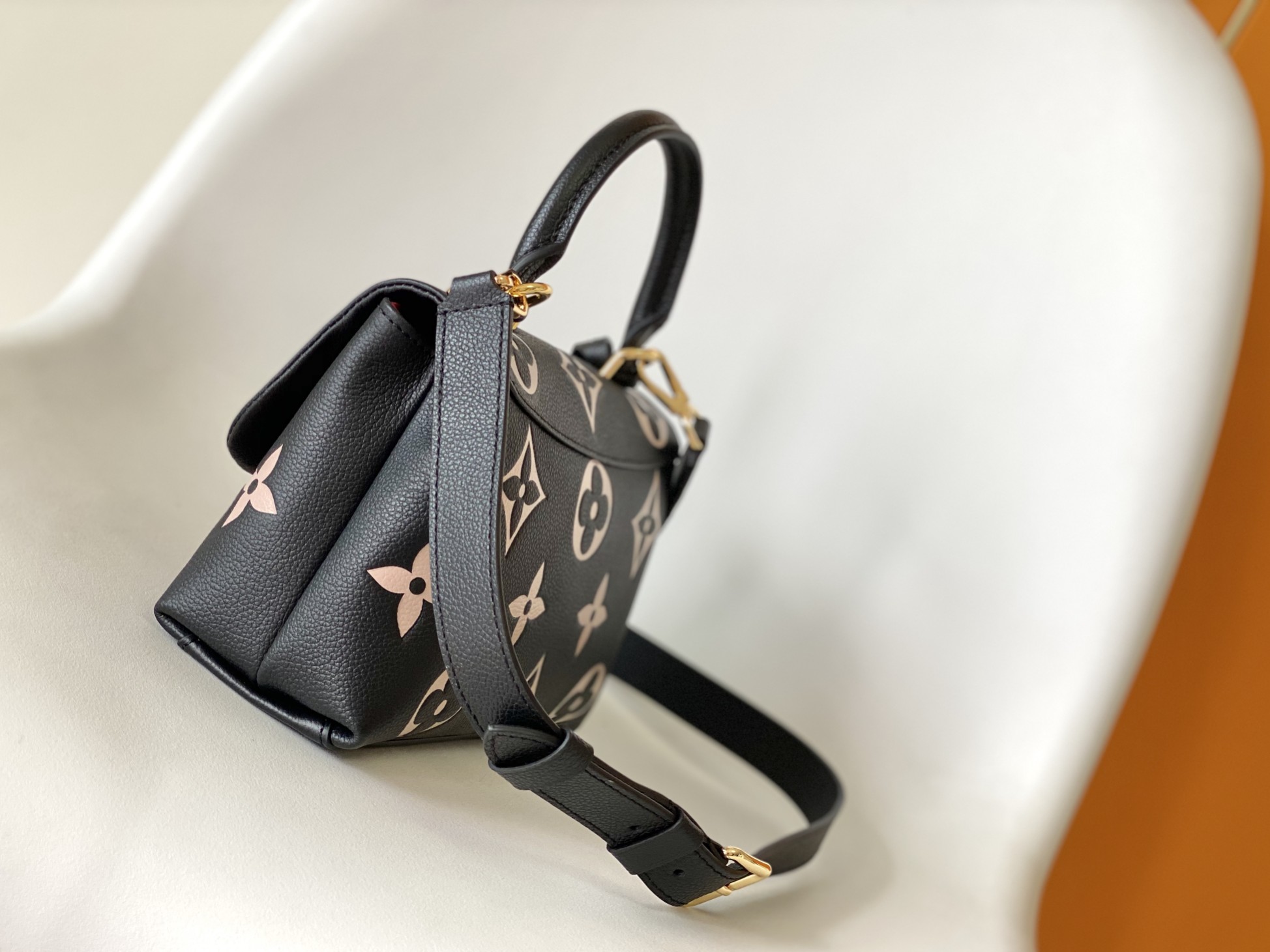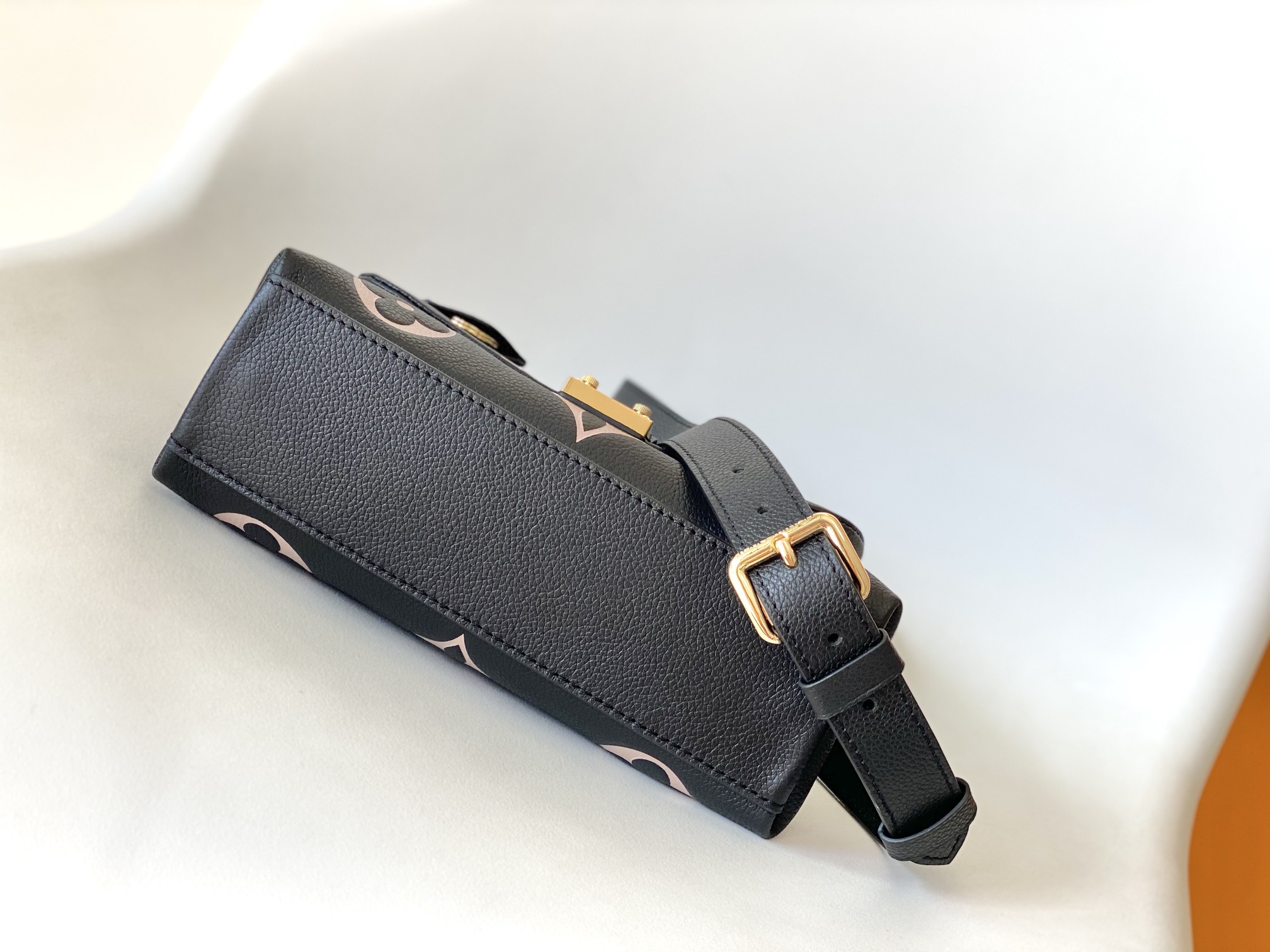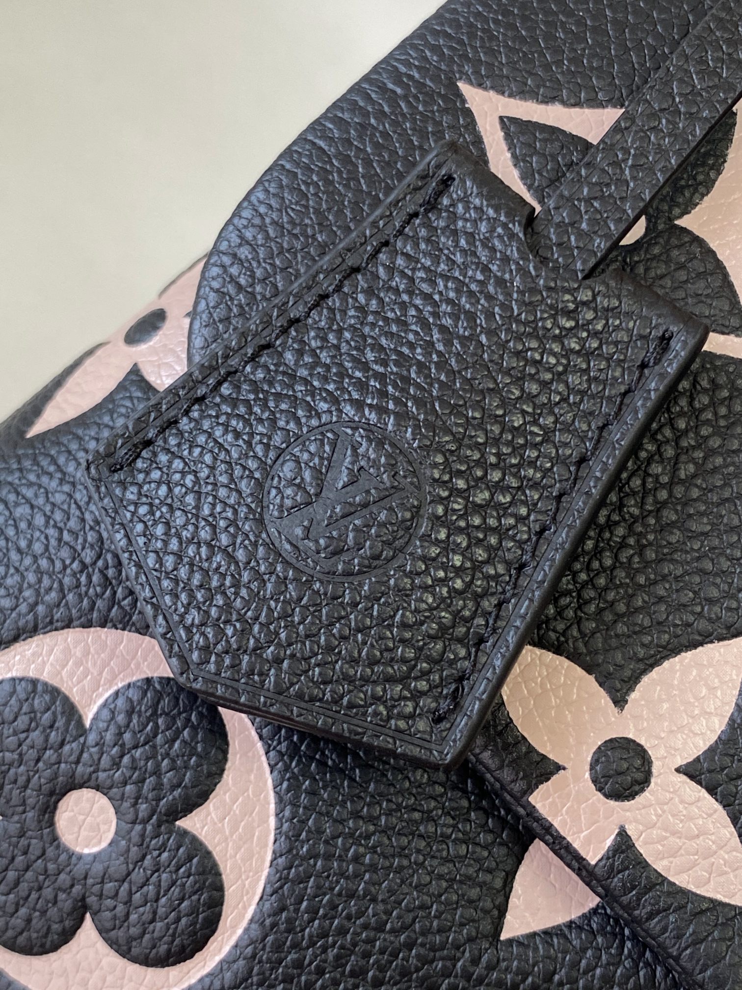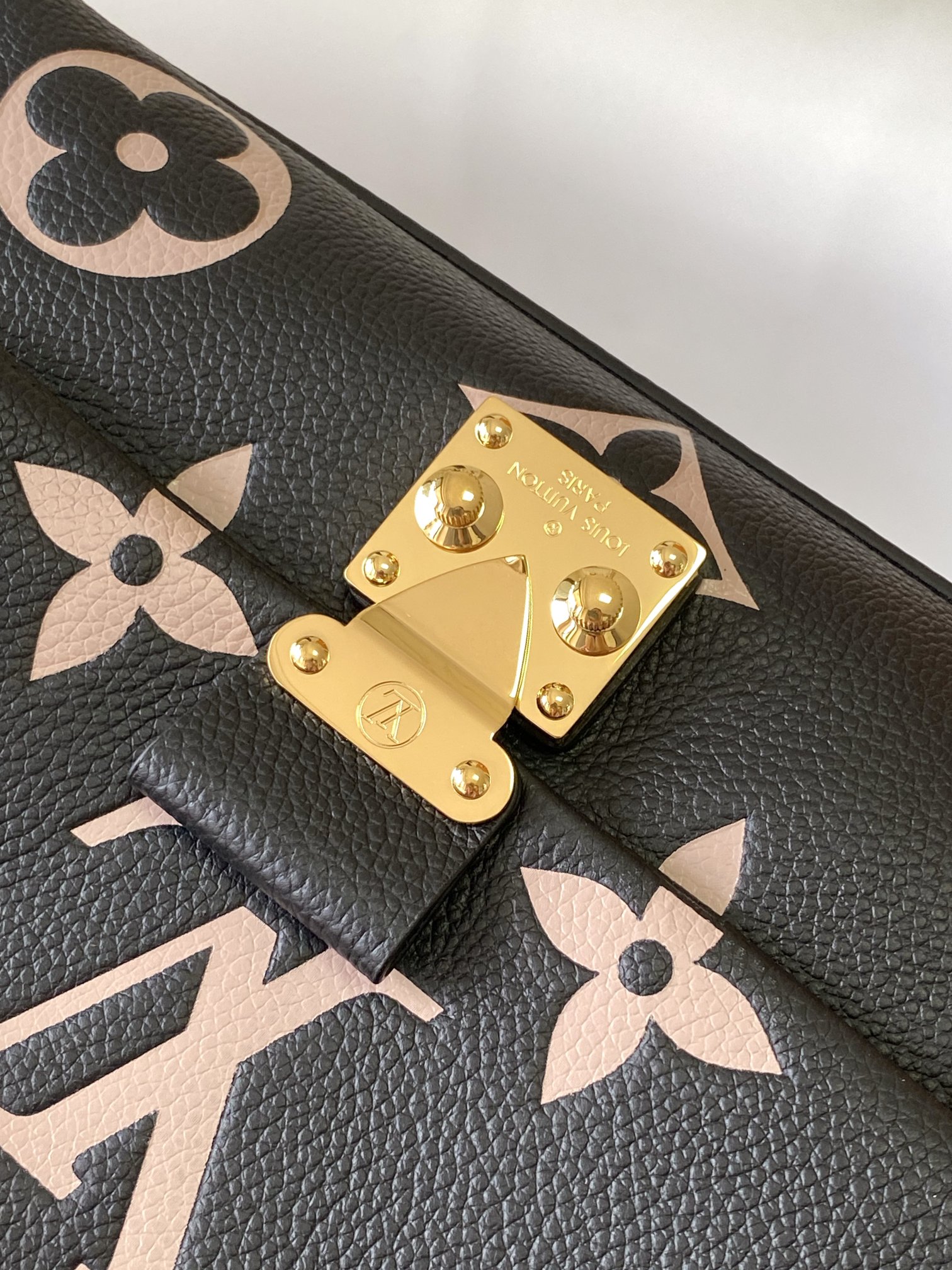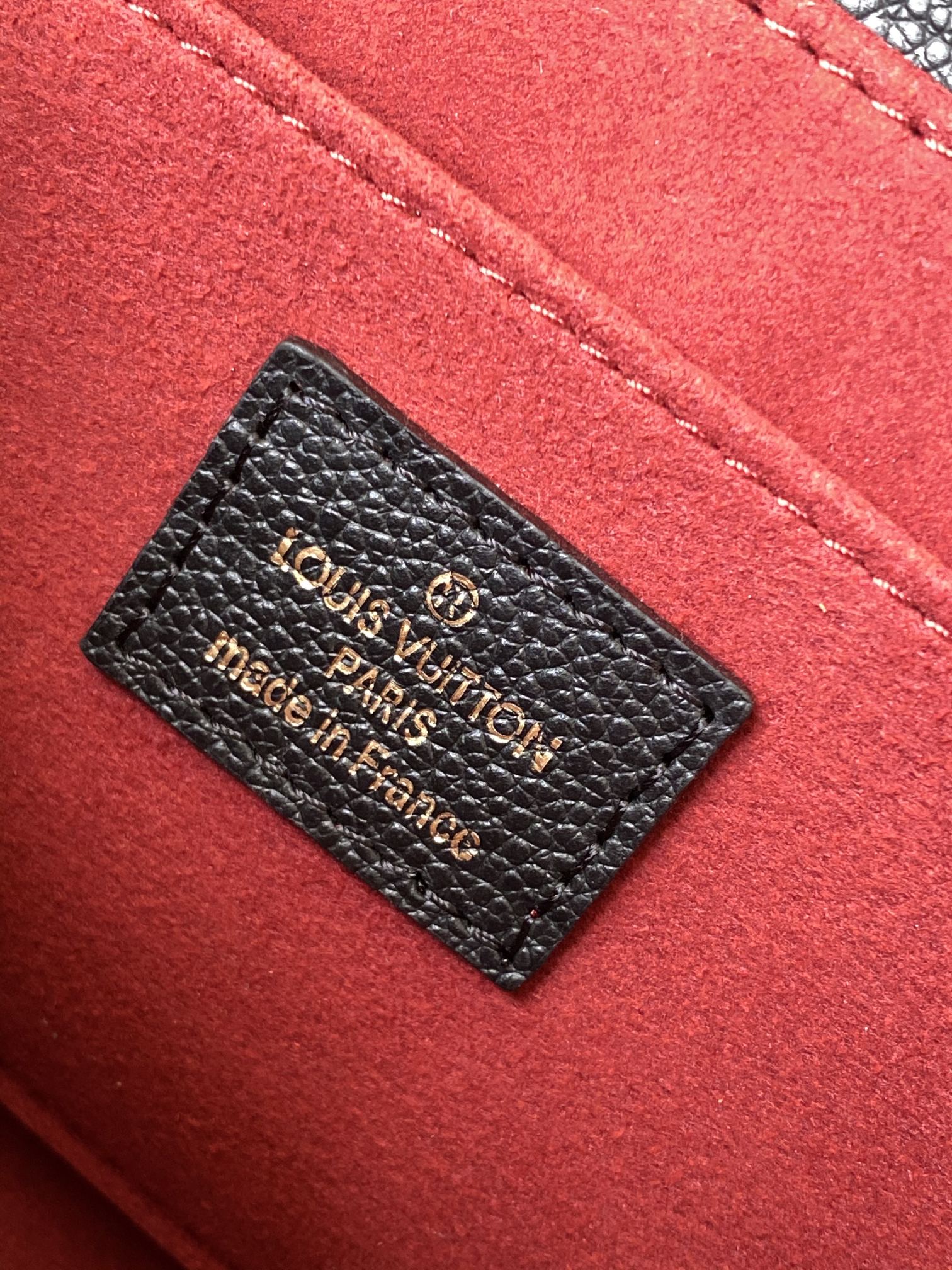 This Madeleine BB handbag is made from Monogram Empreinte leather with an over-sized Monogram pattern embossed and printed on the leather. This adorably compact bag has a red lining and closes with the same S-lock found on the Pochette Metis. The single, articulated top handle brings a ladylike feel while the removable strap provides additional carry options.
